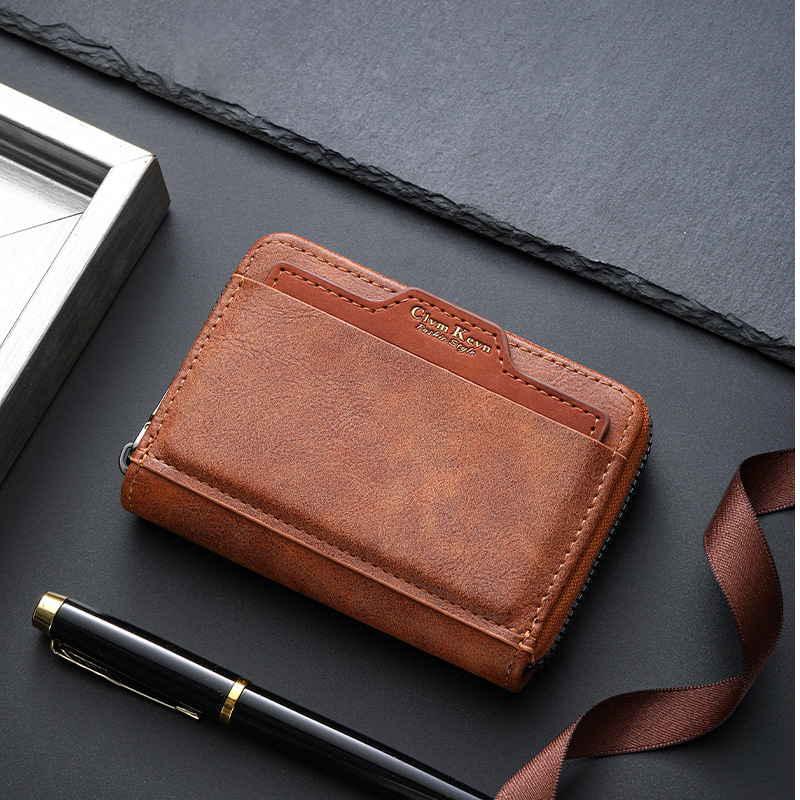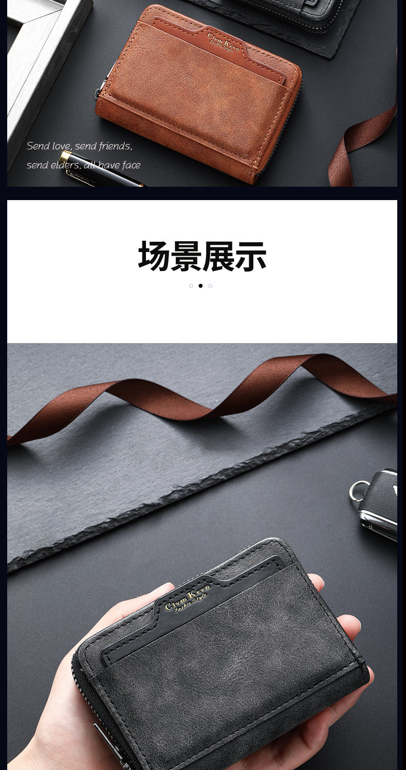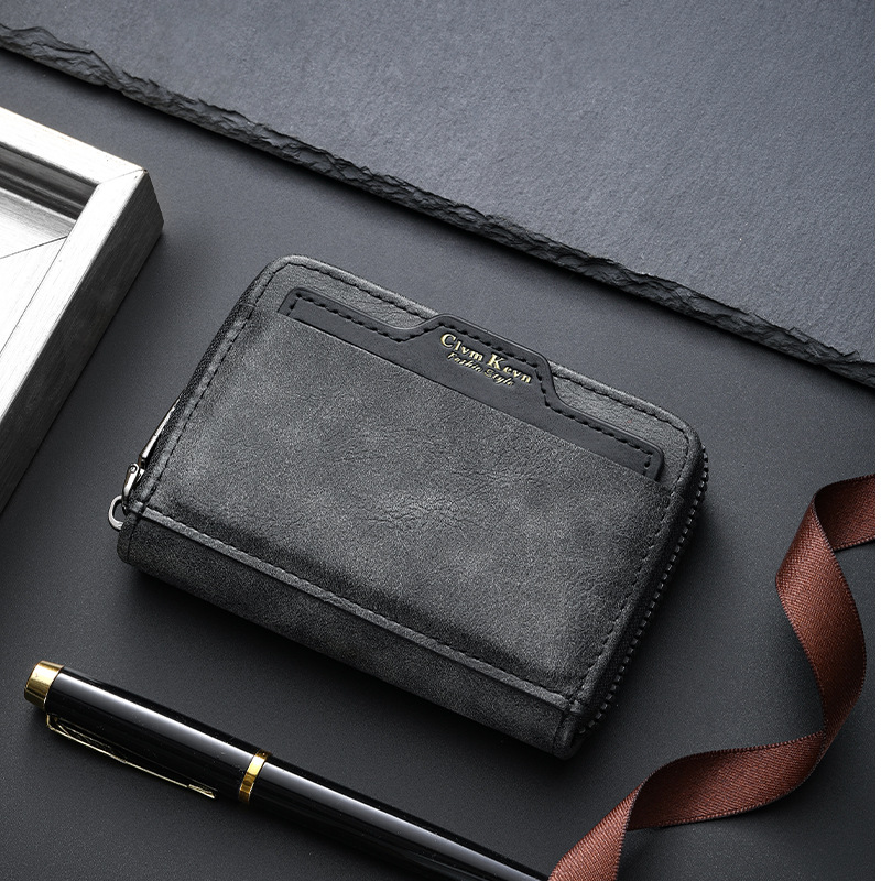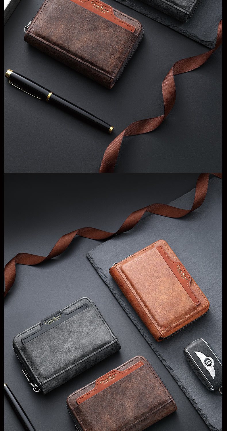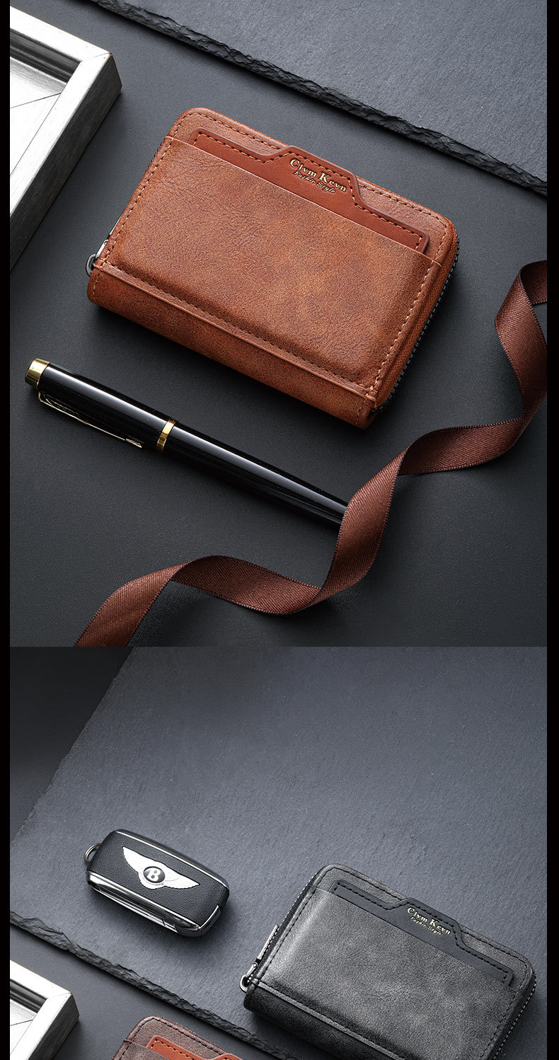 국경 간 뜨거운 판매 휴대용 남성 레트로 지갑 카드 운전 면허증 가방 대용량 지퍼 소형 지갑