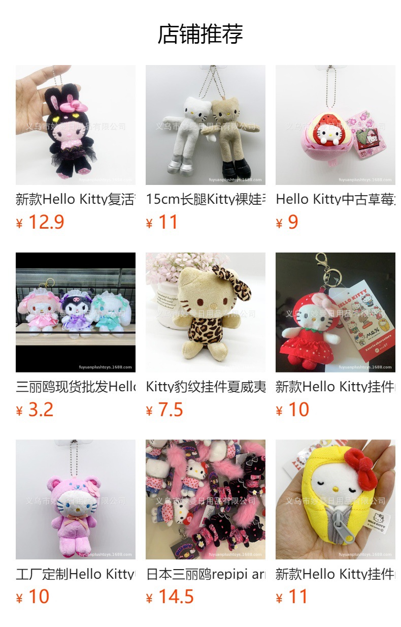 工厂直销 定做外贸款 跨境热销 新款上市 12cm hellokitty卡通猫咪公仔钥匙扣毛绒玩具包包挂件礼品赠品,长腿15cm