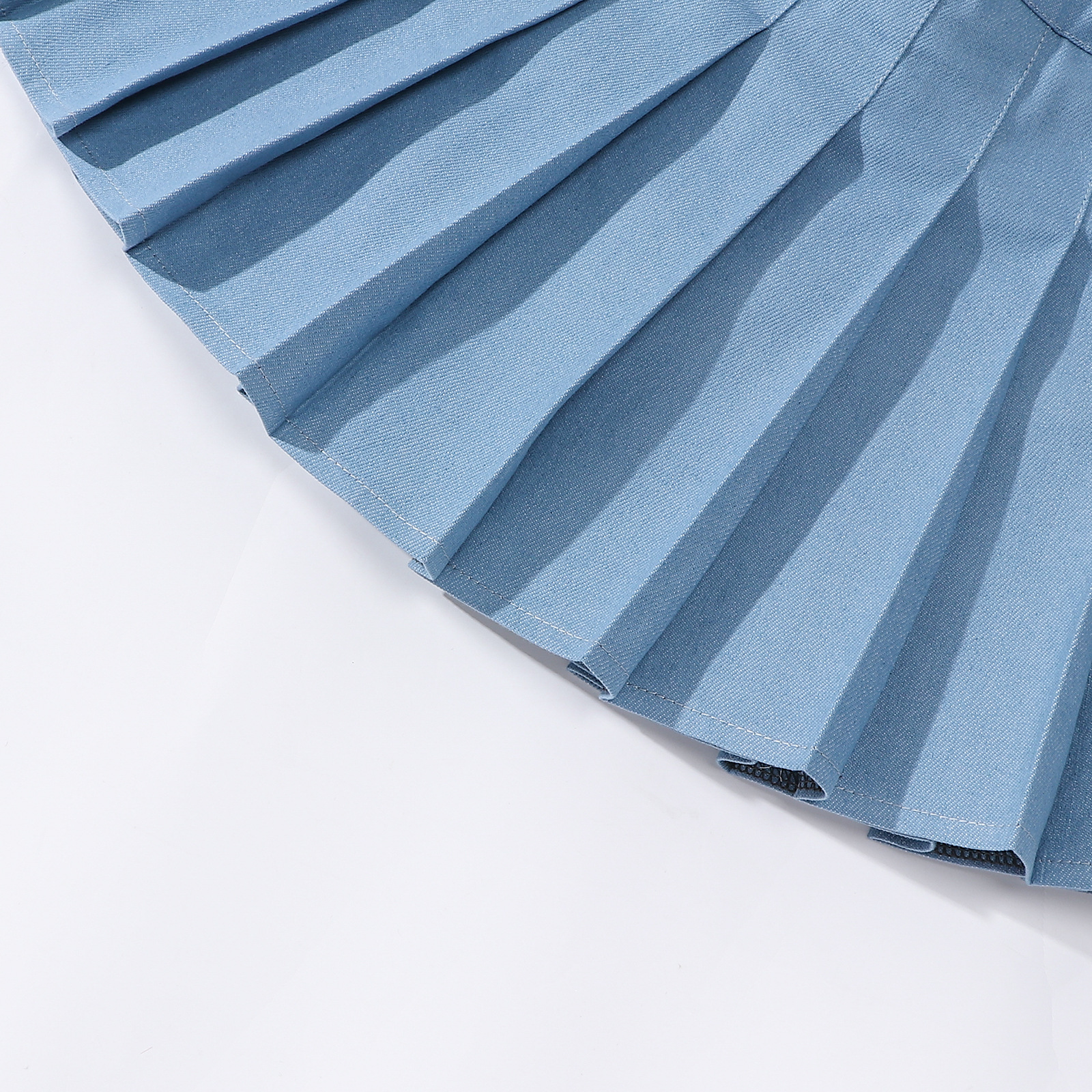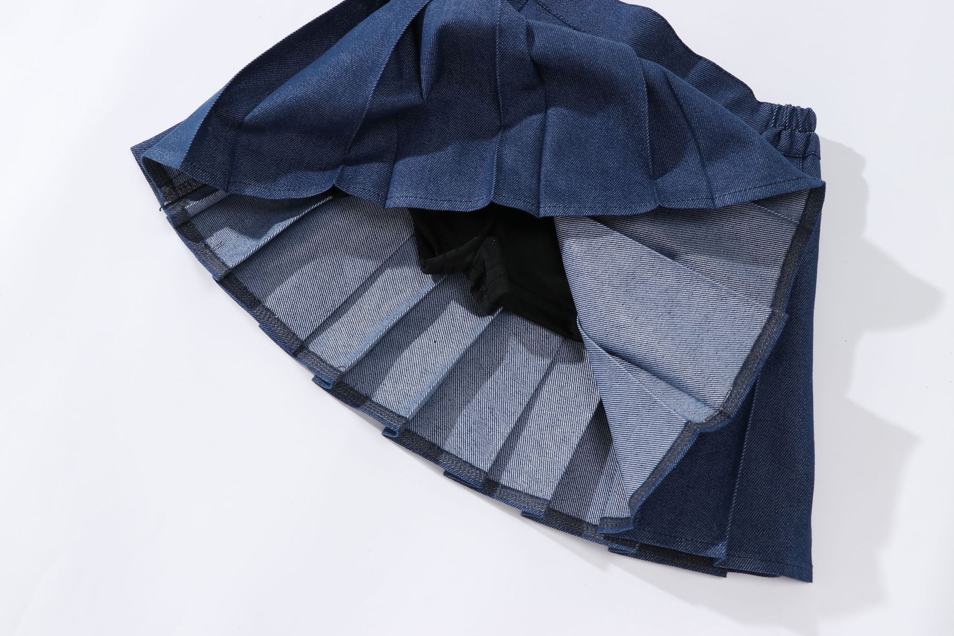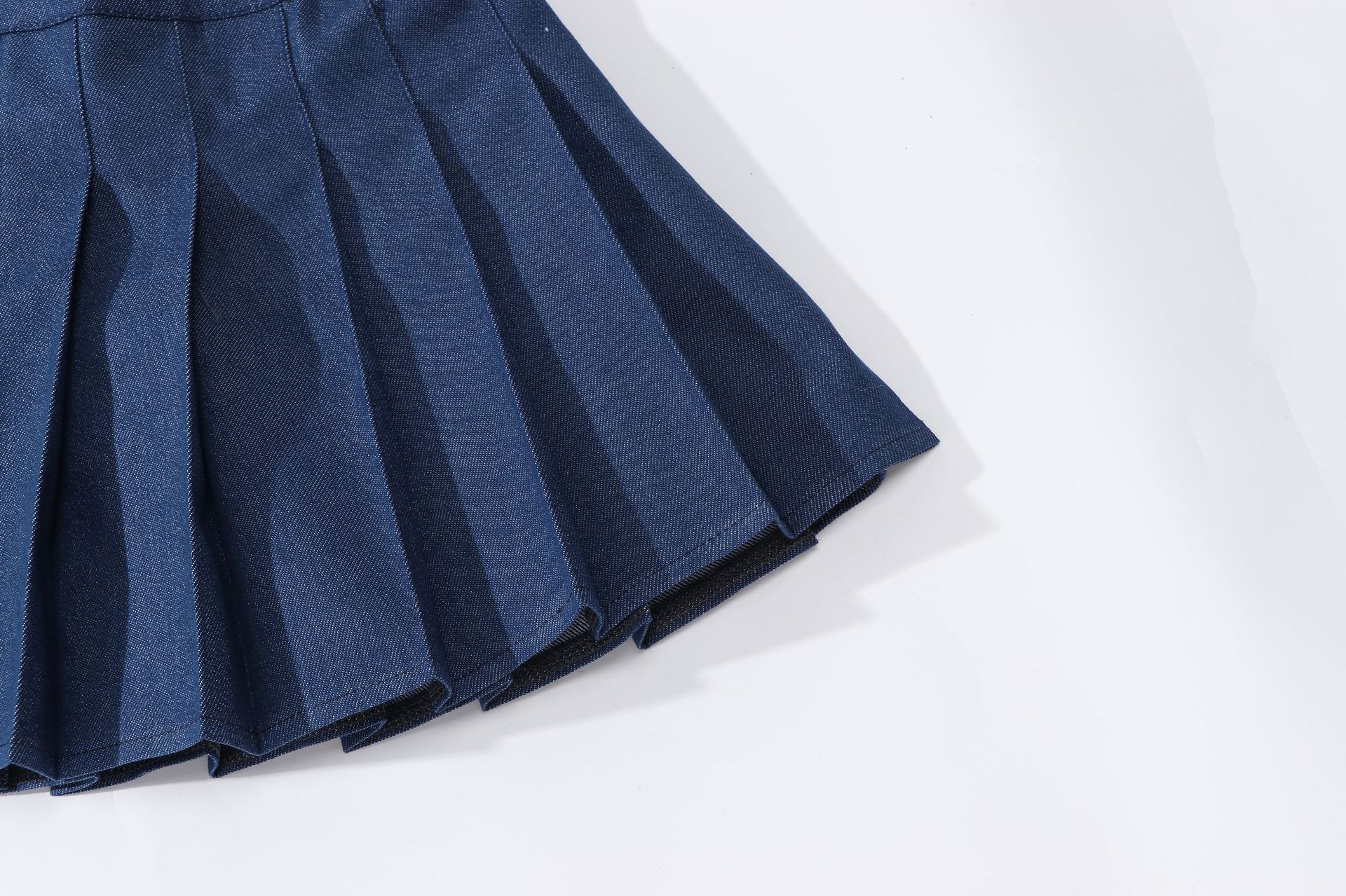 여자 데님 주름 치마 아동복 새 도착 문화 한국 스타일 사계절 스커트 어린이와 소녀를위한 트렌디 쇼트 스커트