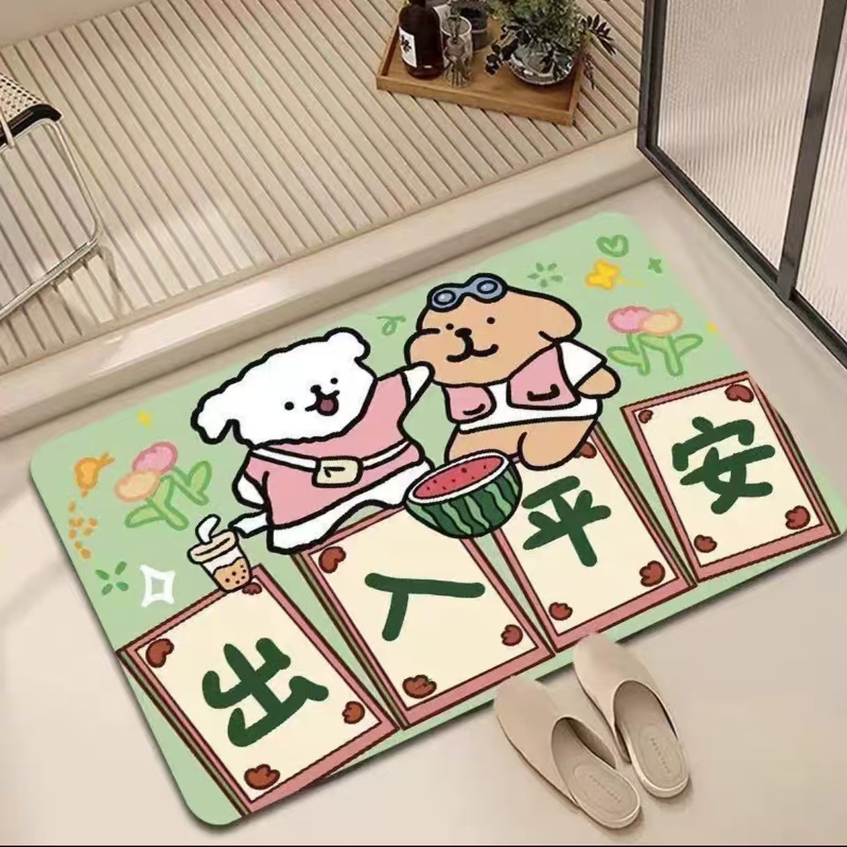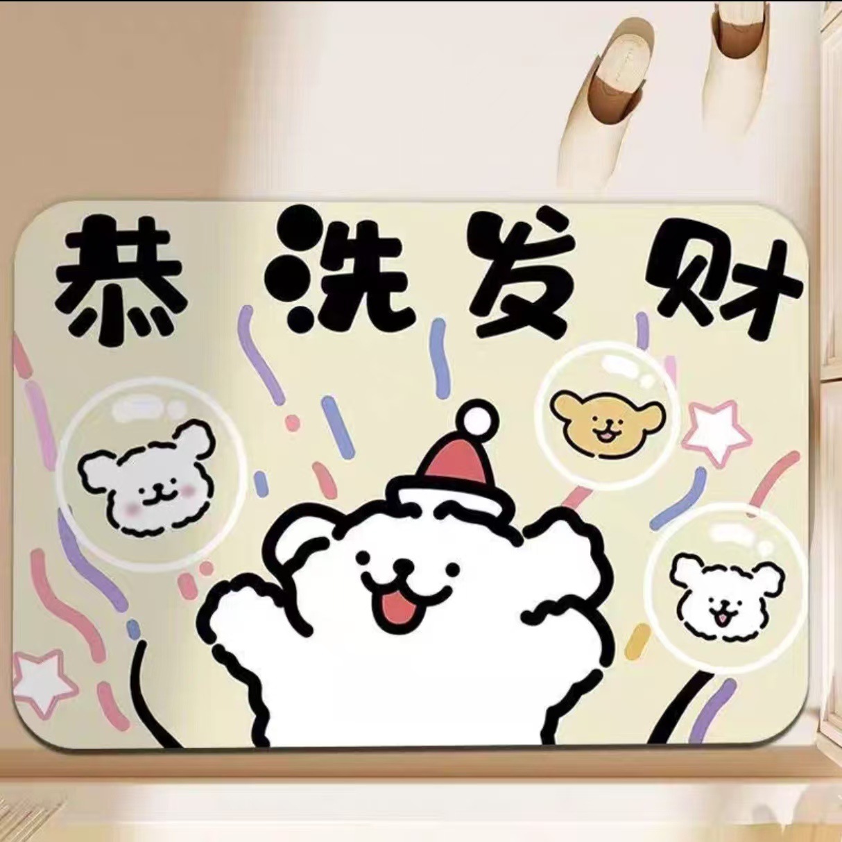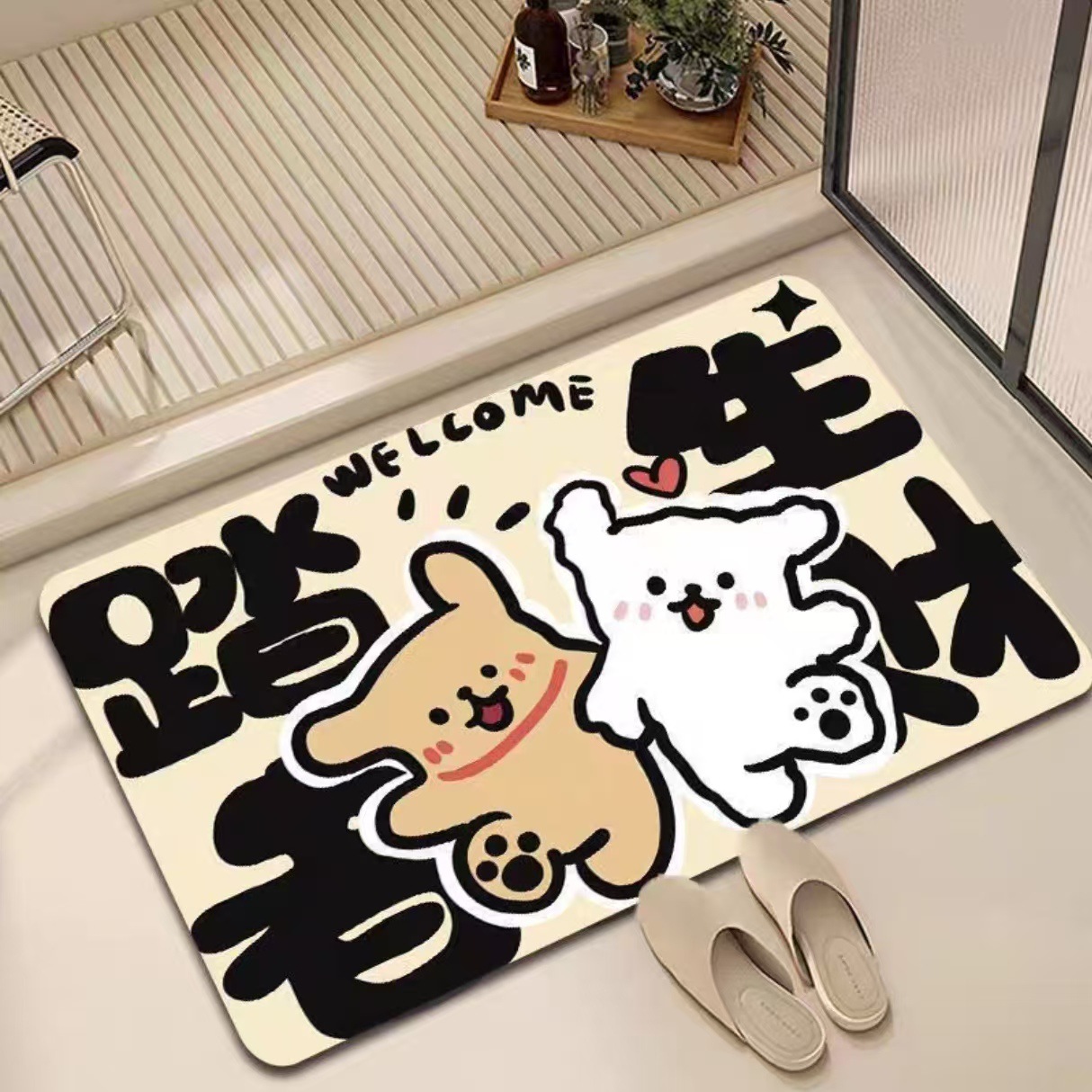 만화 귀여운 라인 강아지 diatom 진흙 매트 욕실 샤워 룸 흡수성 빠른 건조 발 매트 화장실 바닥 매트