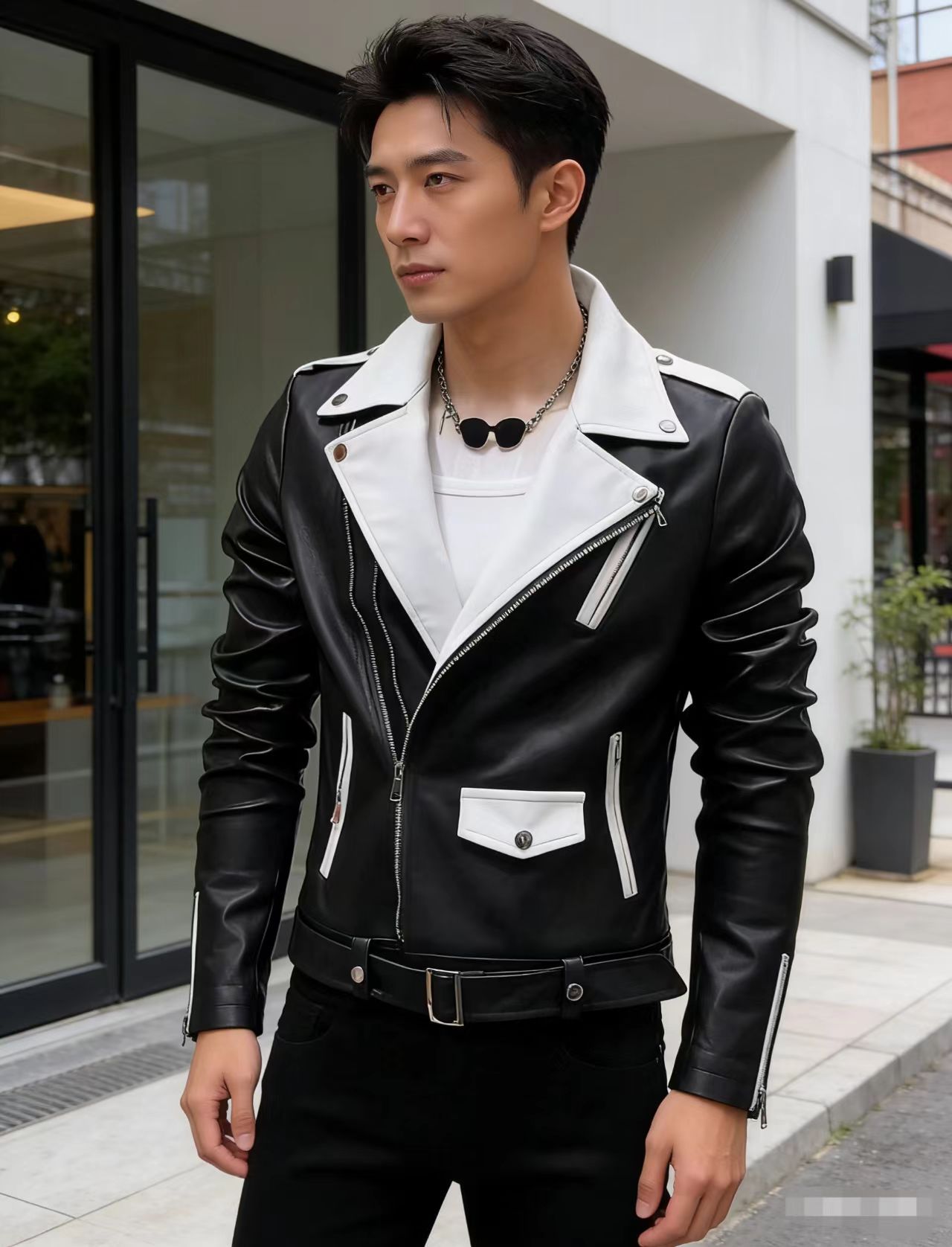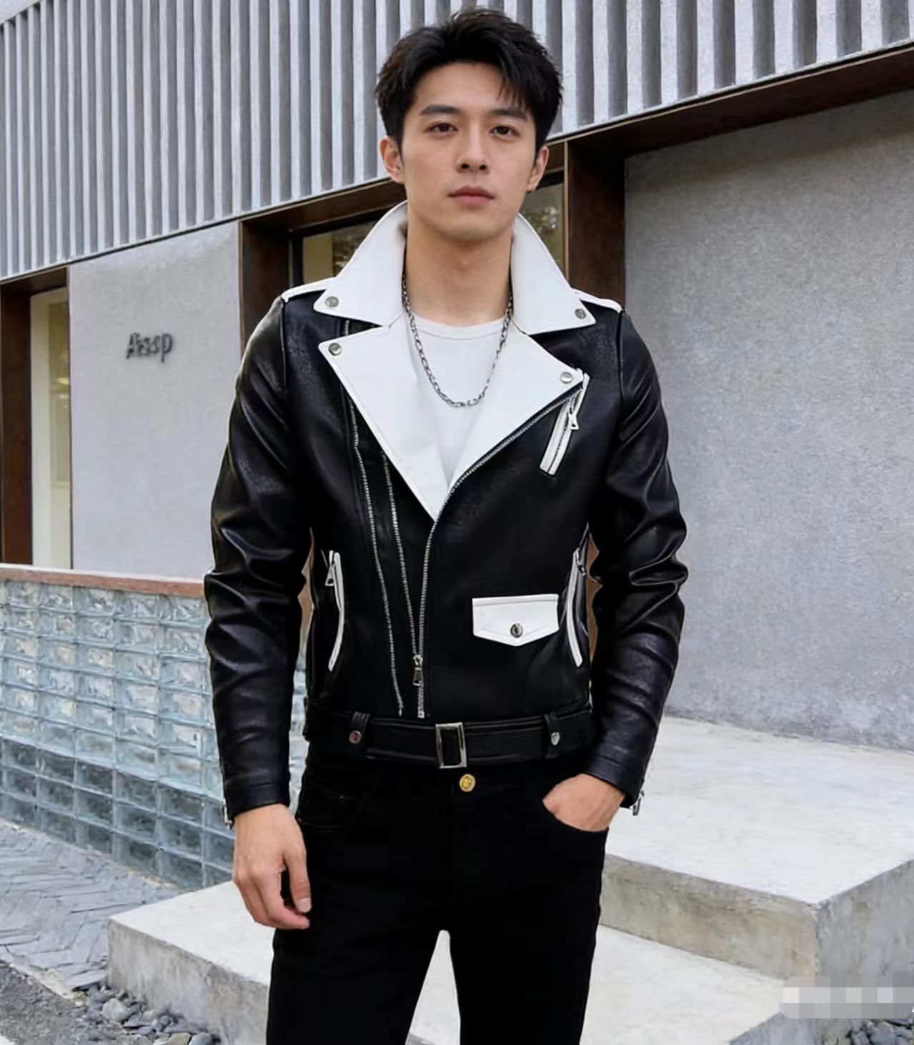 2025 새로운 도착 잘 생긴 가죽 자켓 남자의 봄과 가을 새로운 도착 유행 한국 스타일 가죽 캐주얼 야구 세트 오토바이 자켓스토어 가기