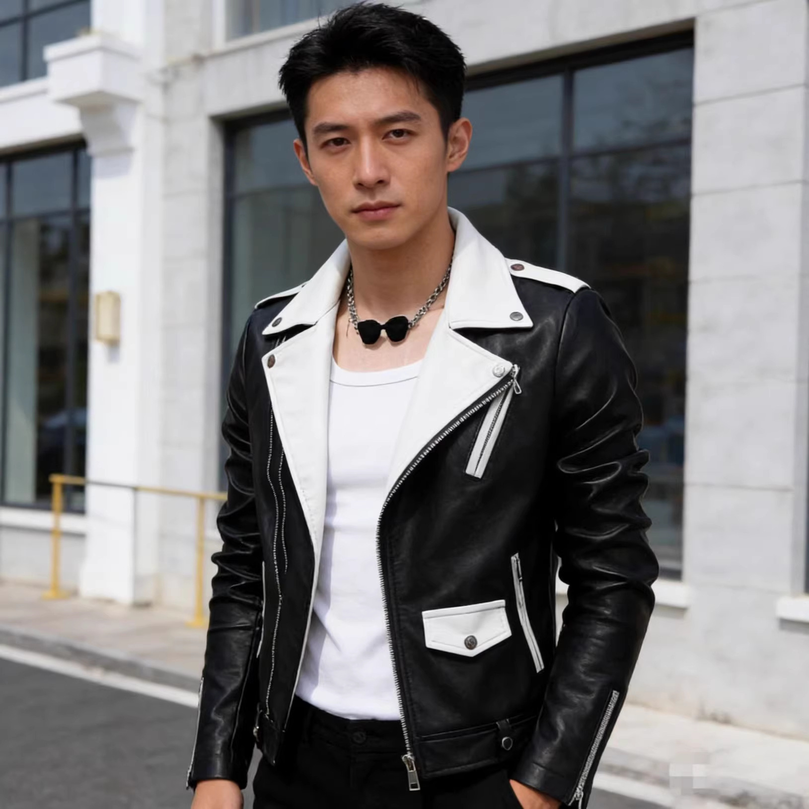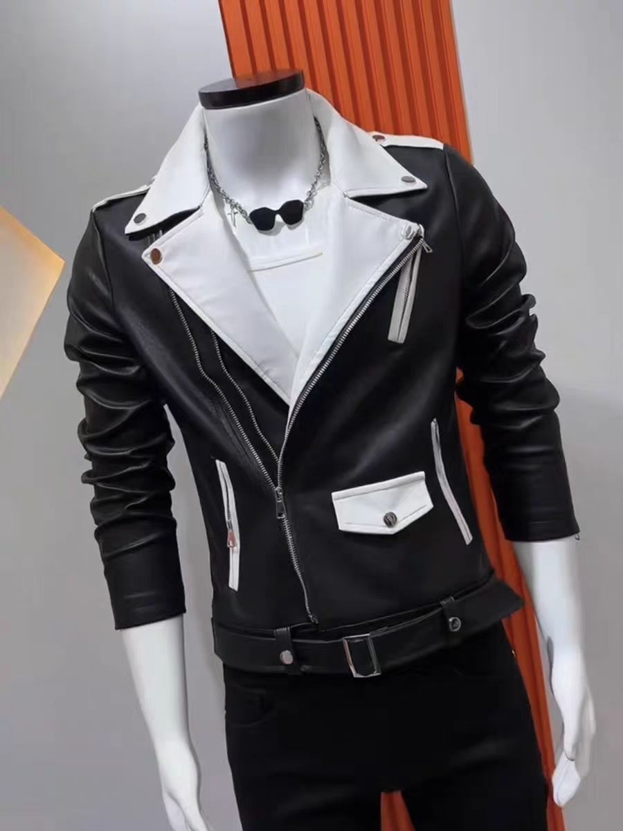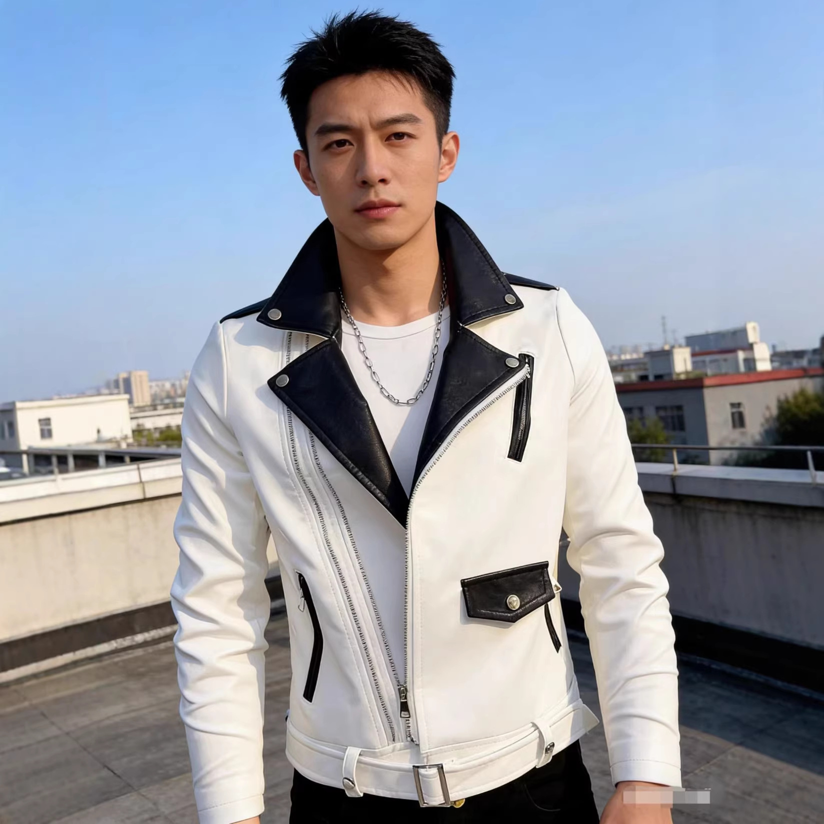 2025 새로운 도착 잘 생긴 가죽 자켓 남자의 봄과 가을 새로운 도착 유행 한국 스타일 가죽 캐주얼 야구 세트 오토바이 자켓