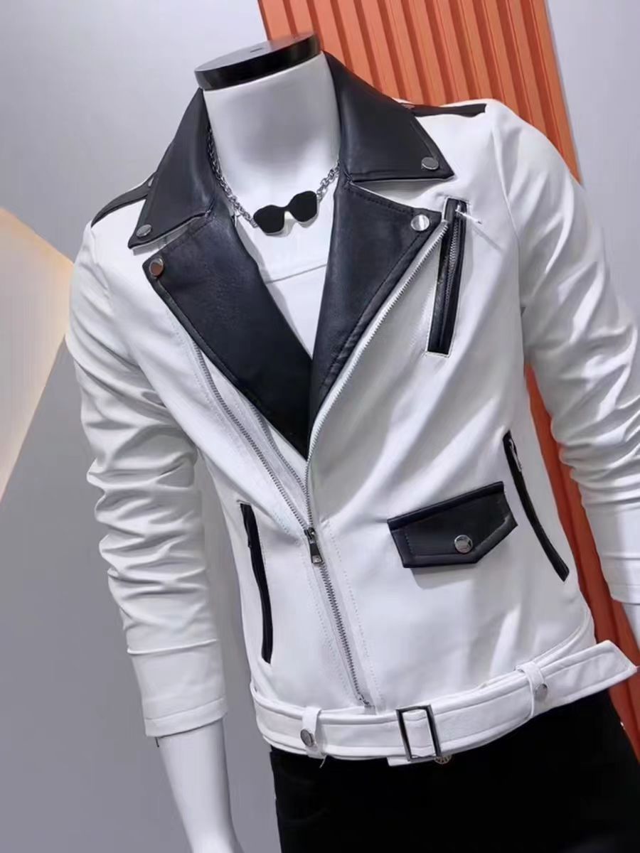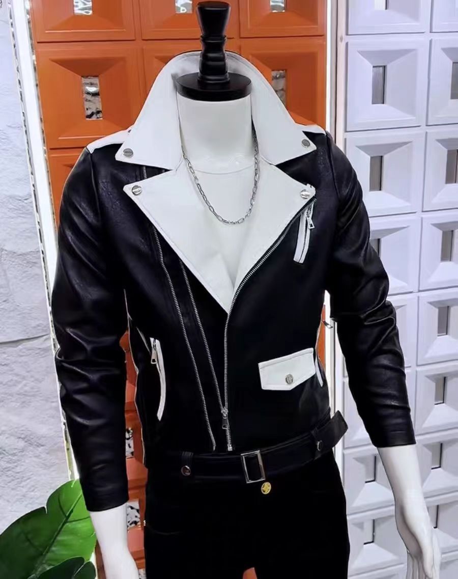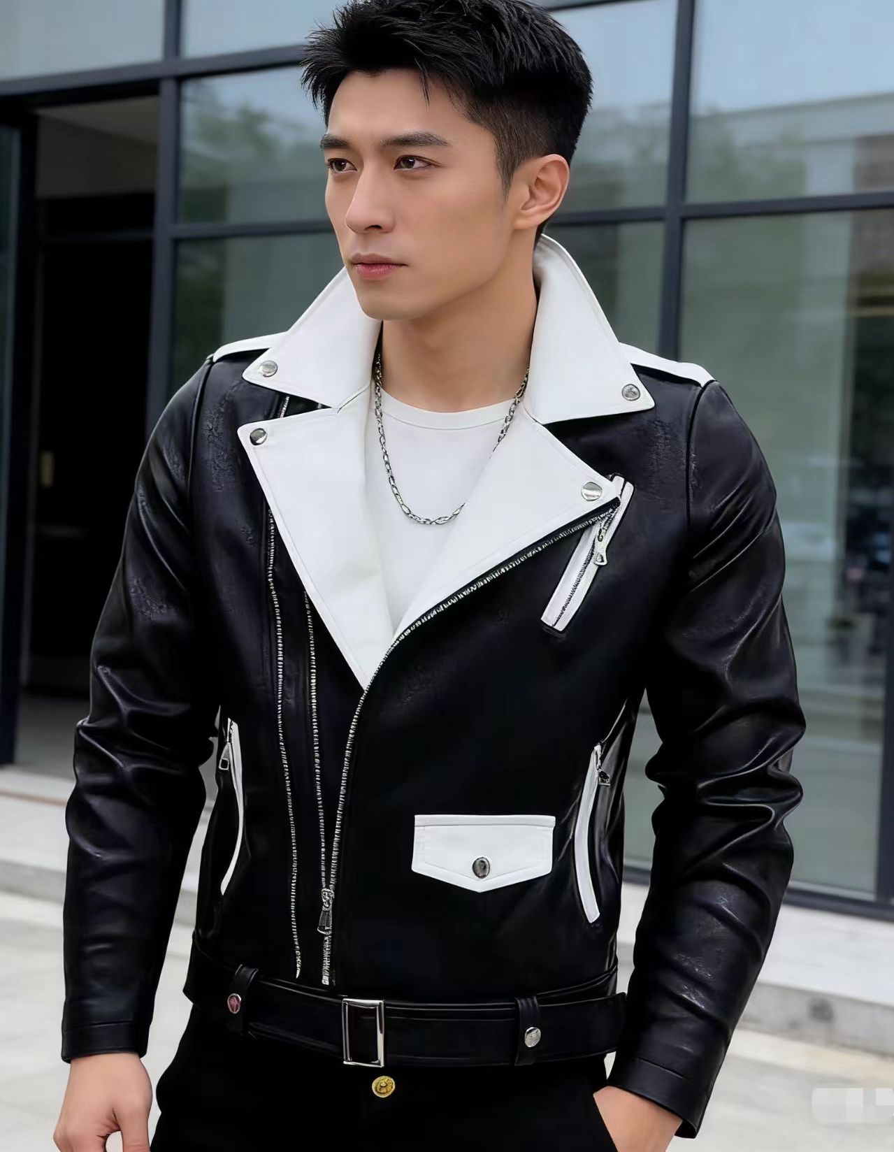 2025 새로운 도착 잘 생긴 가죽 자켓 남자의 봄과 가을 새로운 도착 유행 한국 스타일 가죽 캐주얼 야구 세트 오토바이 자켓