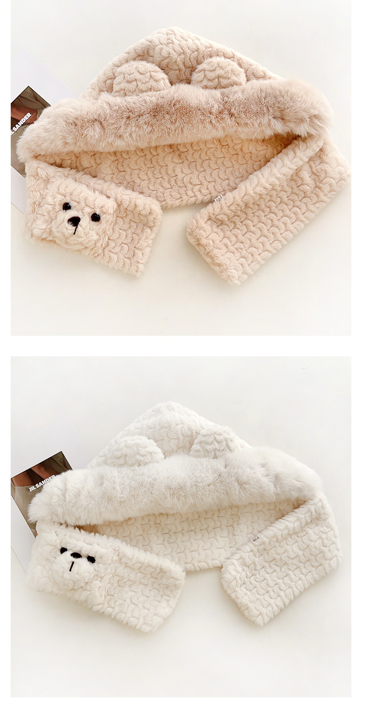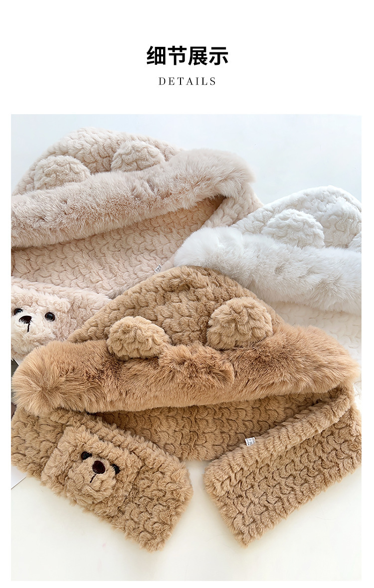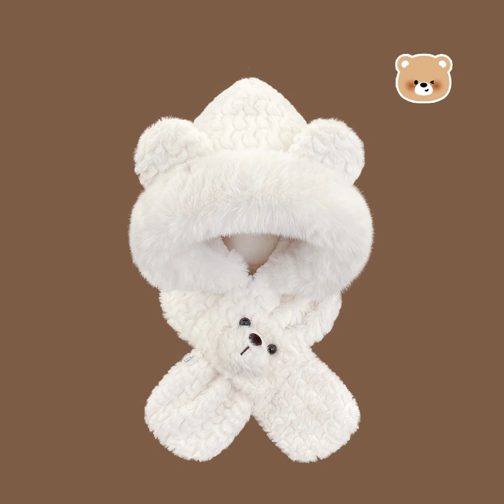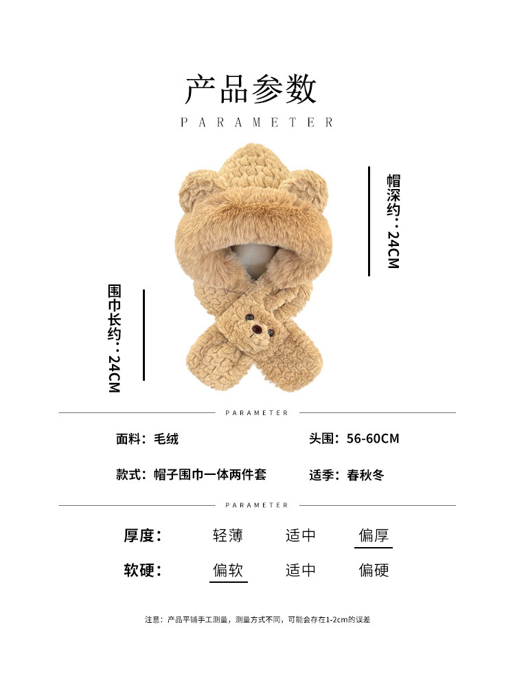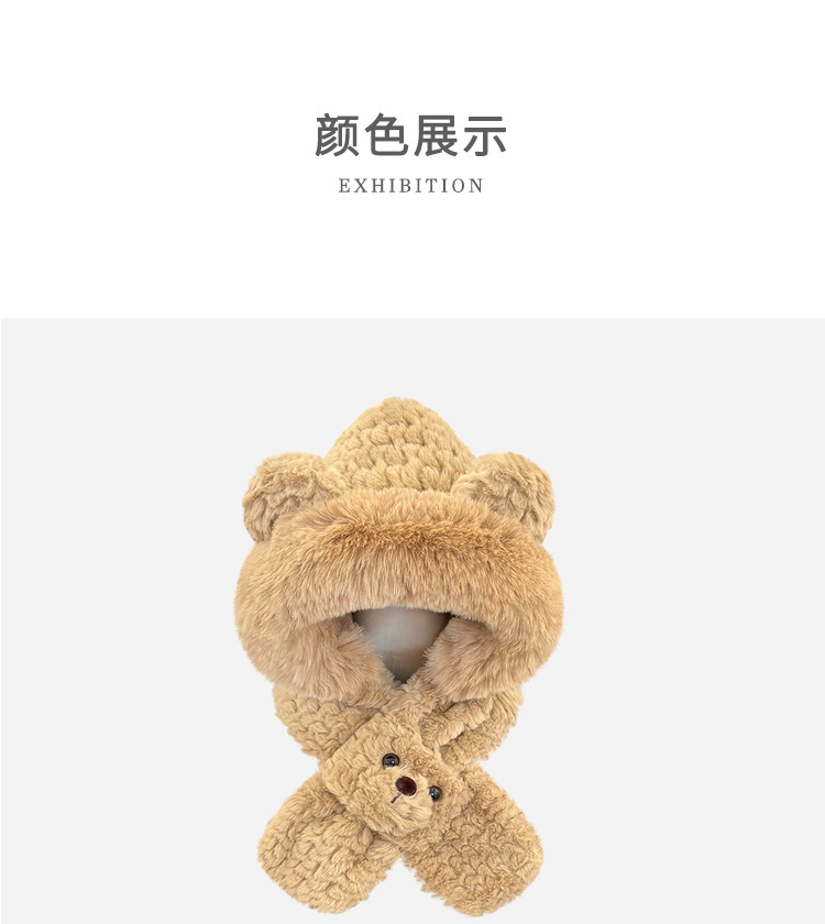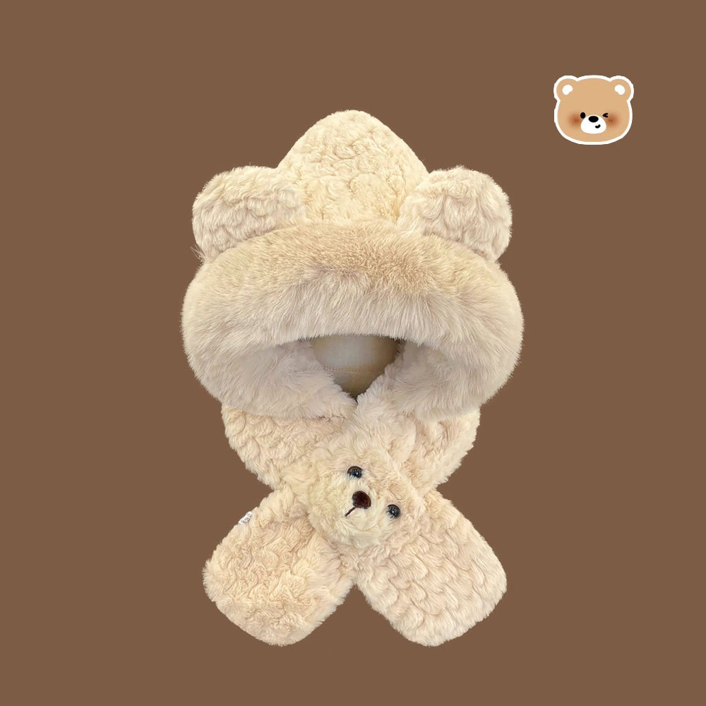 곰 귀 봉제 모자와 스카프 올인원 여자 겨울 사이클링 냉장 따뜻한 귀 보호 목 올 매치 레이 펑 모자