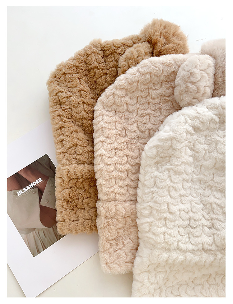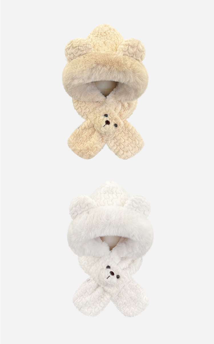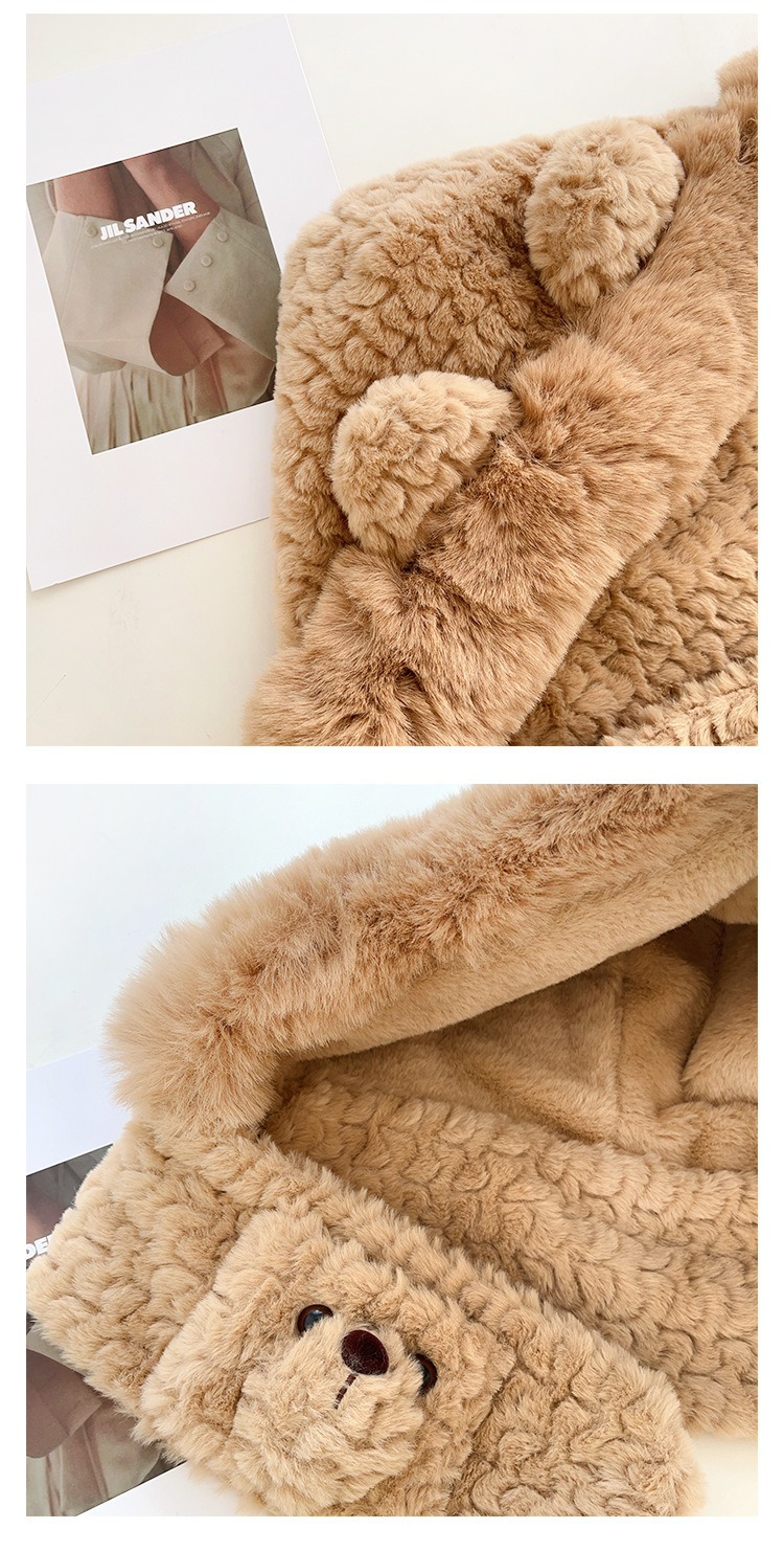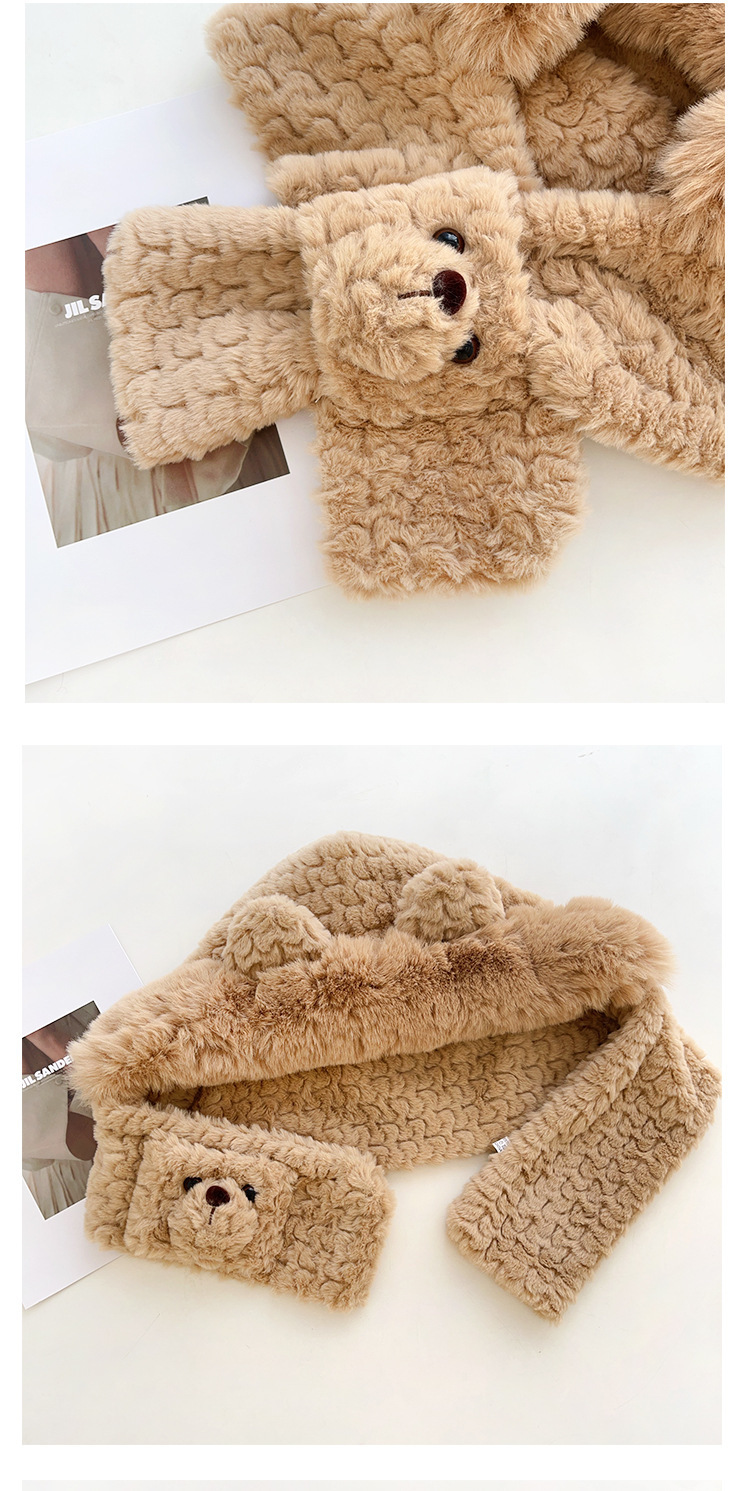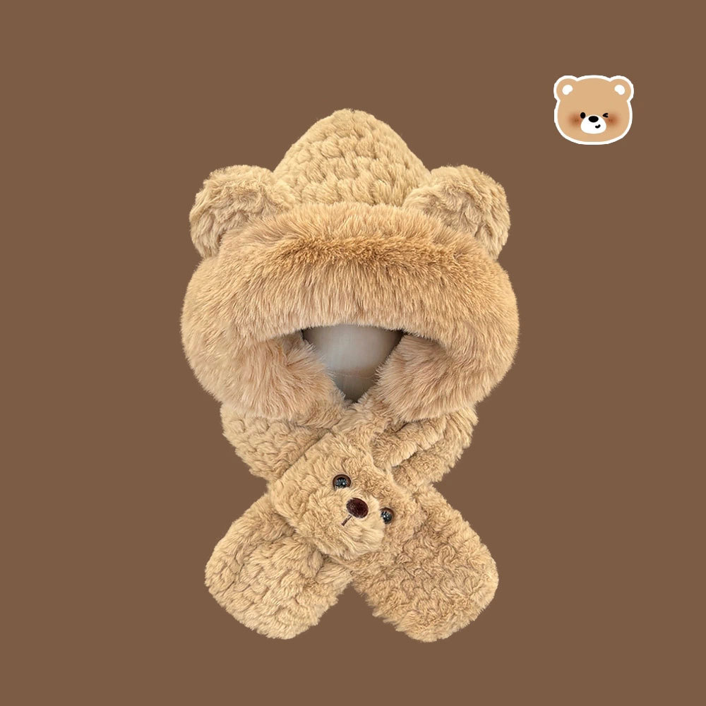 곰 귀 봉제 모자와 스카프 올인원 여자 겨울 사이클링 냉장 따뜻한 귀 보호 목 올 매치 레이 펑 모자