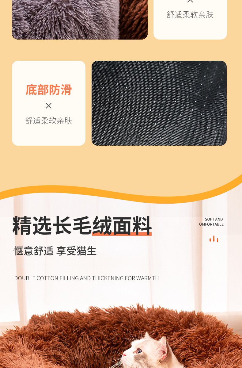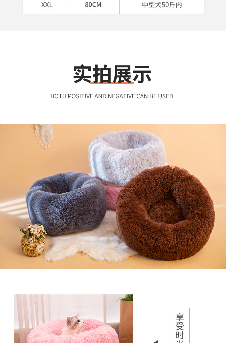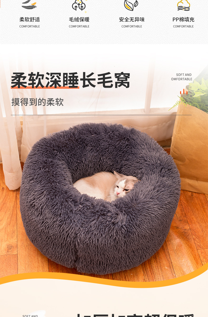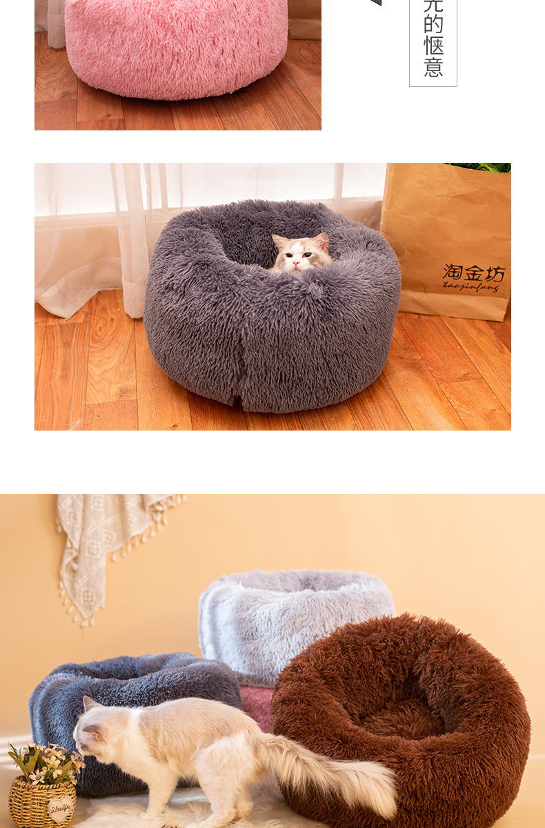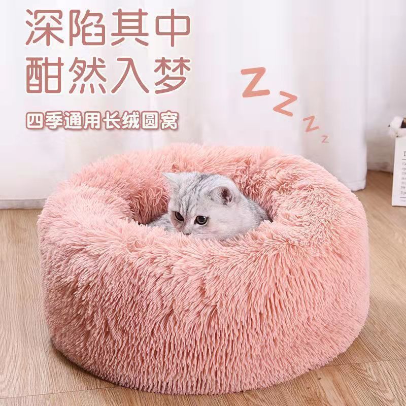 공장 도매 겨울 따뜻한 물린 썩은 개집 둥근 긴 봉제 애완 동물 패드 두꺼운 애완 동물 둥지 큰 고양이 둥지스토어 가기