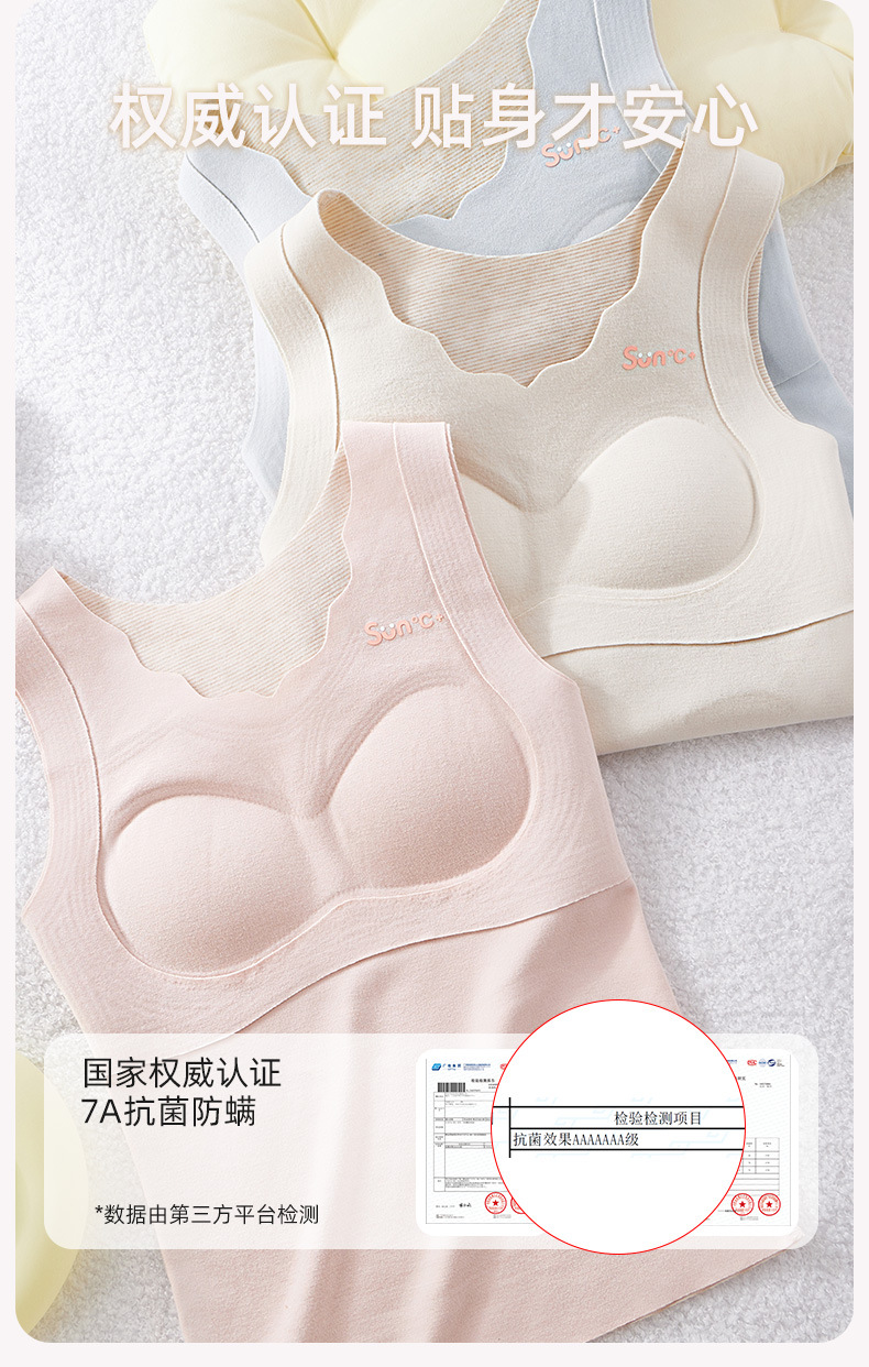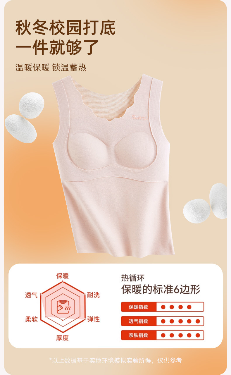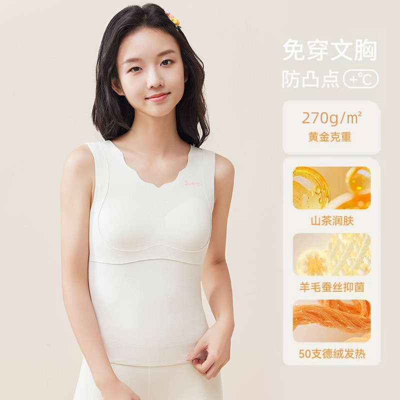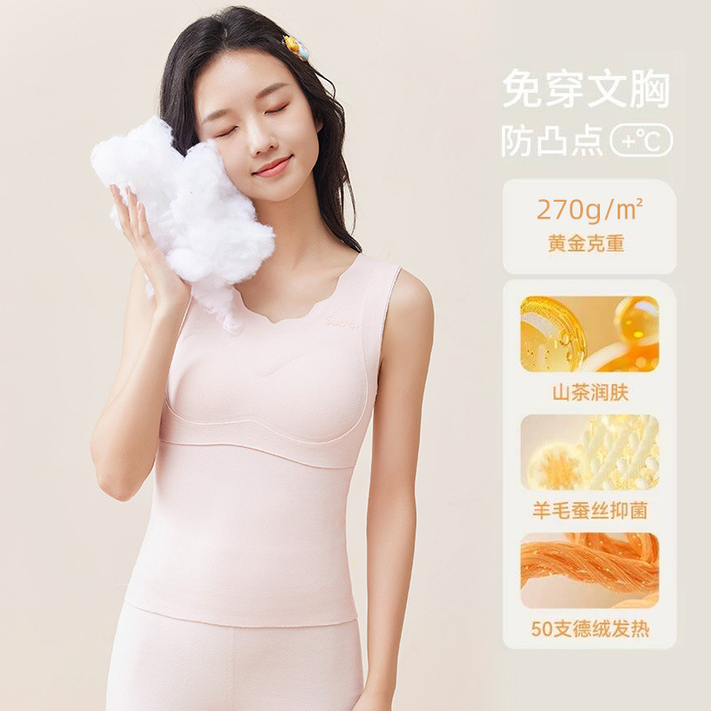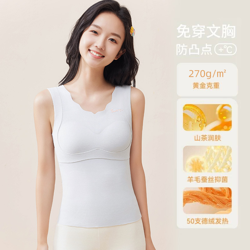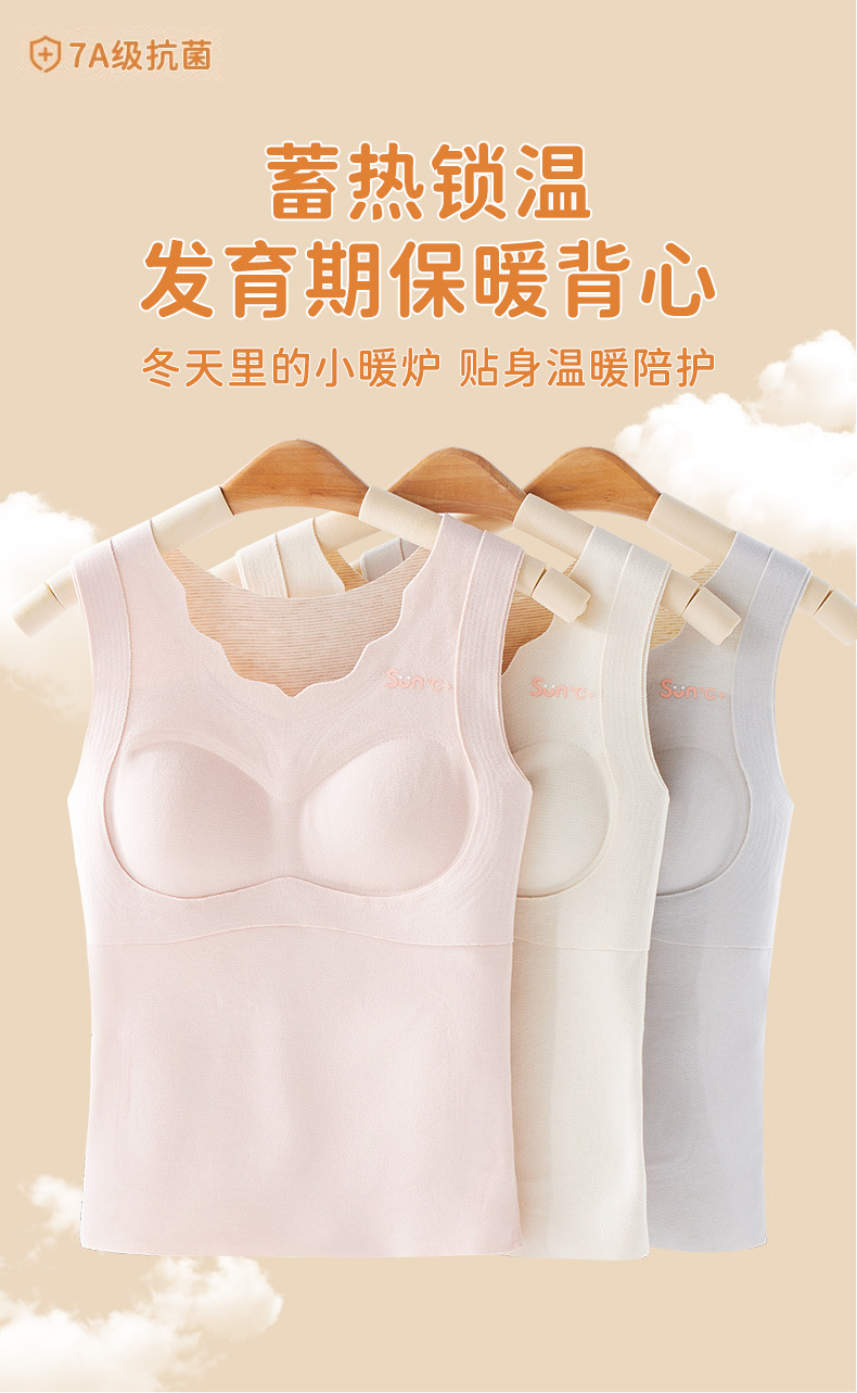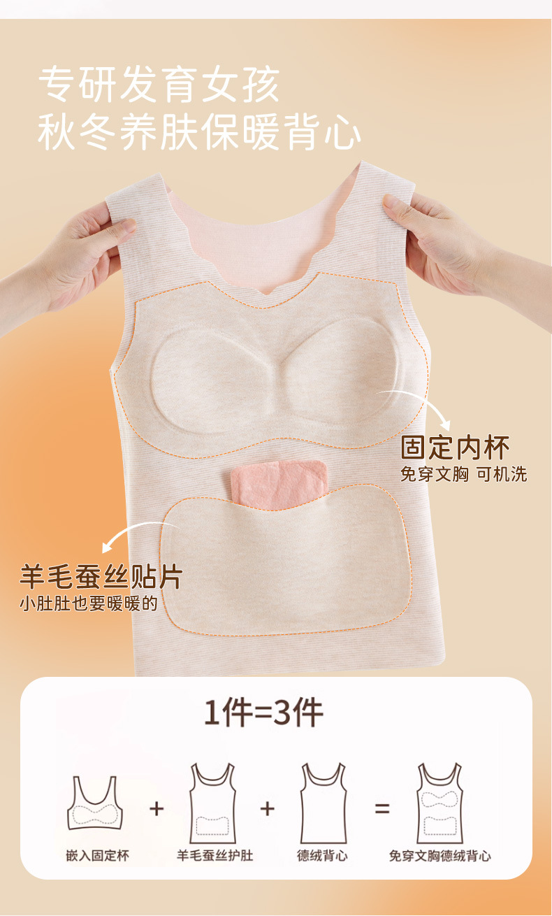 고등학교 중학생 성장 기간 따뜻한 조끼 앞 주머니 따뜻한 여자 캐시미어 실크 배꼽 브래지어