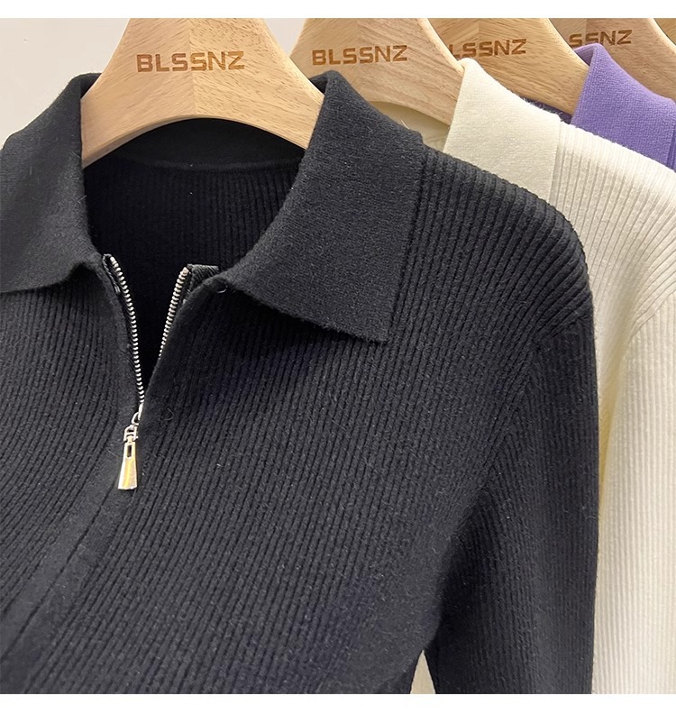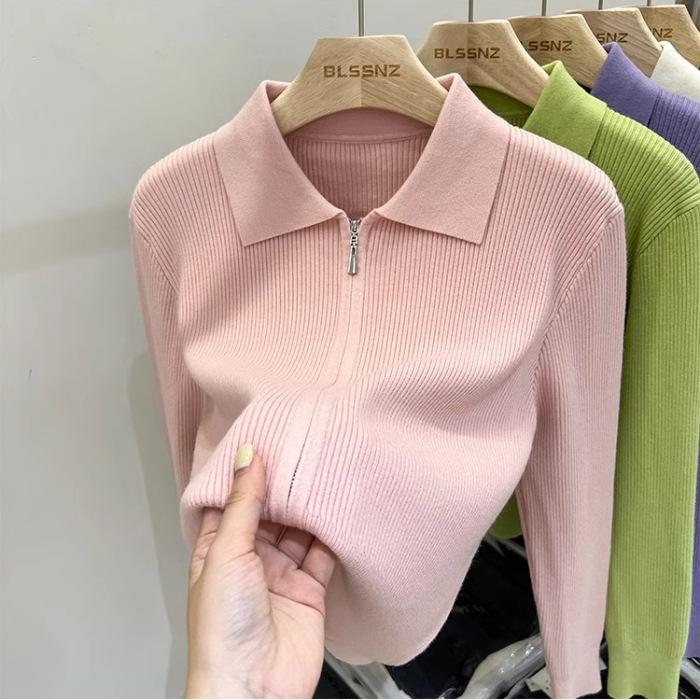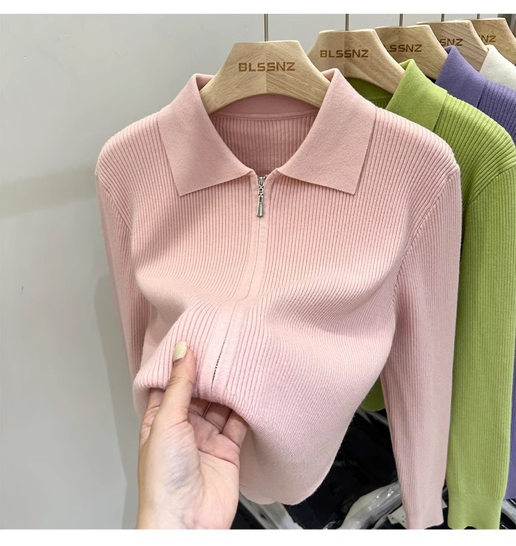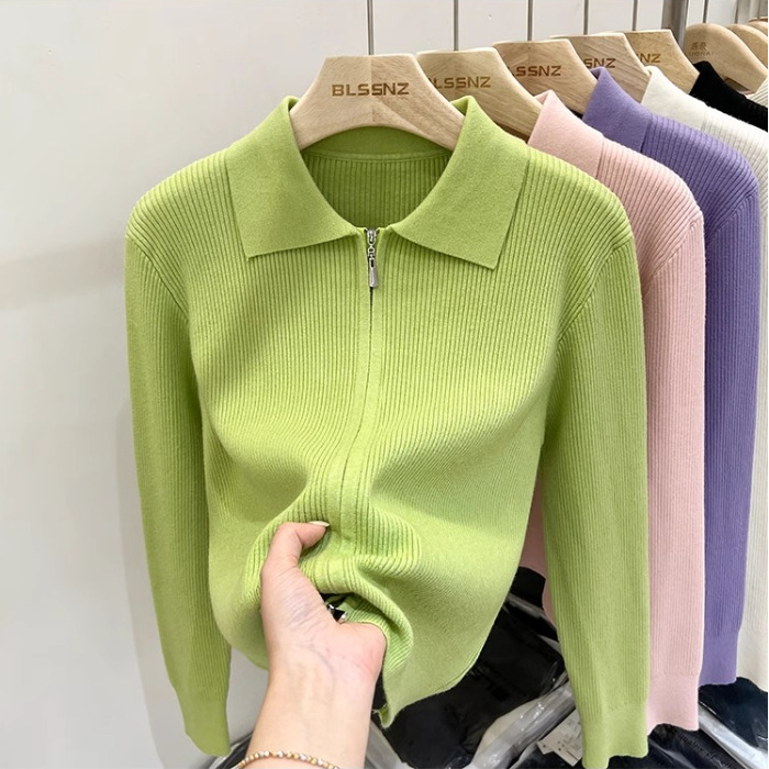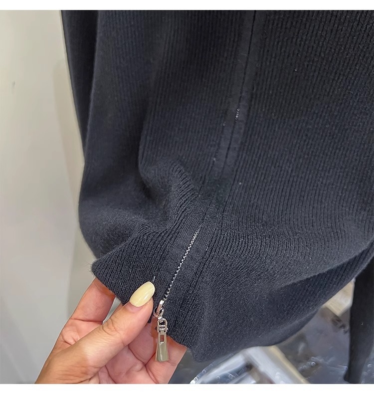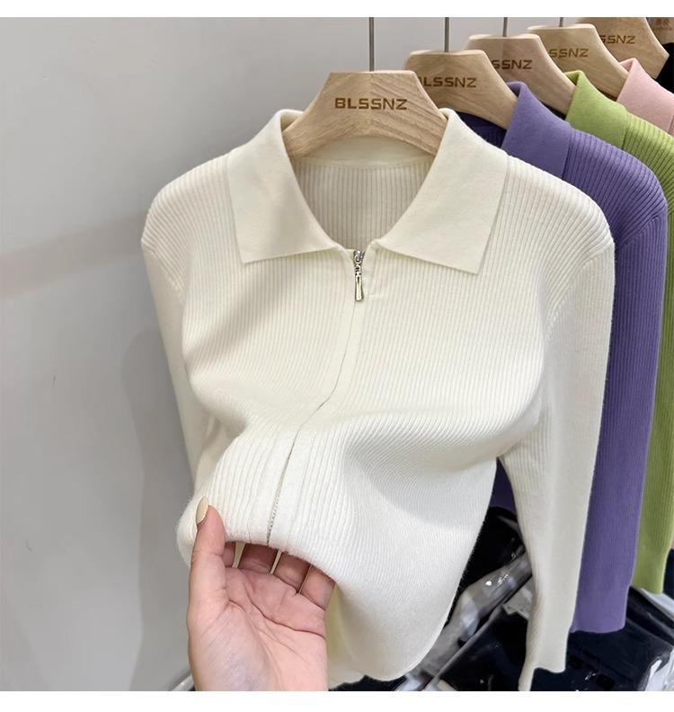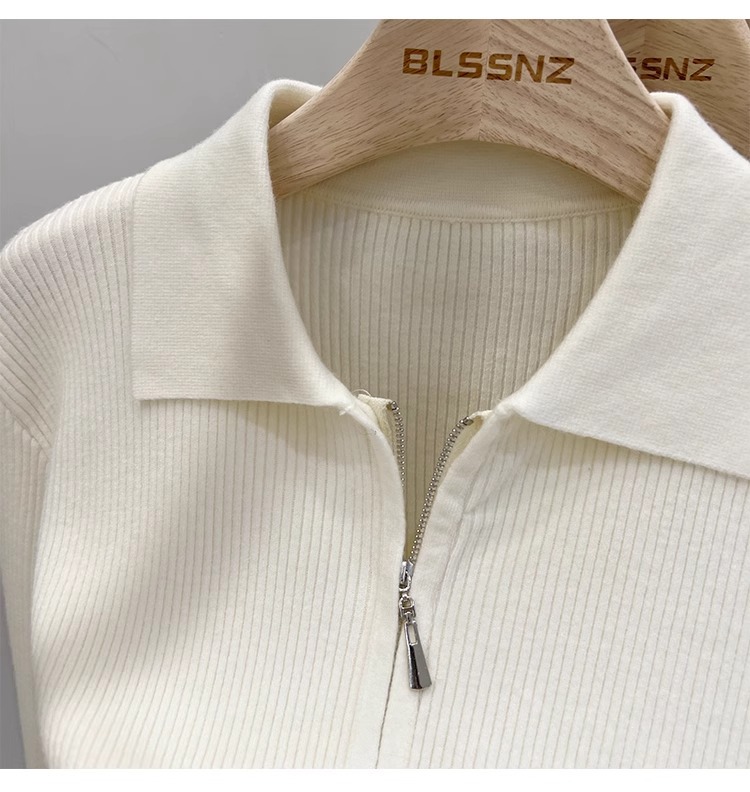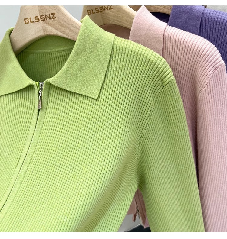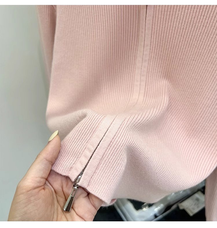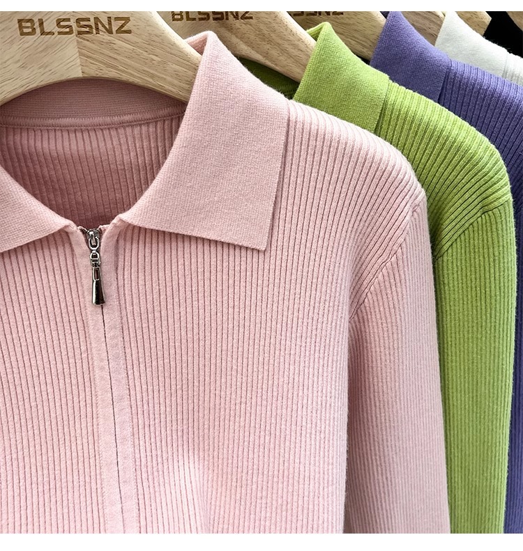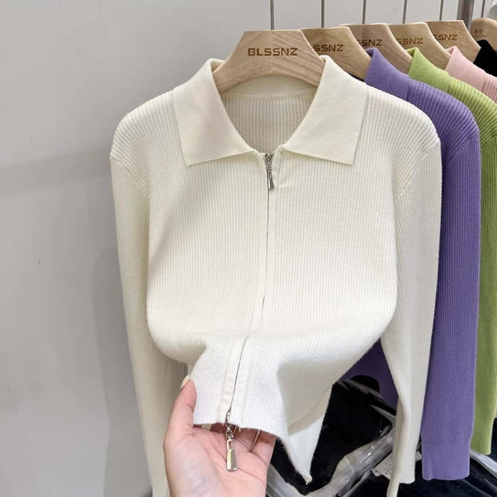 [카운터 철수] 더블 지퍼 옷깃 니트 카디건 2024 이른 봄 새 구덩이 스트립 쇼트 코트 여자 탑