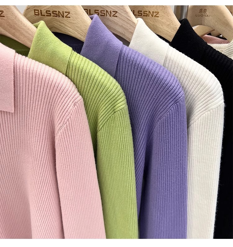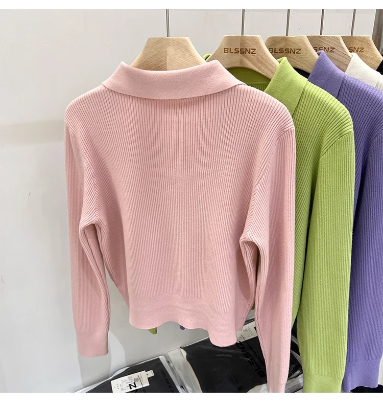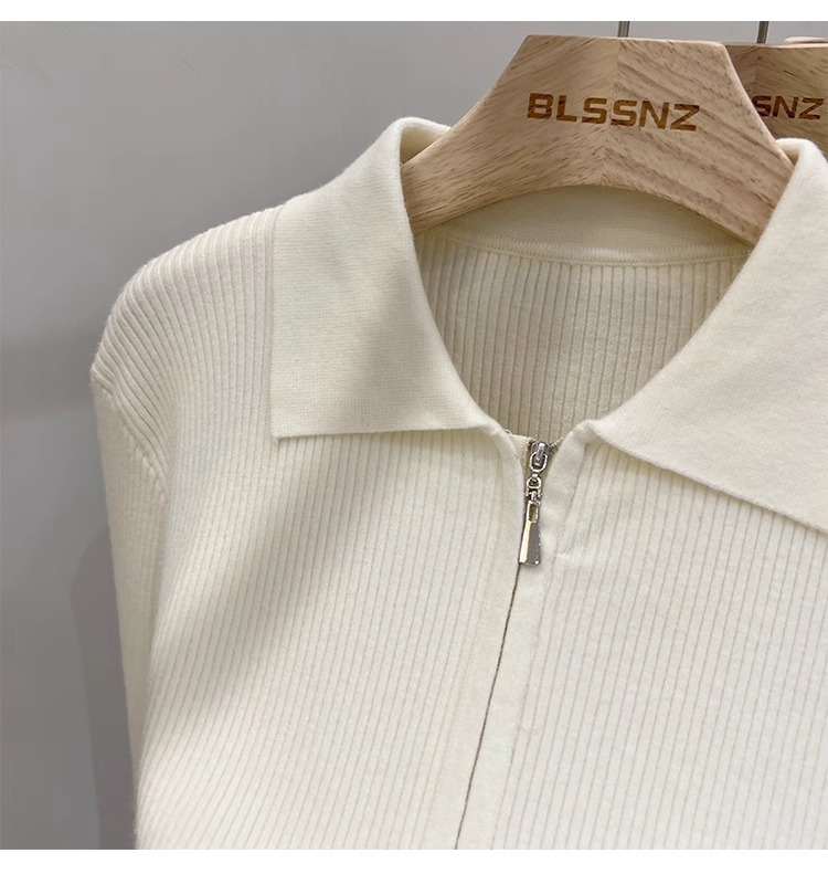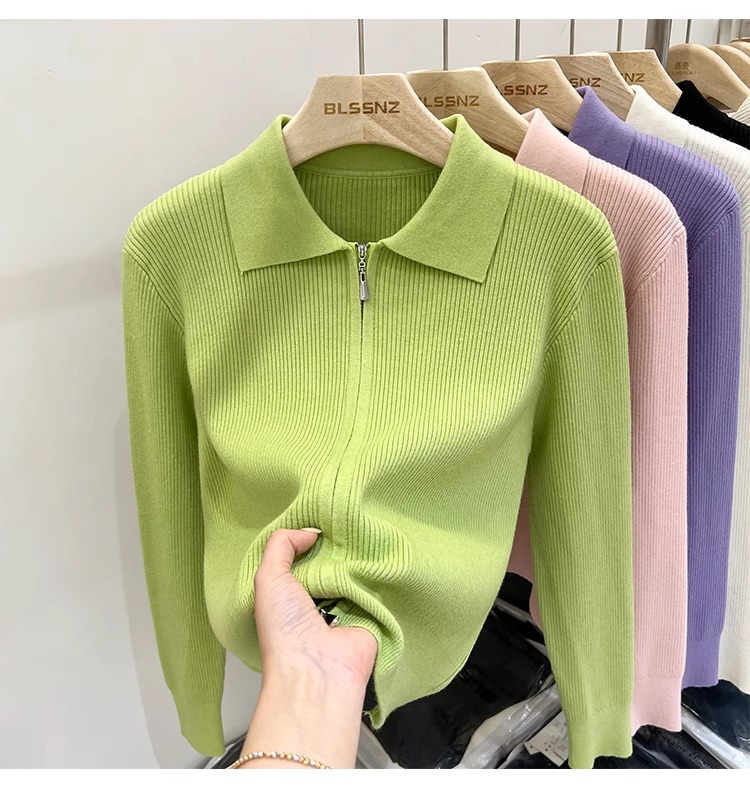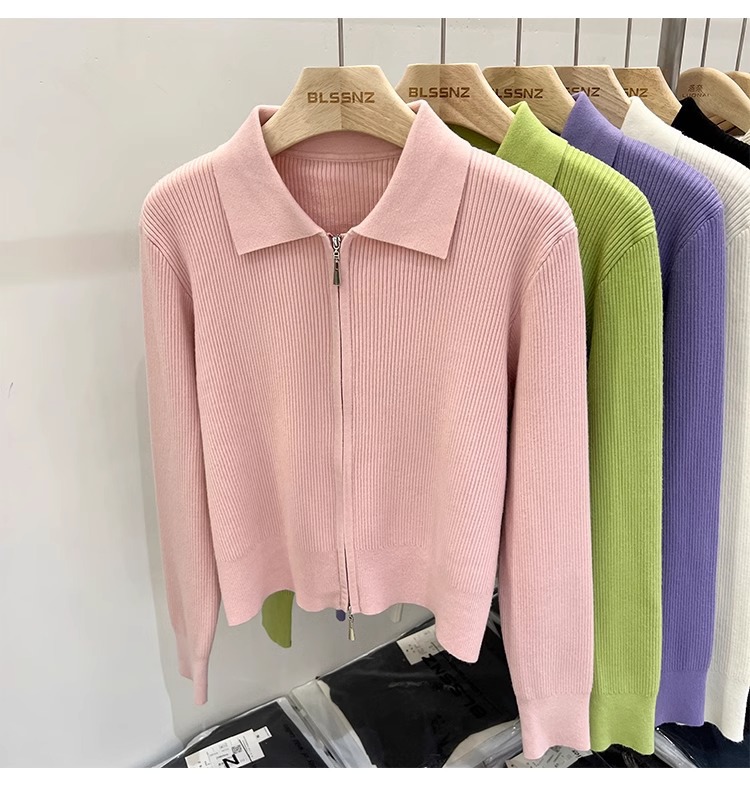 [카운터 철수] 더블 지퍼 옷깃 니트 카디건 2024 이른 봄 새 구덩이 스트립 쇼트 코트 여자 탑스토어 가기