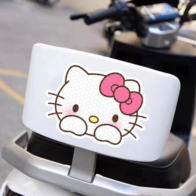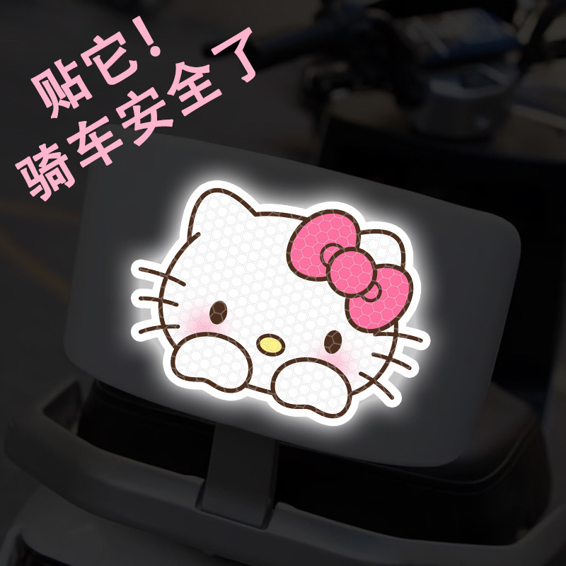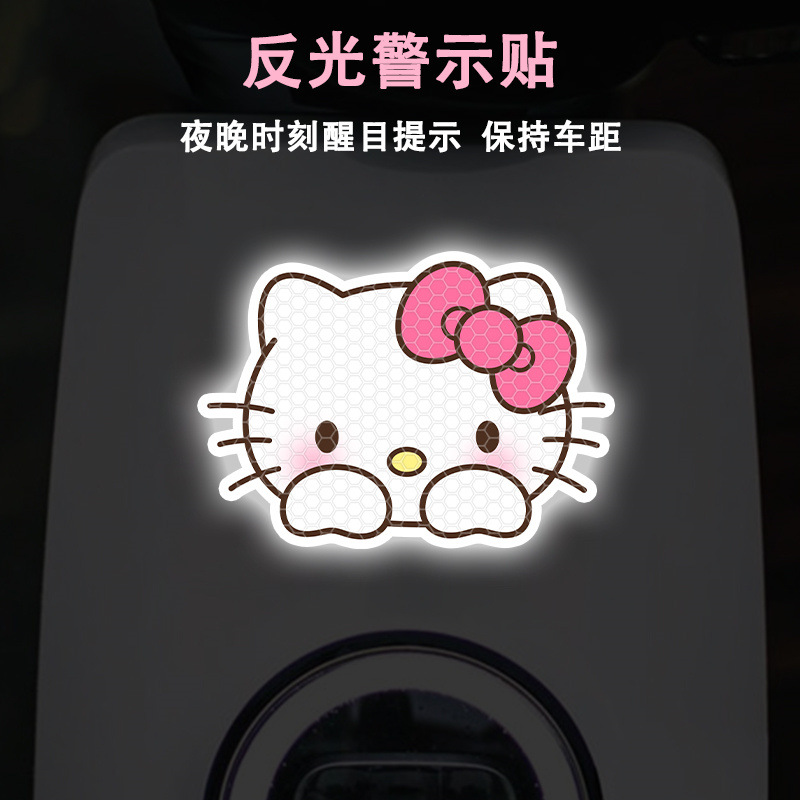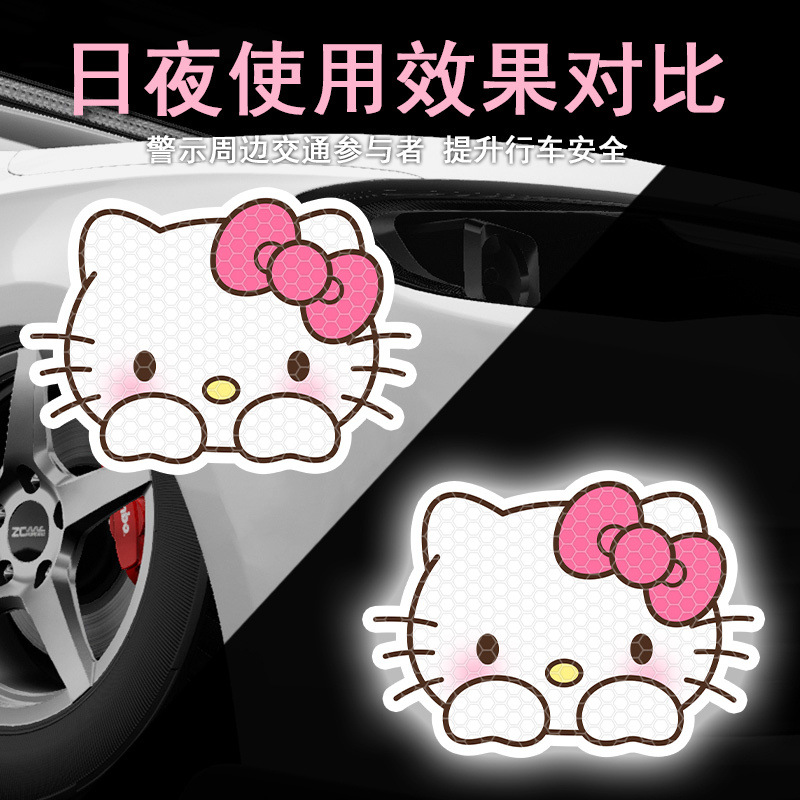 Kt 고양이 귀여운 만화 반사 스티커 자동차 장식 스티커 전기 바디 전면 및 후면 야간 경고 스티커 방수스토어 가기