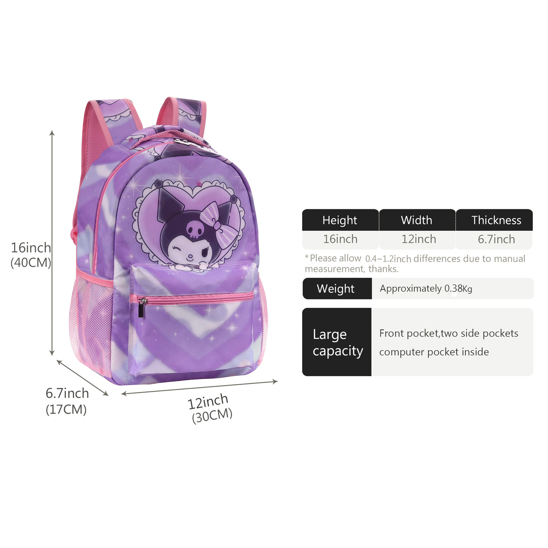 재고 KT 고양이 만화 배낭 구로미 구로미 유귀 개 초등학생 스쿨백 어린이 도시락 연필 가방스토어 가기