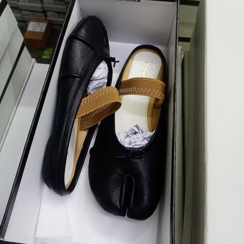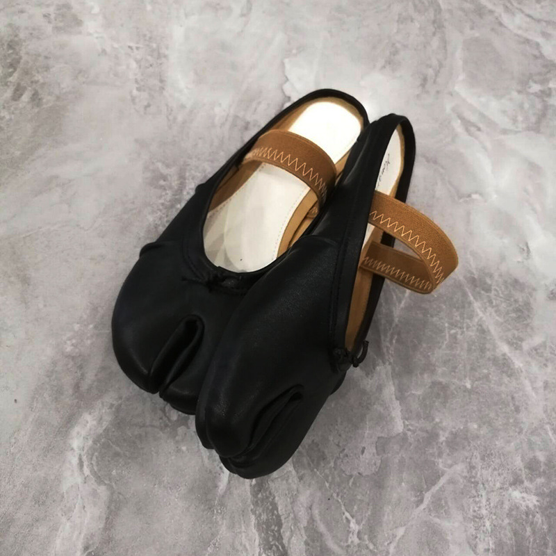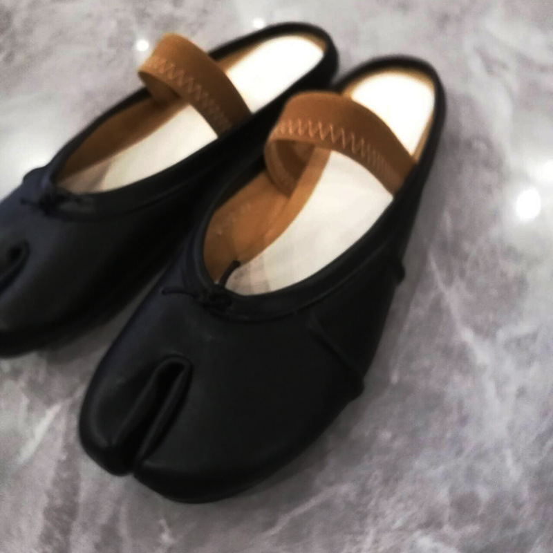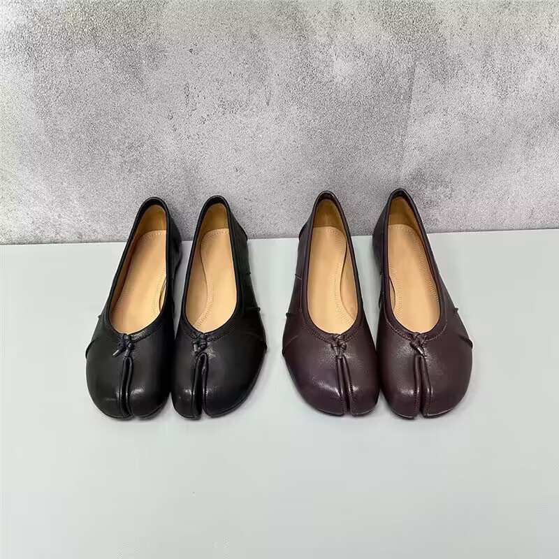 양가죽 타비 스플릿 발가락 신발 여성의 2025 새로운 틈새 주름 발레 트로터 가죽 로우 탑 플랫 슈즈스토어 가기
