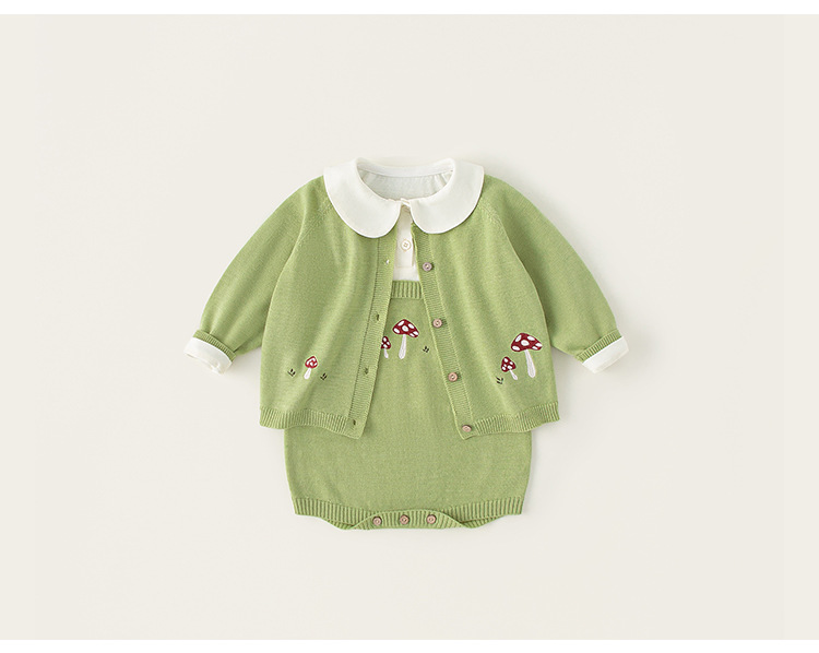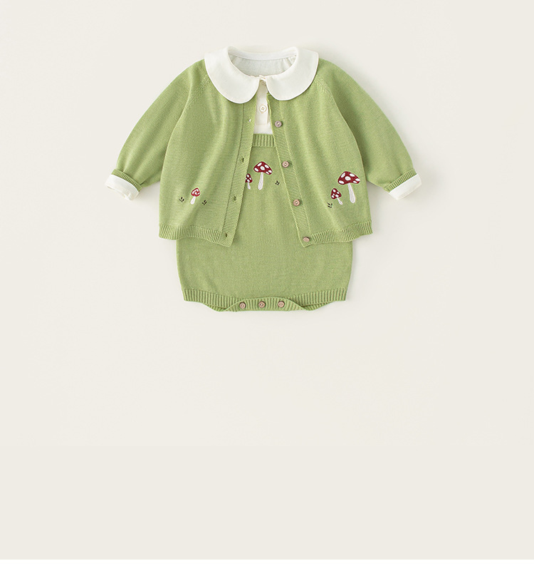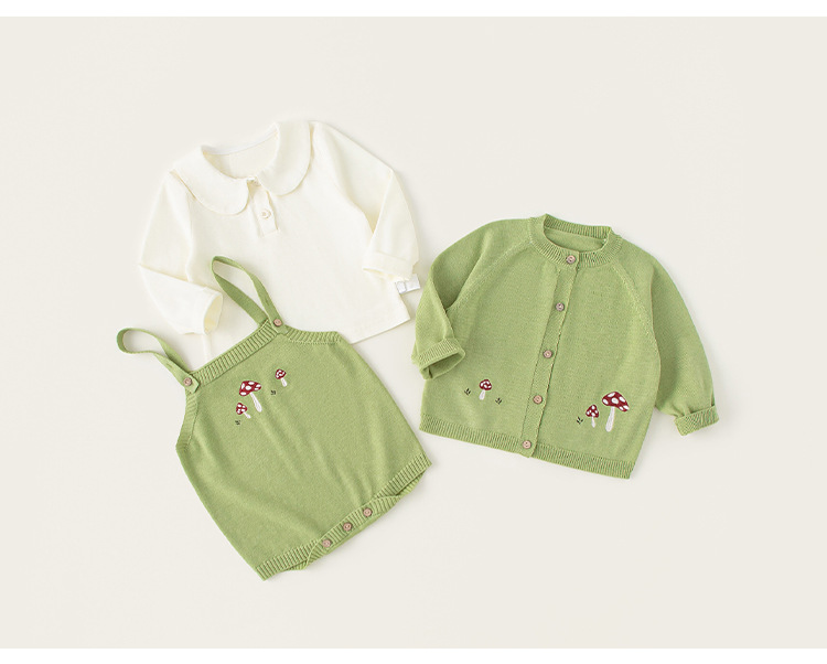 Bangxuan 아동복 솔리드 컬러베이스 셔츠 버섯 자수 슬링 클라이밍 세트 아기 소녀 스웨터 카디건 아기 귀여운 세트