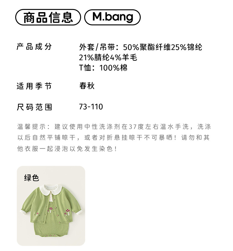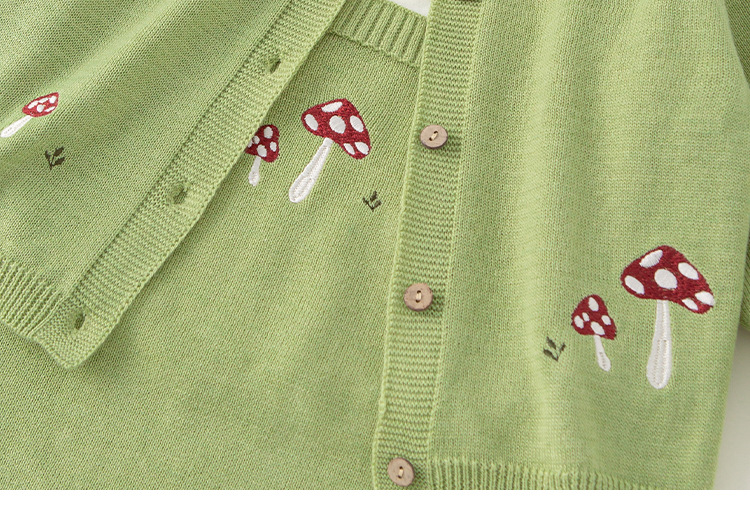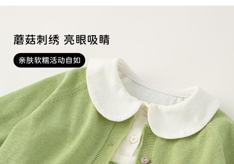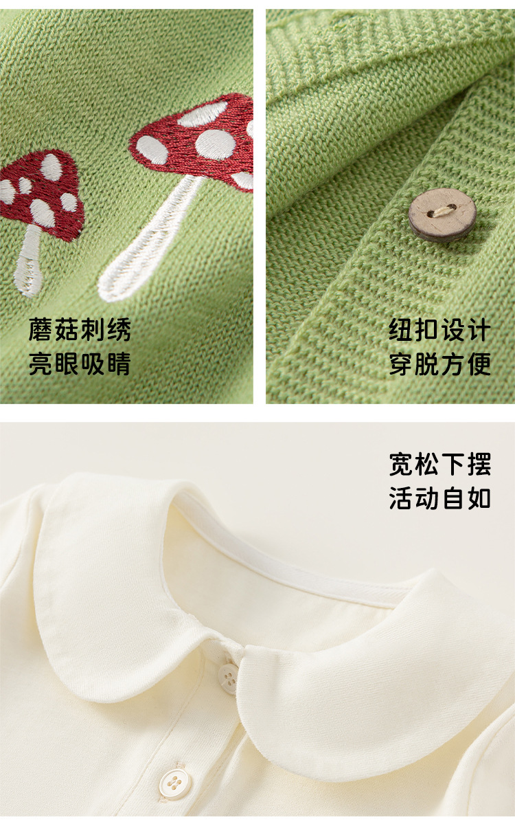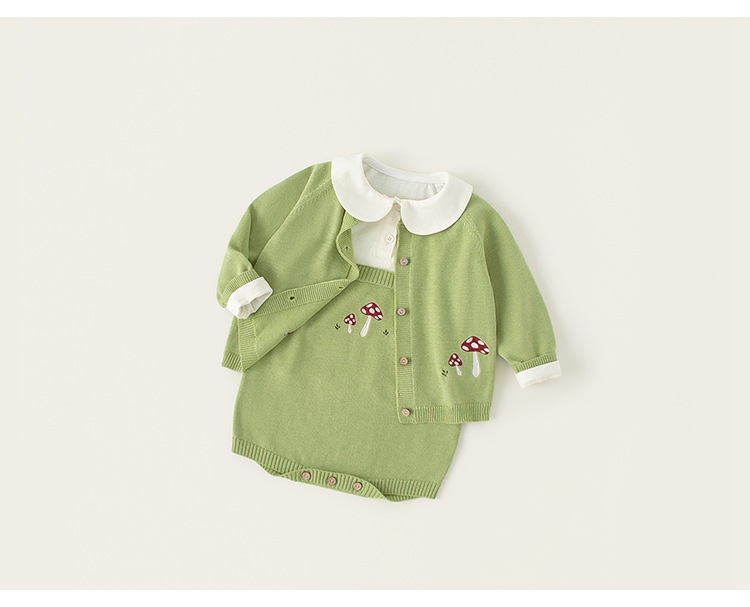Bangxuan 아동복 솔리드 컬러베이스 셔츠 버섯 자수 슬링 클라이밍 세트 아기 소녀 스웨터 카디건 아기 귀여운 세트스토어 가기