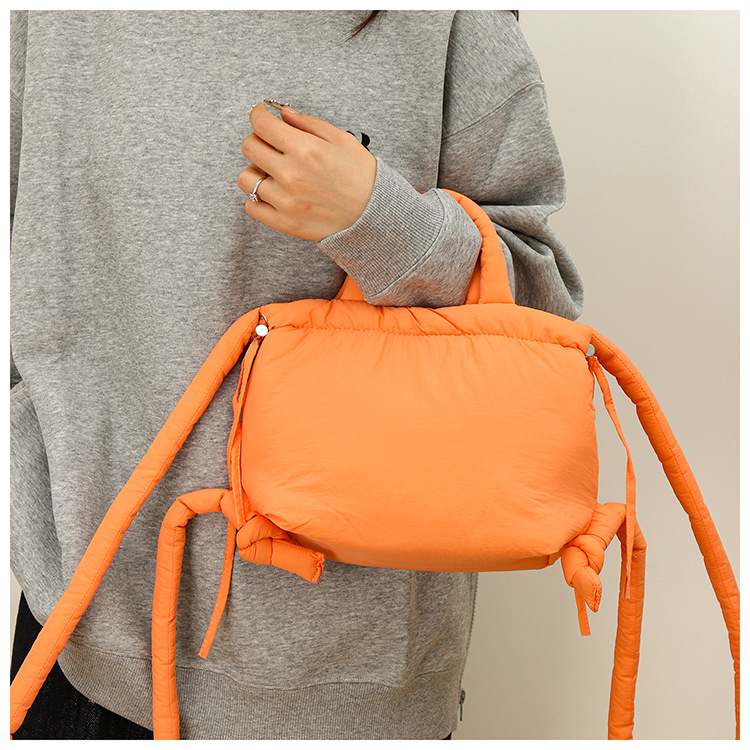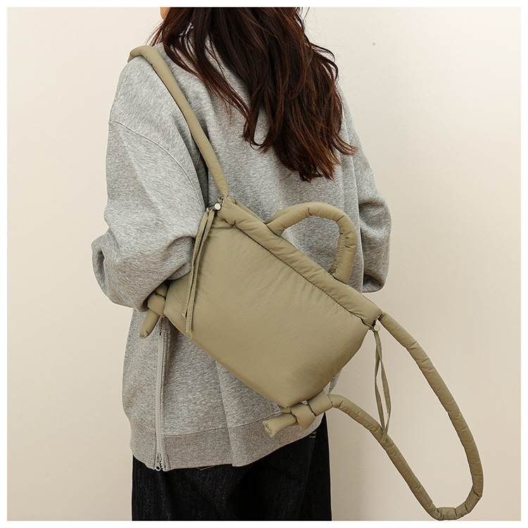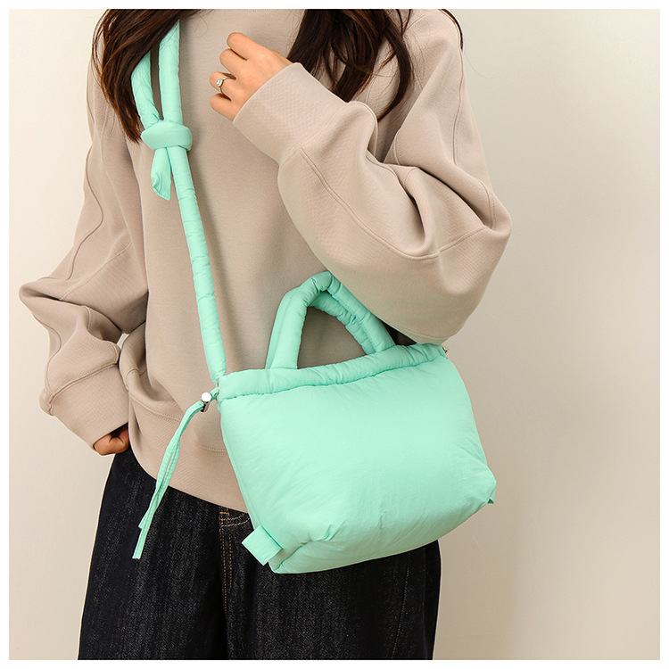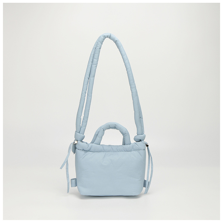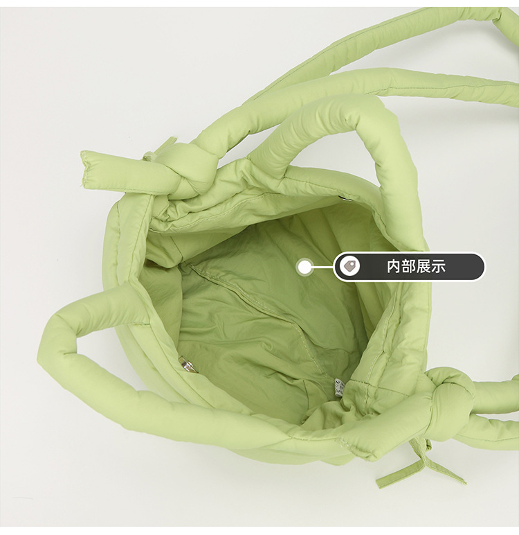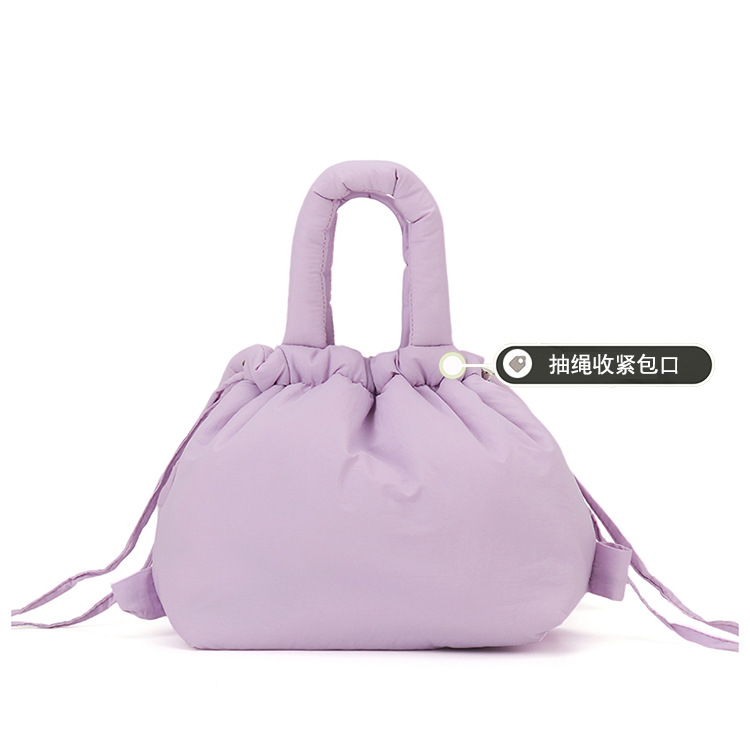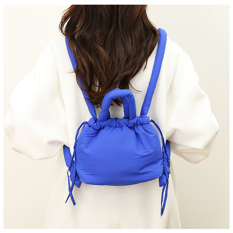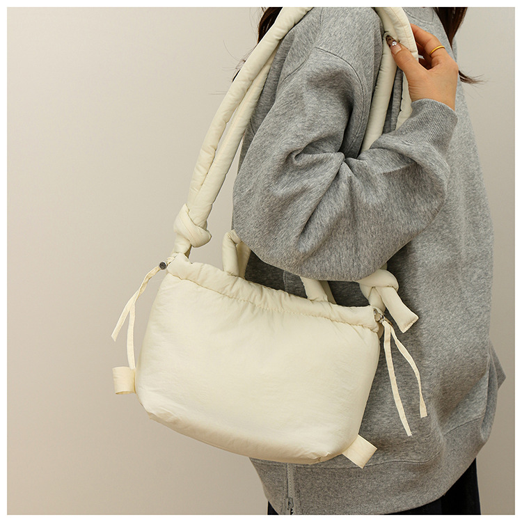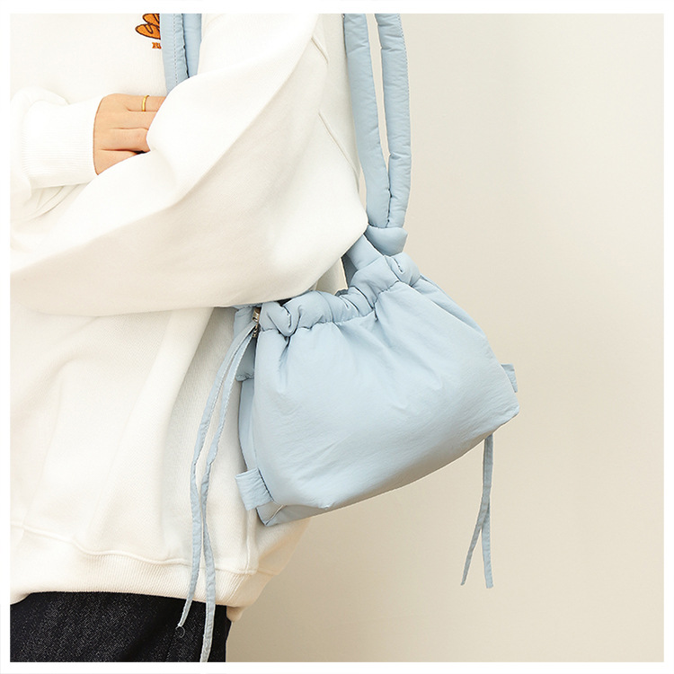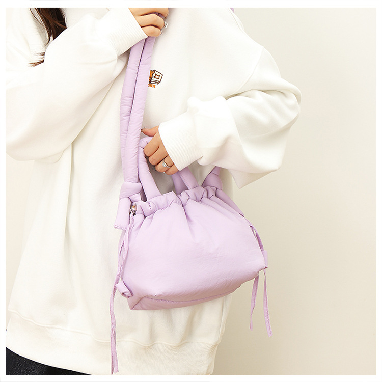 대용량 코튼 숄더 크로스 바디 백 2024 가을과 겨울 새로운 여성의 경량 드로우 스트링 베벨 휴대용 버킷 백 멀티 사용