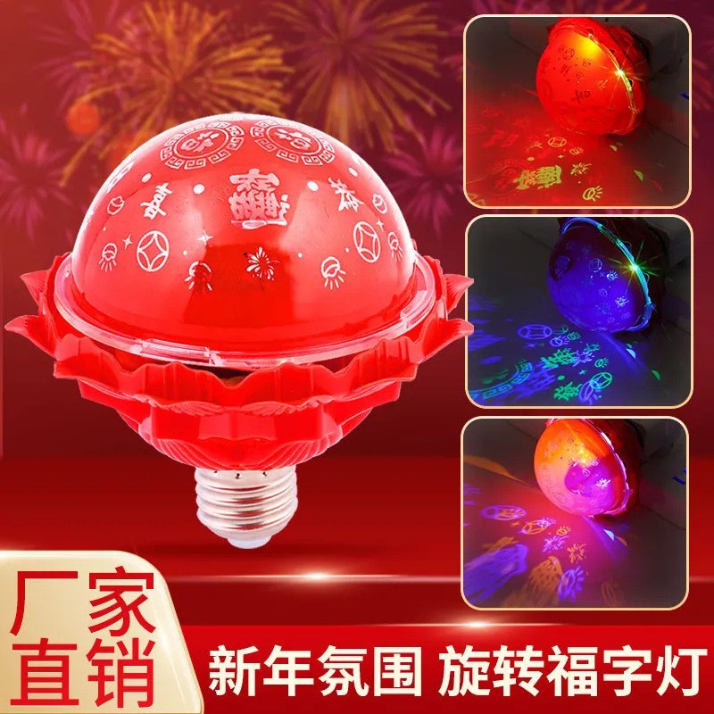 봄 축제 다채로운 자동 회전 변색 조명, 실내 복자(福)문자 전구, 새해 축제 분위기 조명, 인터넷 인기 장식 조명