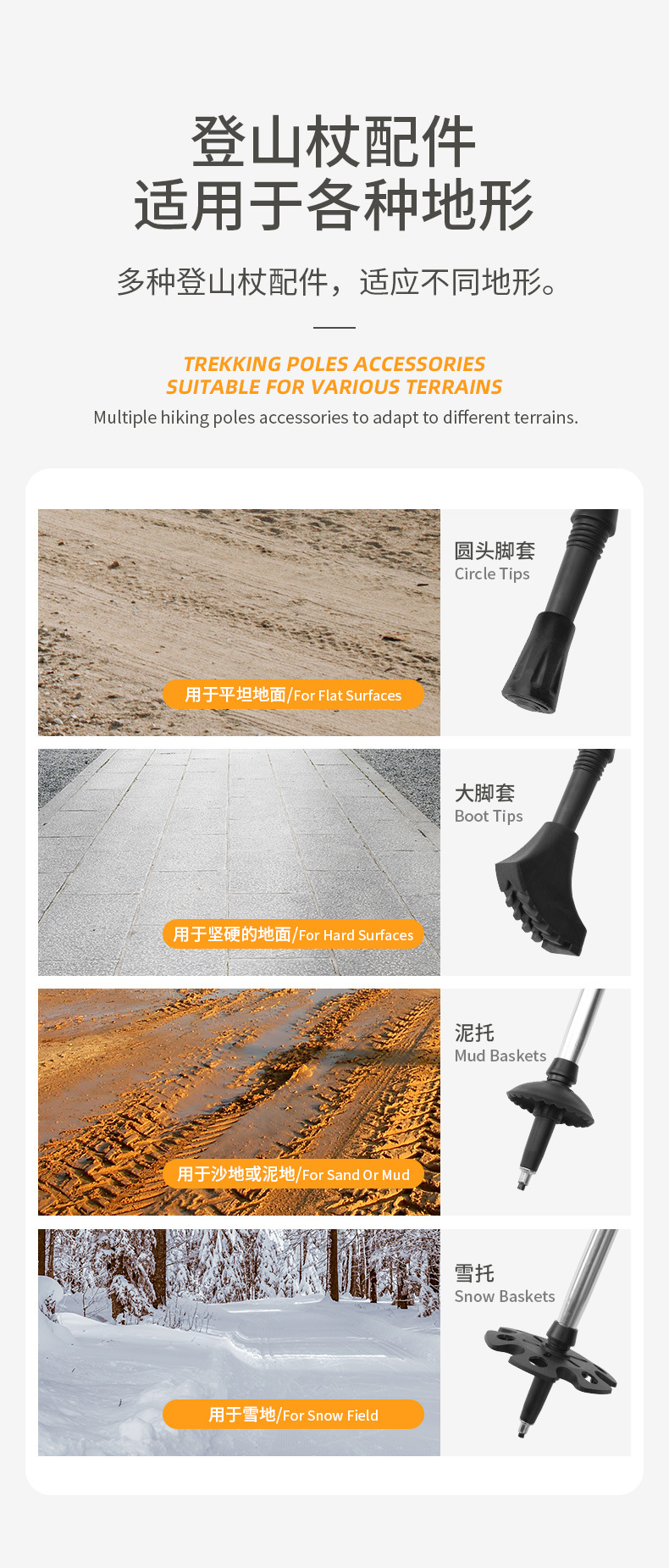 • 둥근 발가락 및 발 커버 - 트레킹 폴 액세서리