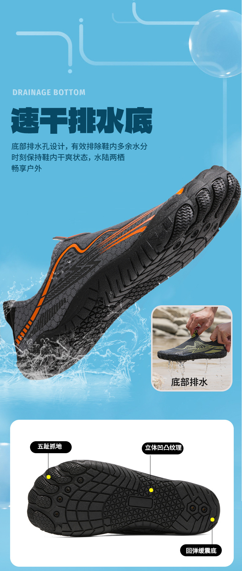 새로운 야외 추적 비치 신발 여성의 미끄럼 방지 빠른 건조 수영화 남성 낚시 다섯 손가락 적신 신발 실내 피트니스 신발