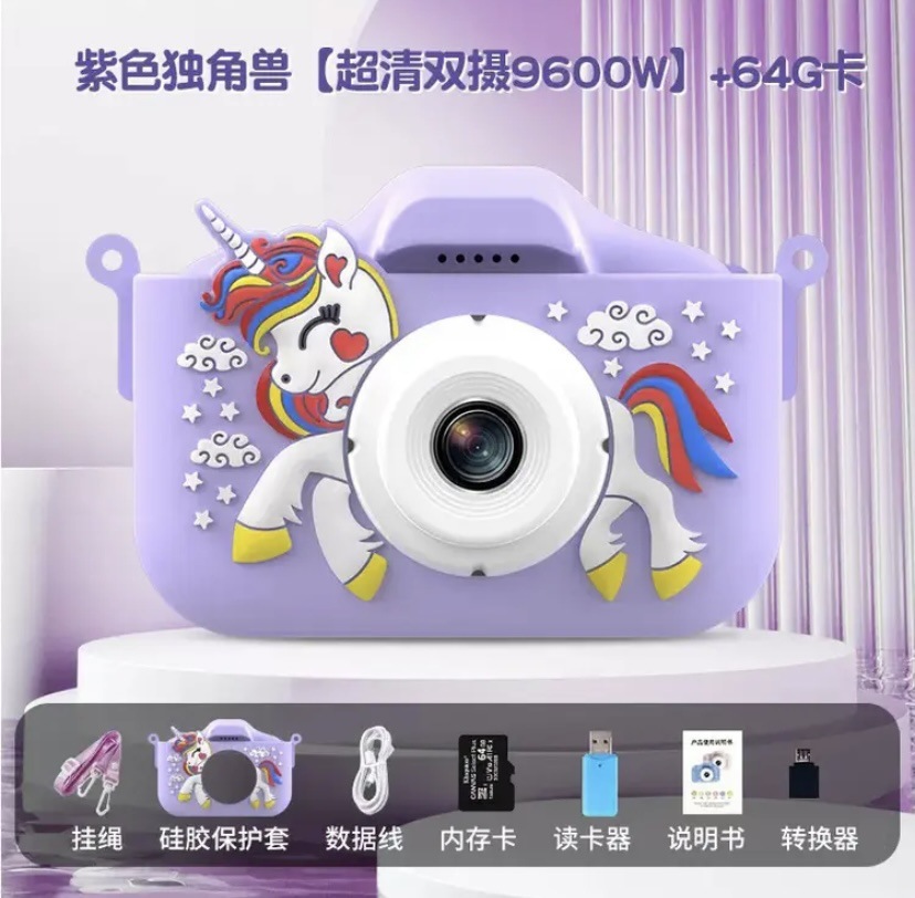 • (유니콘 핑크) HD 듀얼 카메라 9600W+64G 메모리 카드