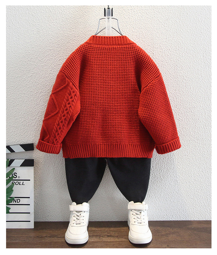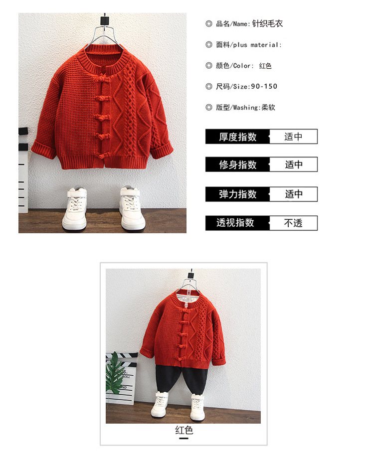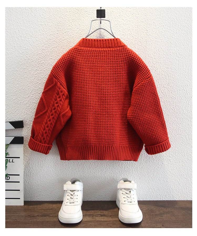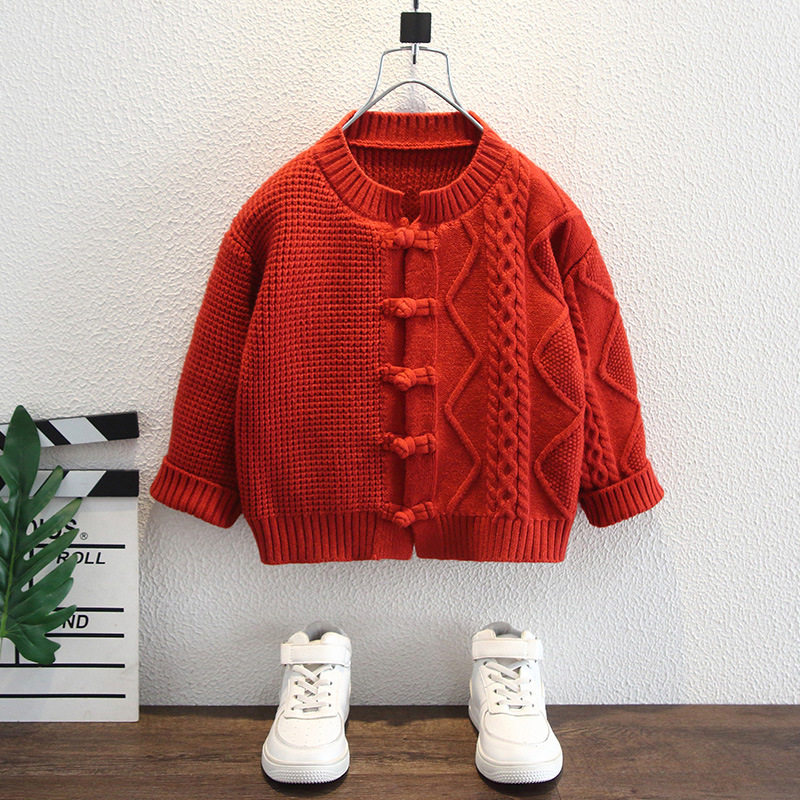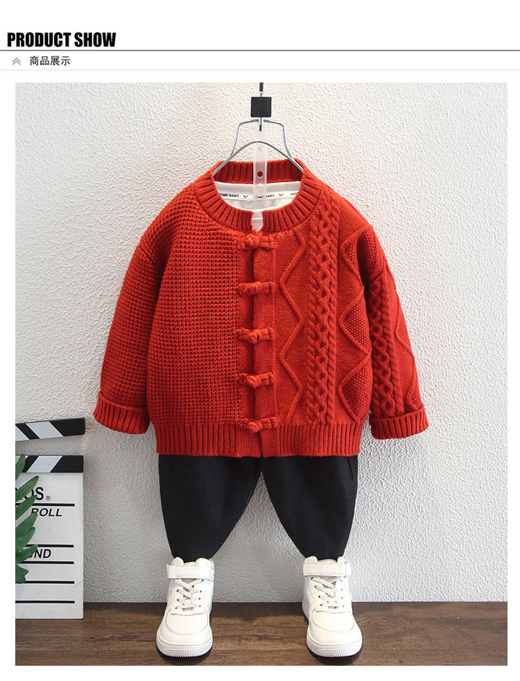 빨간 스웨터 카디건 소년 2024 가을과 겨울 새로운 서양 스타일 아기 니트 스웨터 아이들의 두꺼운 따뜻한 재킷 트렌디스토어 가기