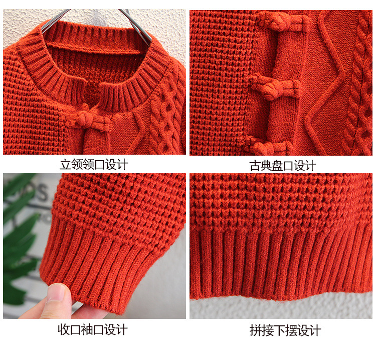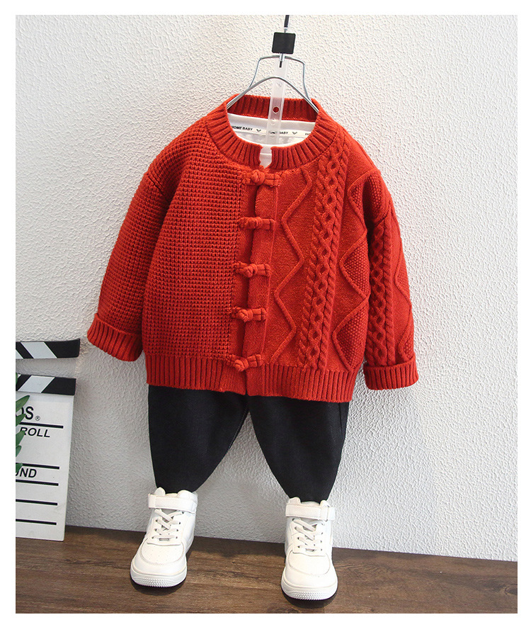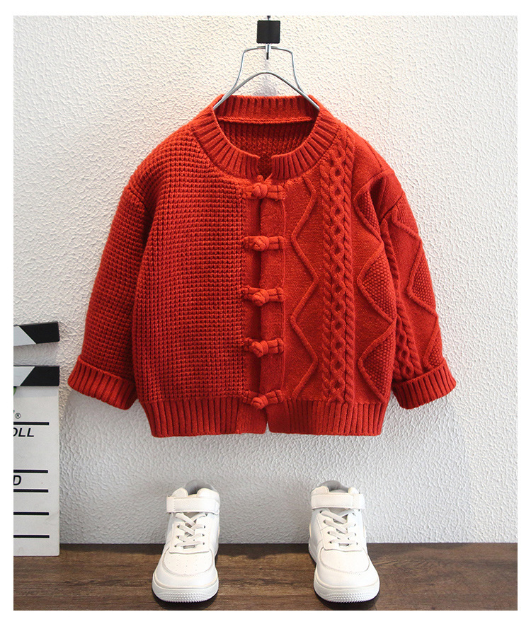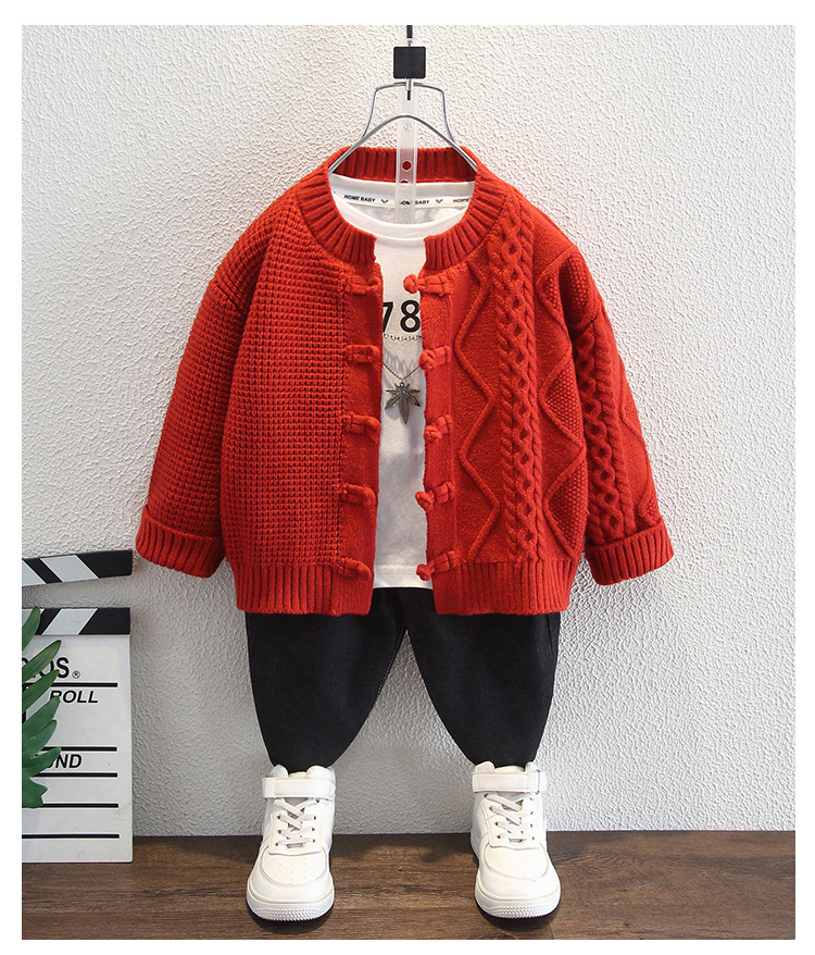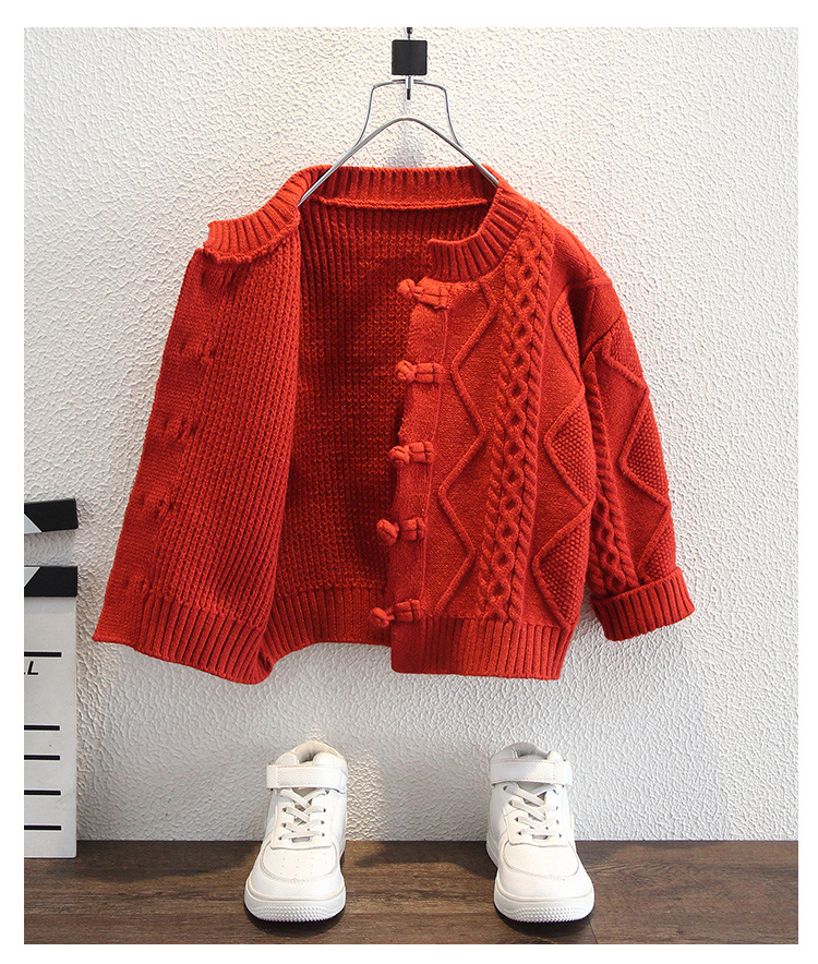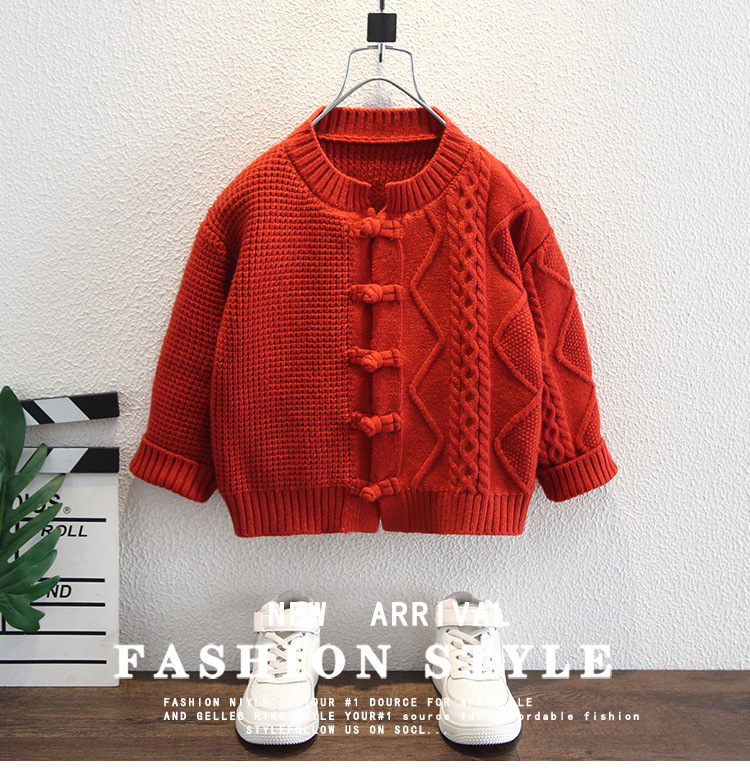 빨간 스웨터 카디건 소년 2024 가을과 겨울 새로운 서양 스타일 아기 니트 스웨터 아이들의 두꺼운 따뜻한 재킷 트렌디스토어 가기