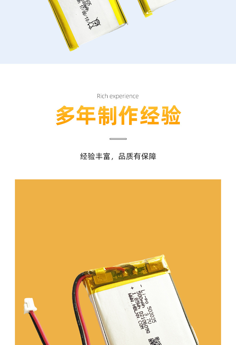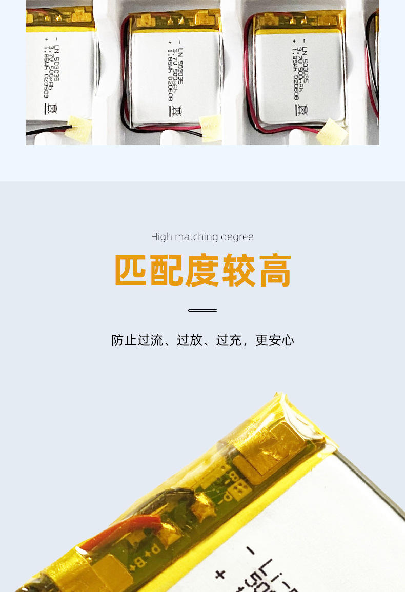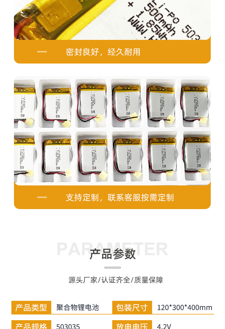 msds un38.3 인증 고온 방지 3.7V 폴리머 리튬 배터리 702530 500mah 야간 조명 수분 공급 장치