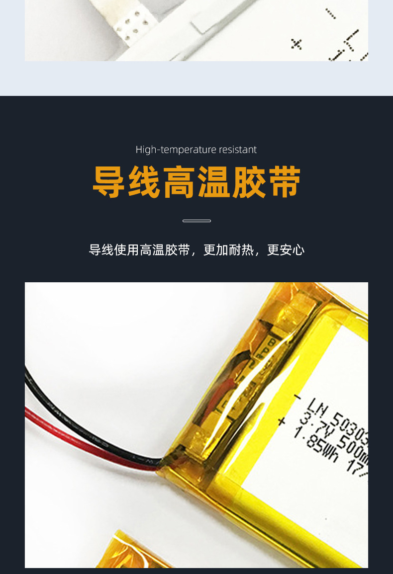 msds un38.3 인증 고온 방지 3.7V 폴리머 리튬 배터리 702530 500mah 야간 조명 수분 공급 장치스토어 가기