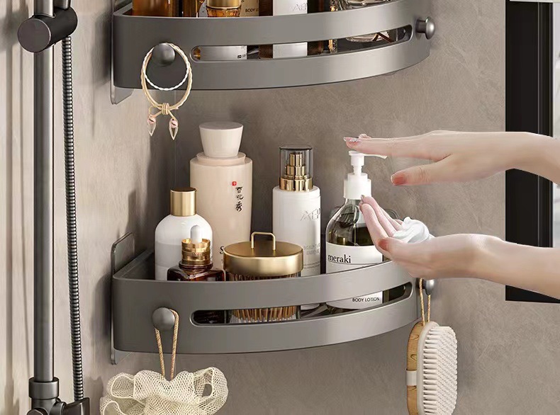 • 회색 3단 욕실 선반 [무료 나사 스티커]