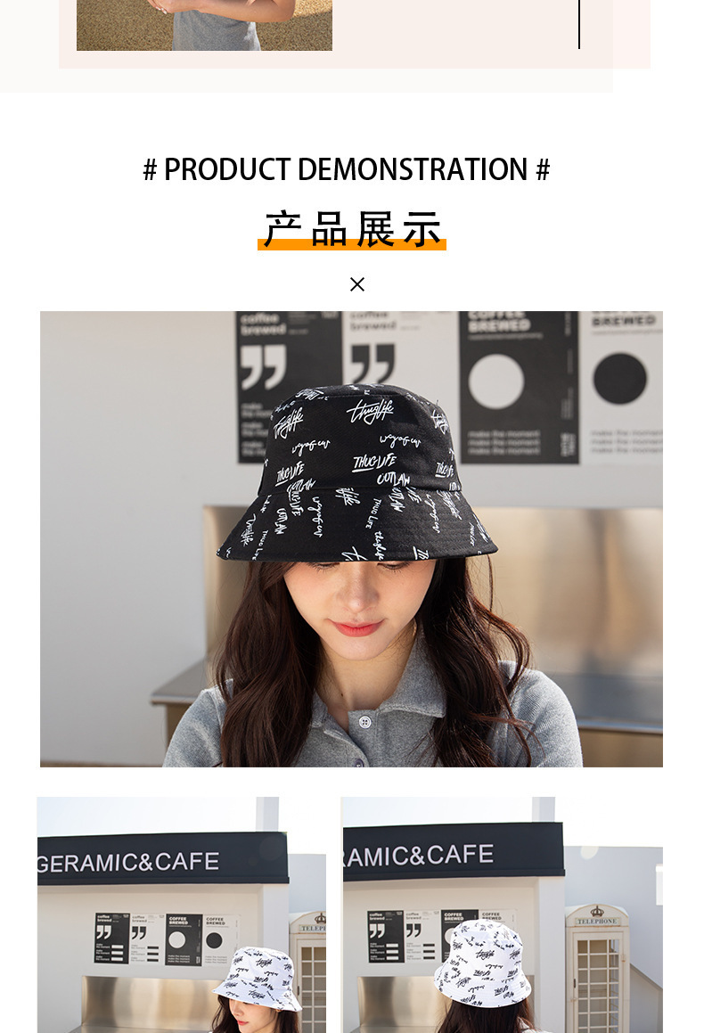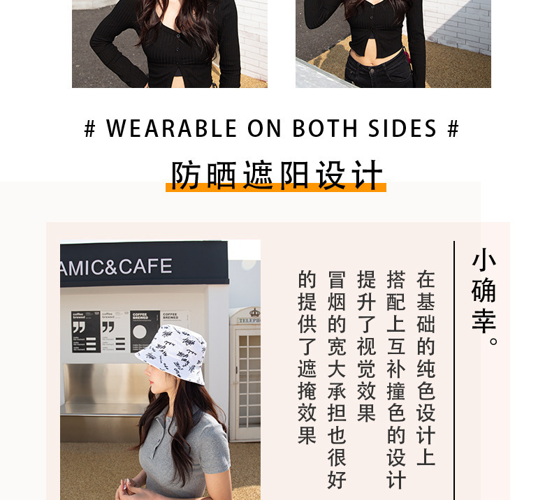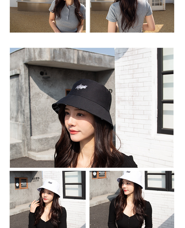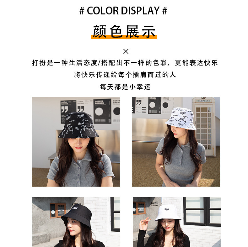 양면 어부 모자 한국 문자 차양 쇼 작은 얼굴 일반 모자 여성의 일본 캐주얼 조커 분지 모자 남성 도매스토어 가기