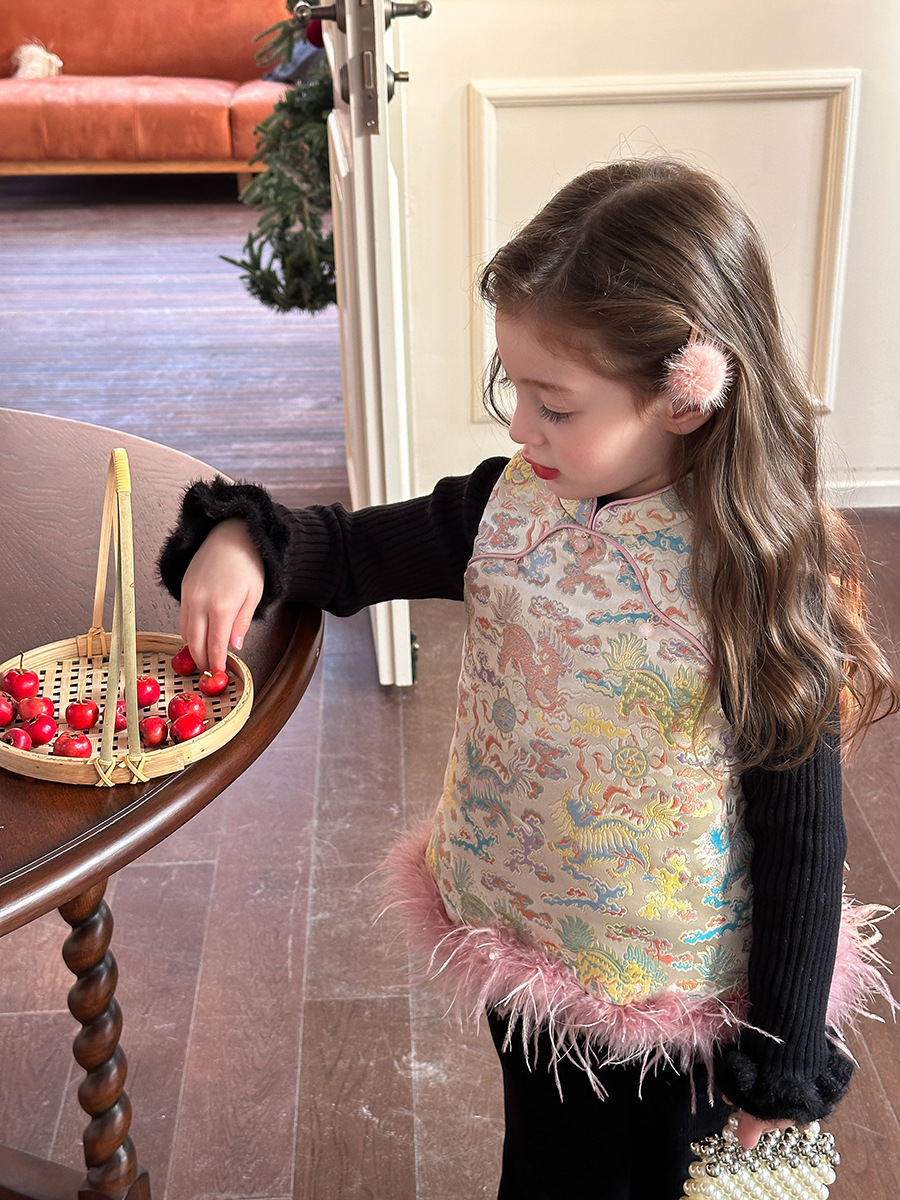 이모 베이 베이 이동식 타조 버 ~ 소녀 신년 서비스 새로운 중국 자카드 실버 실크 퀼트 조끼