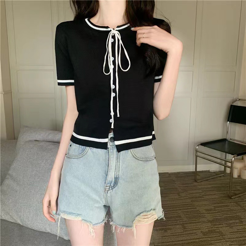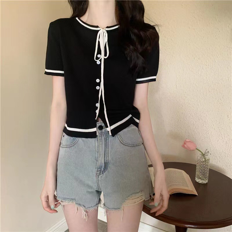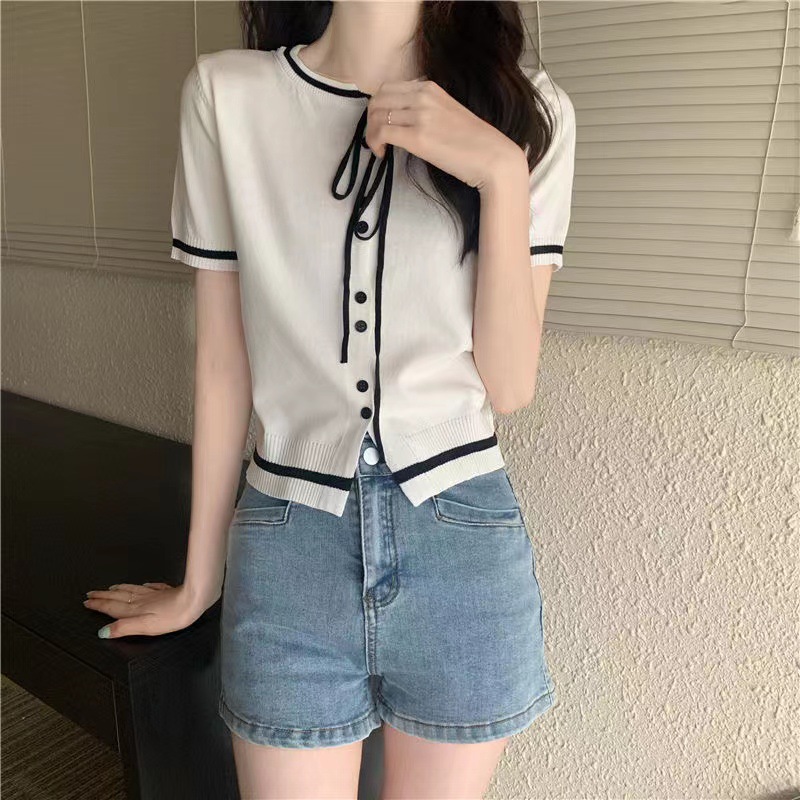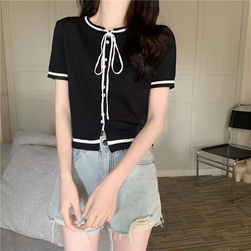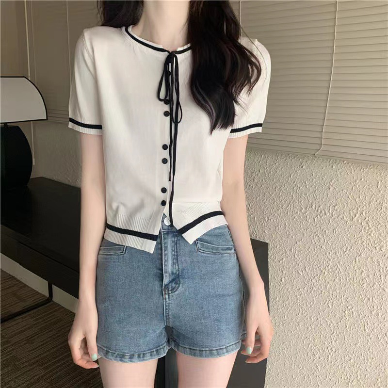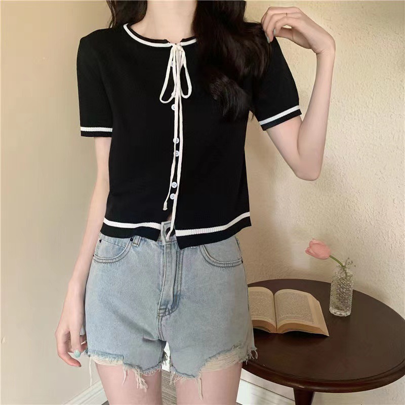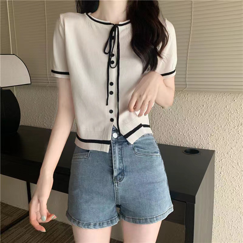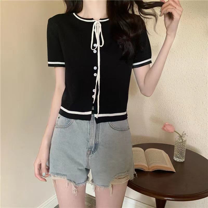 국경 간 동남아시아 여름 디자인 센스 니쉬 라운드 넥 반팔 레드 스웨터 여성의 달콤한 귀여운 탑스토어 가기
