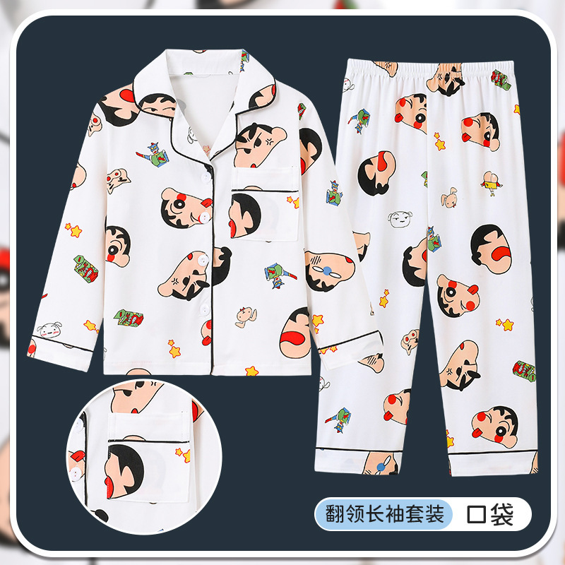소년 잠옷 한 세대 봄과 가을 긴 소매 소녀 옷깃 만화 어린이 세트 잠옷 소년 집 옷