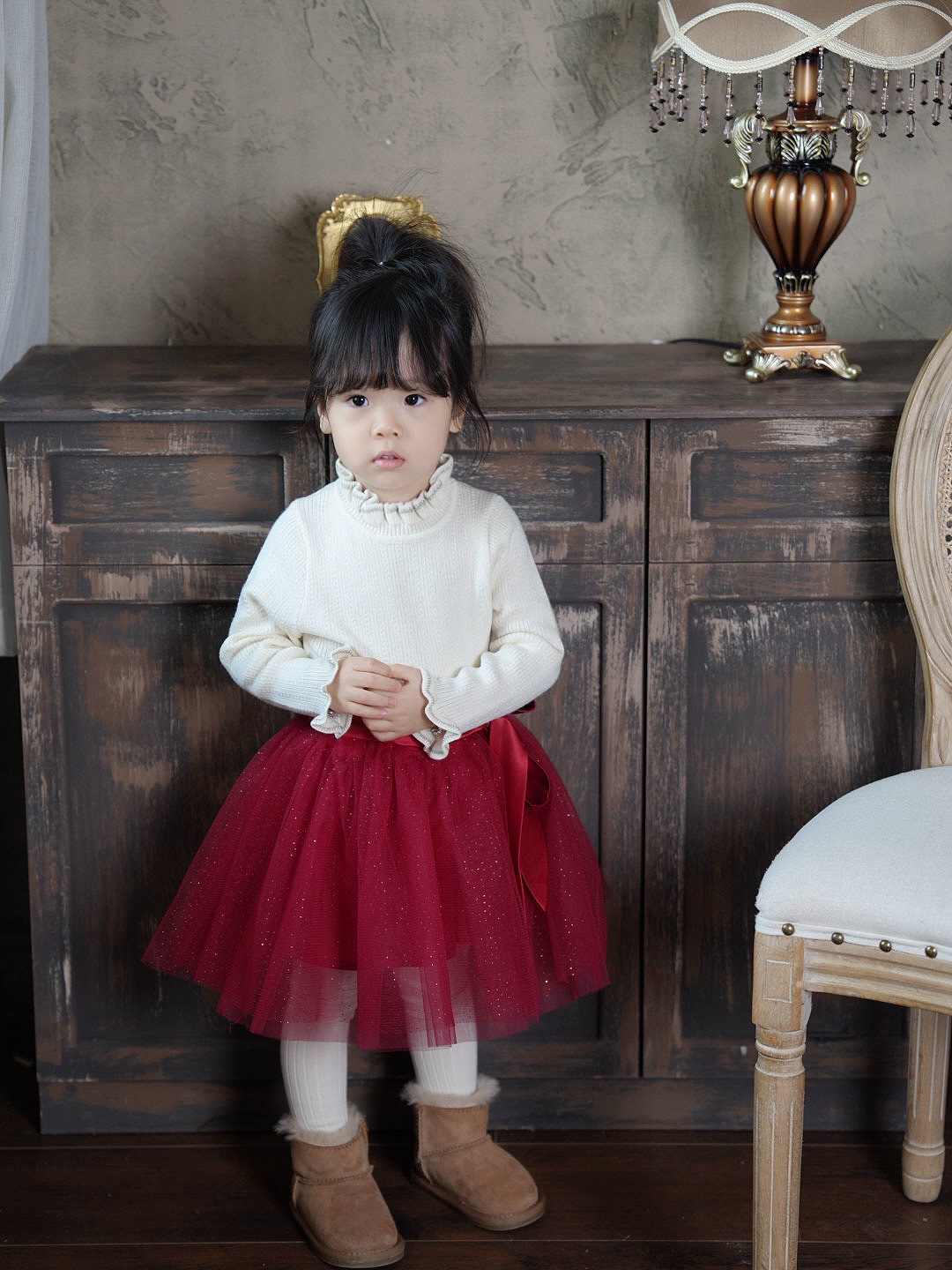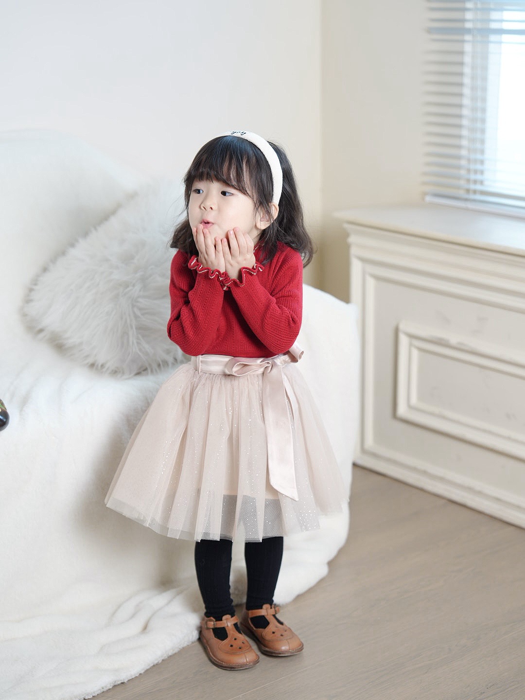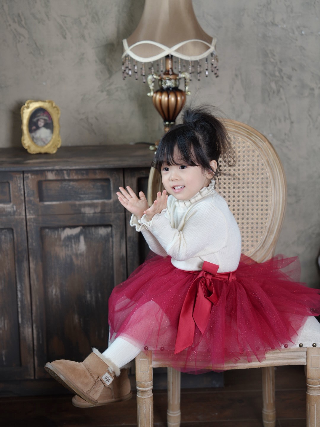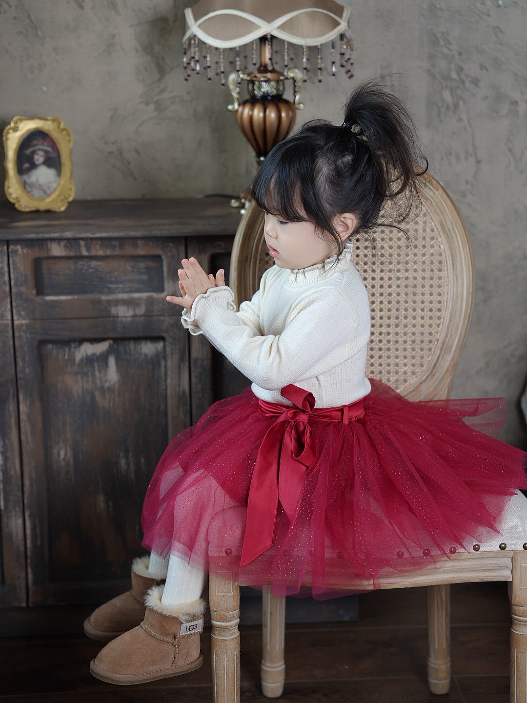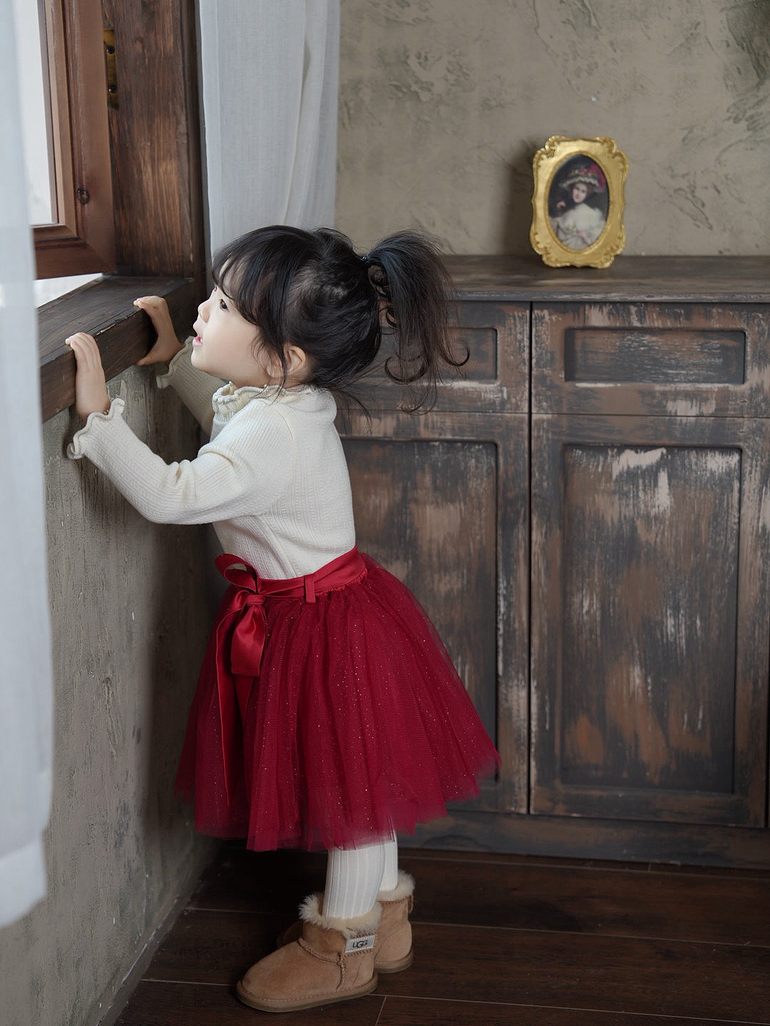 여아용 새해 드레스, 반바지형 스커트, 빨간색 짧은 스커트, 반짝이는 메쉬 스커트, 3겹 공주 드레스스토어 가기