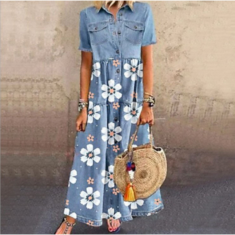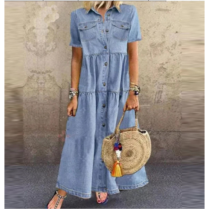 아마존 국경 간 유럽과 미국 빠른 판매 유럽 독립 역 데님 바람 긴 멀티 버튼 오래된 원피스