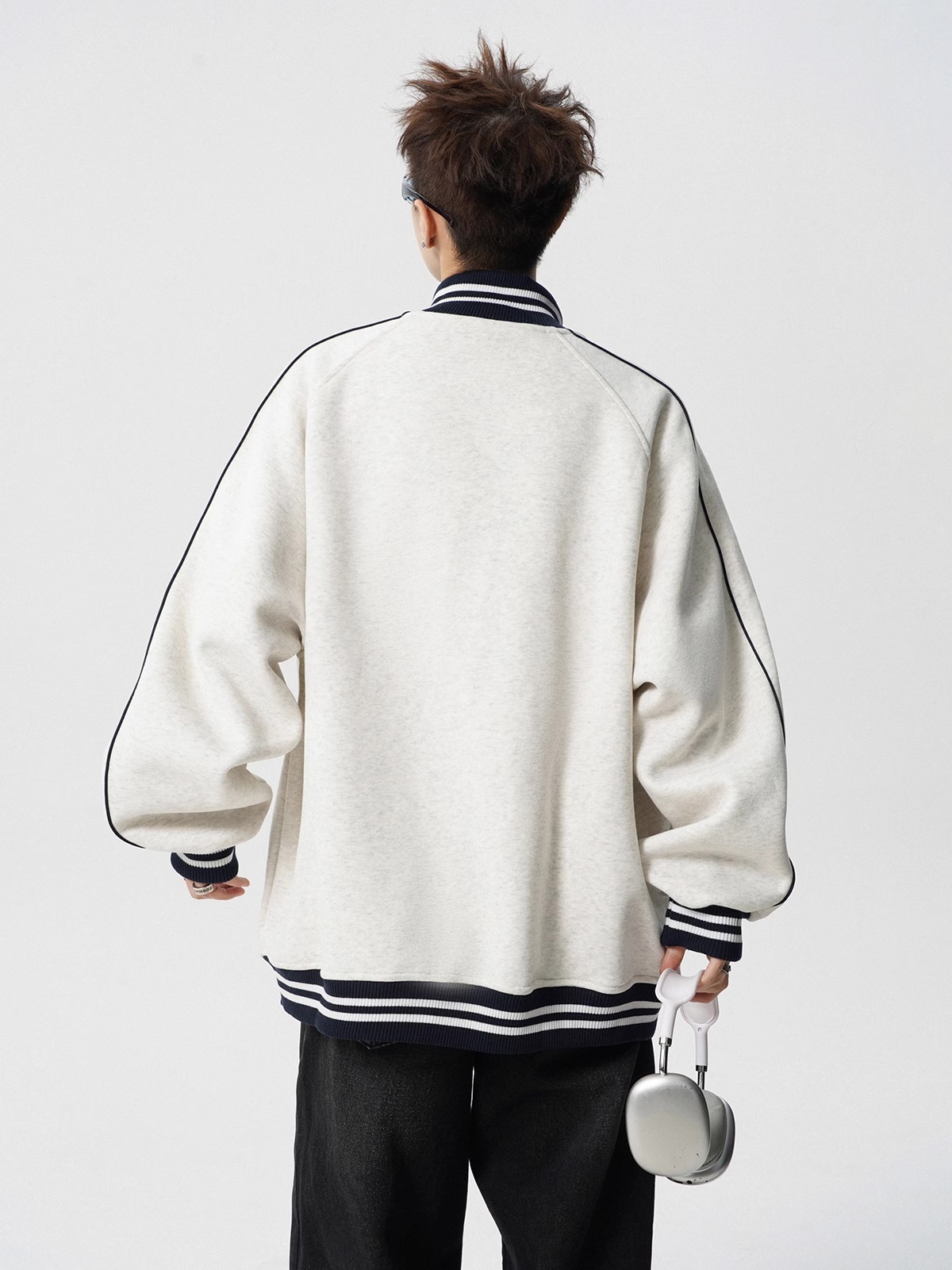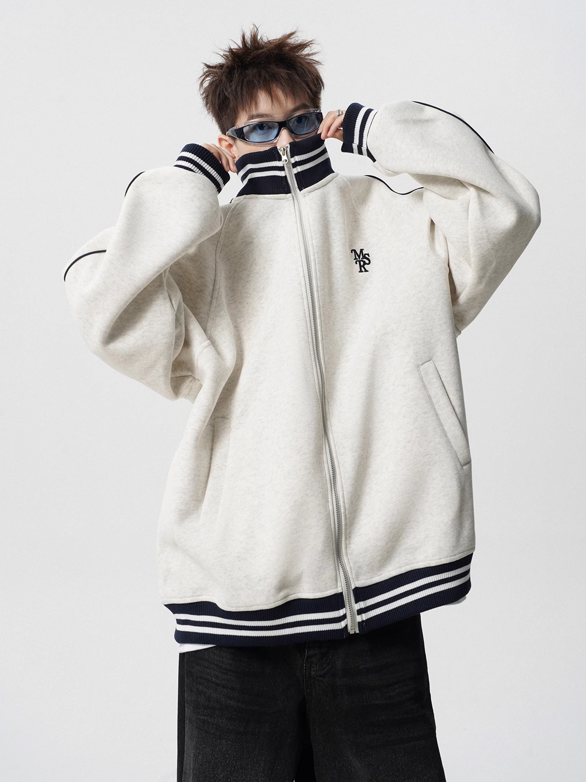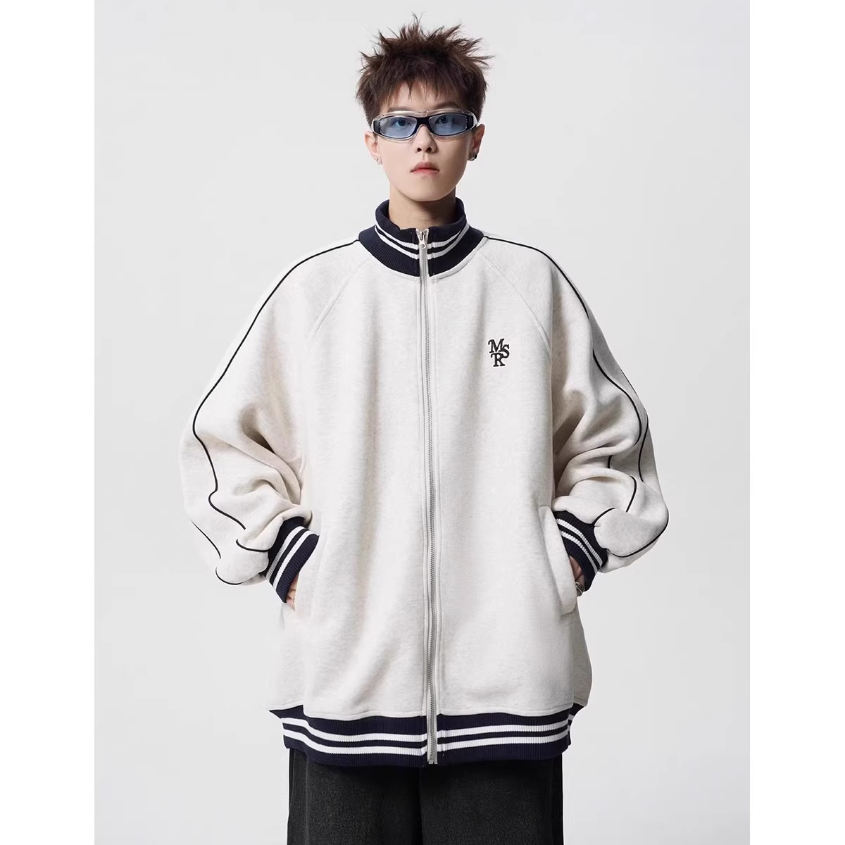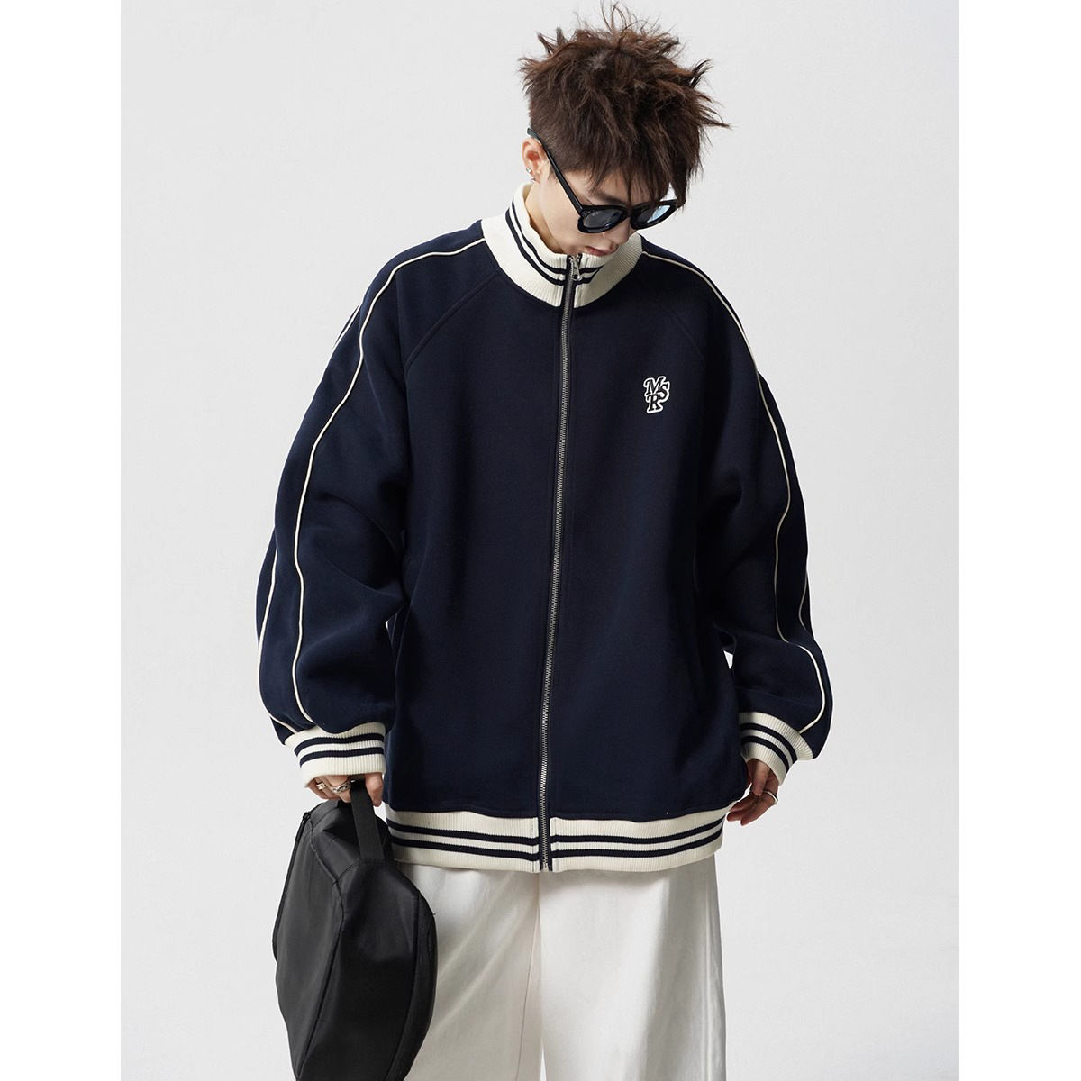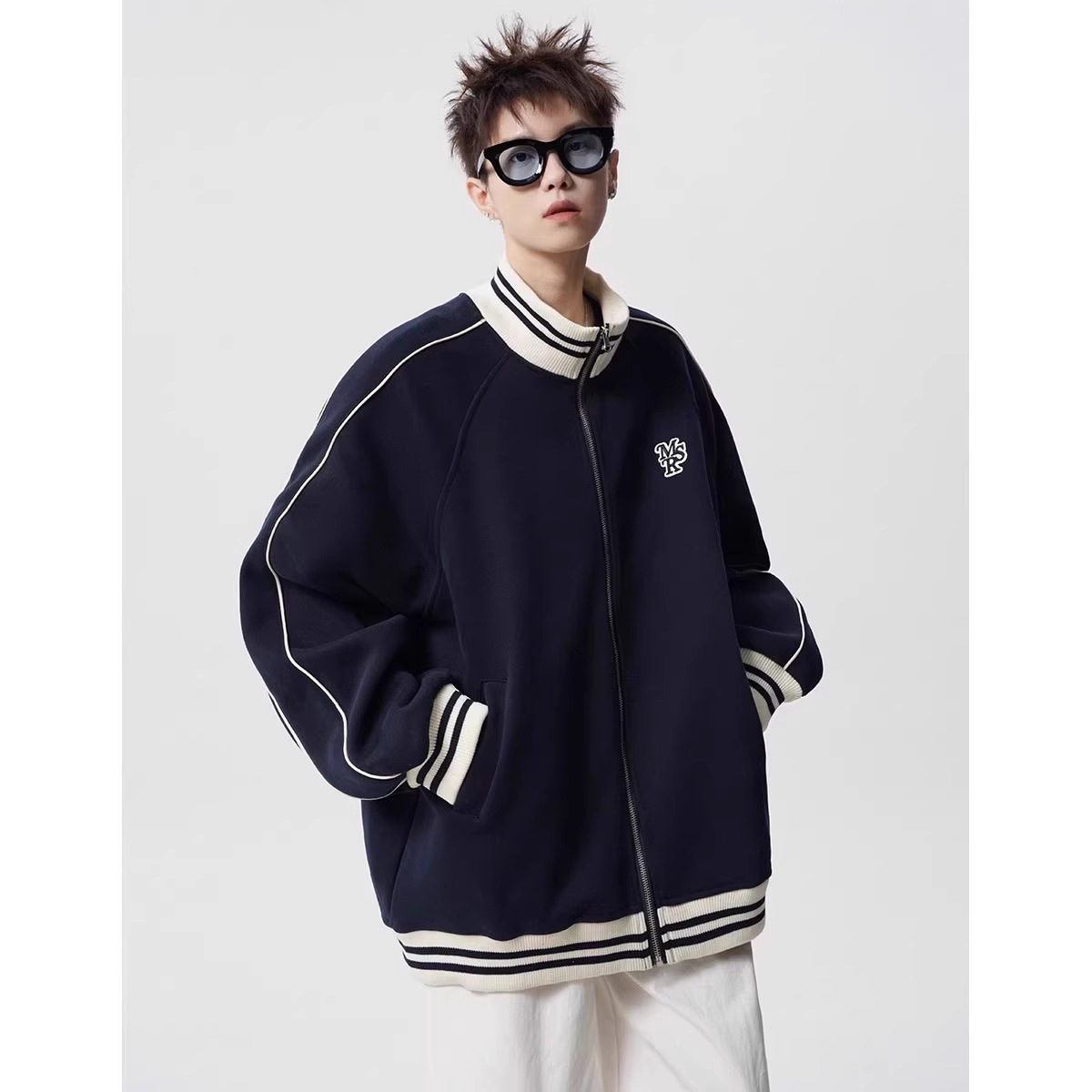 아메리칸 스타일 헤비 스트라이프 재킷 남자 겨울 하이 스트리트 트렌디 브랜드 자수 야구 세트 레트로 대학 스타일 기모 커플 재킷스토어 가기
