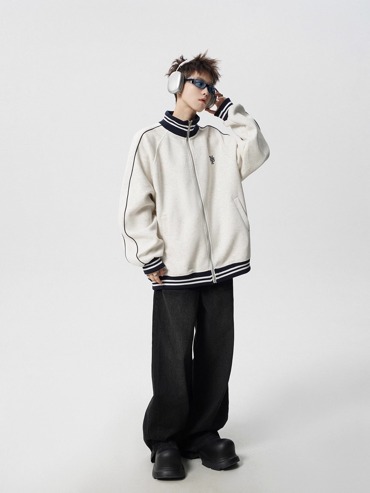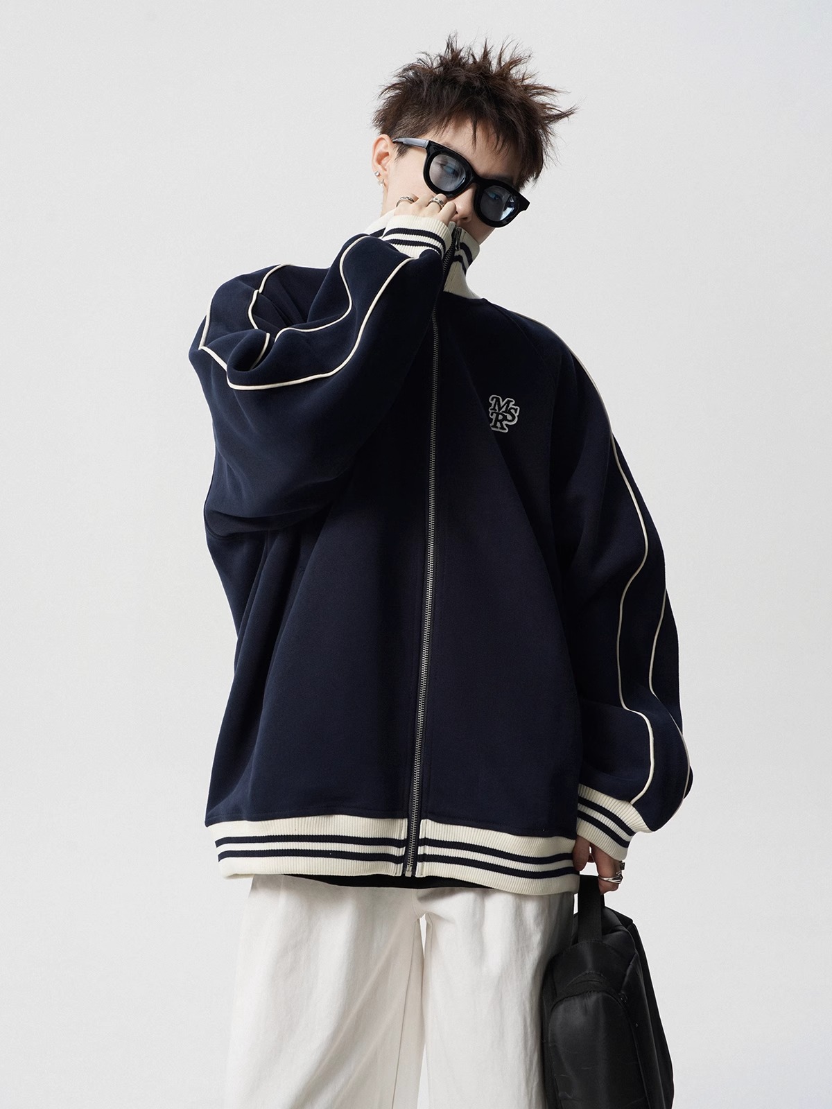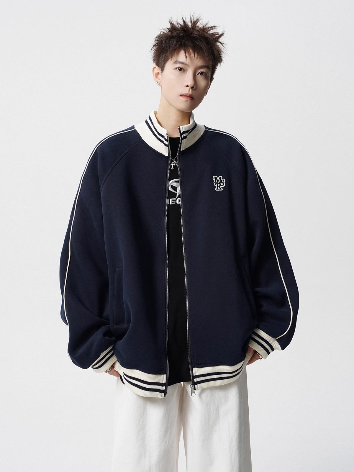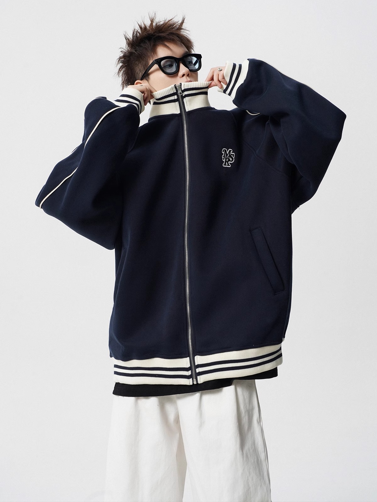 아메리칸 스타일 헤비 스트라이프 재킷 남자 겨울 하이 스트리트 트렌디 브랜드 자수 야구 세트 레트로 대학 스타일 기모 커플 재킷스토어 가기