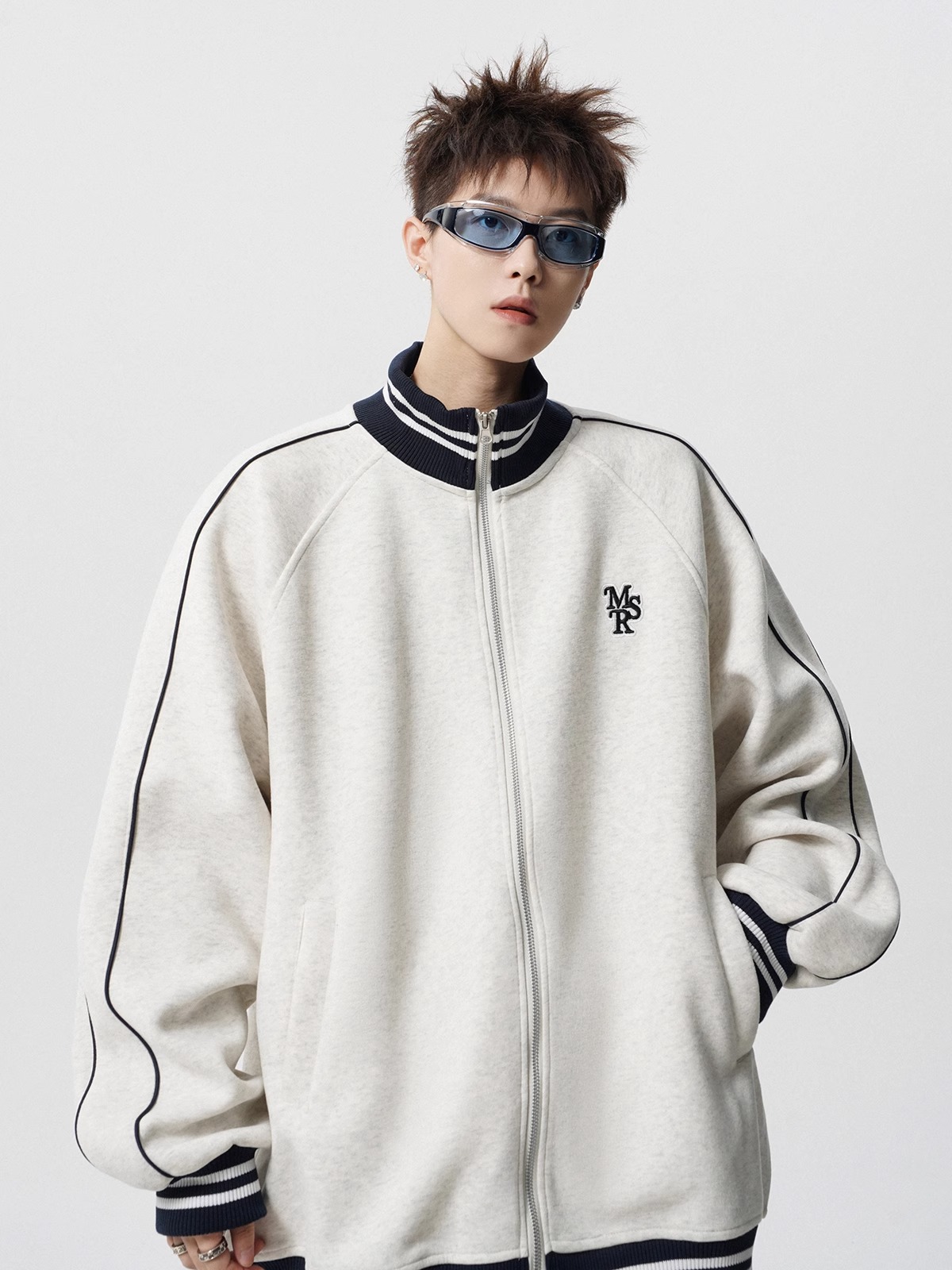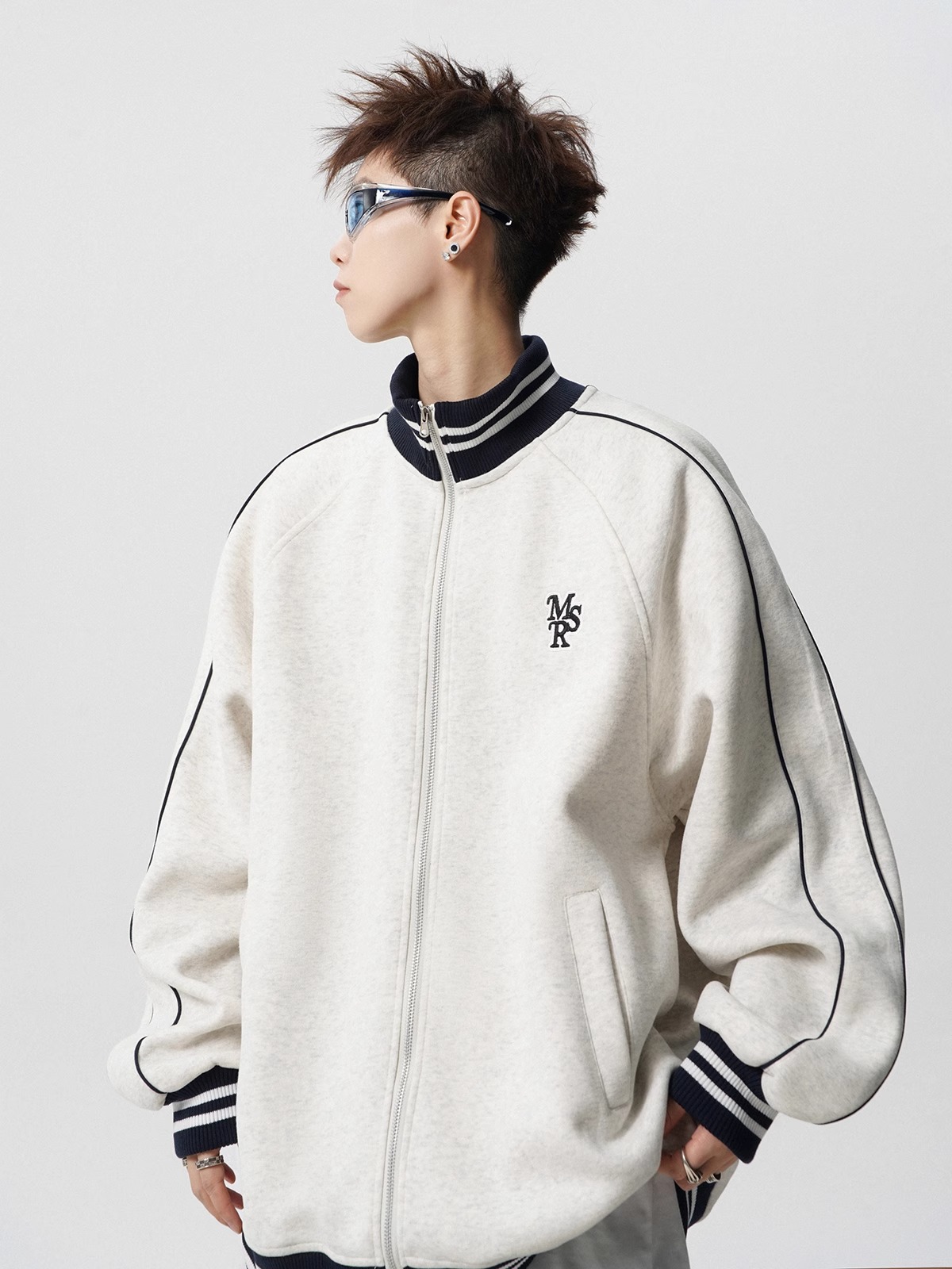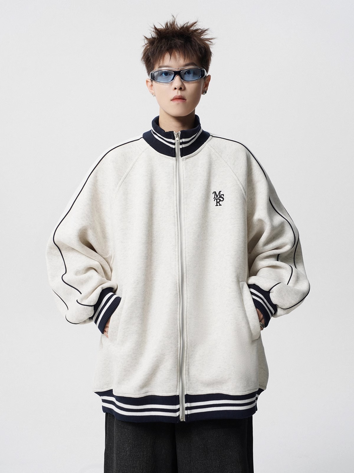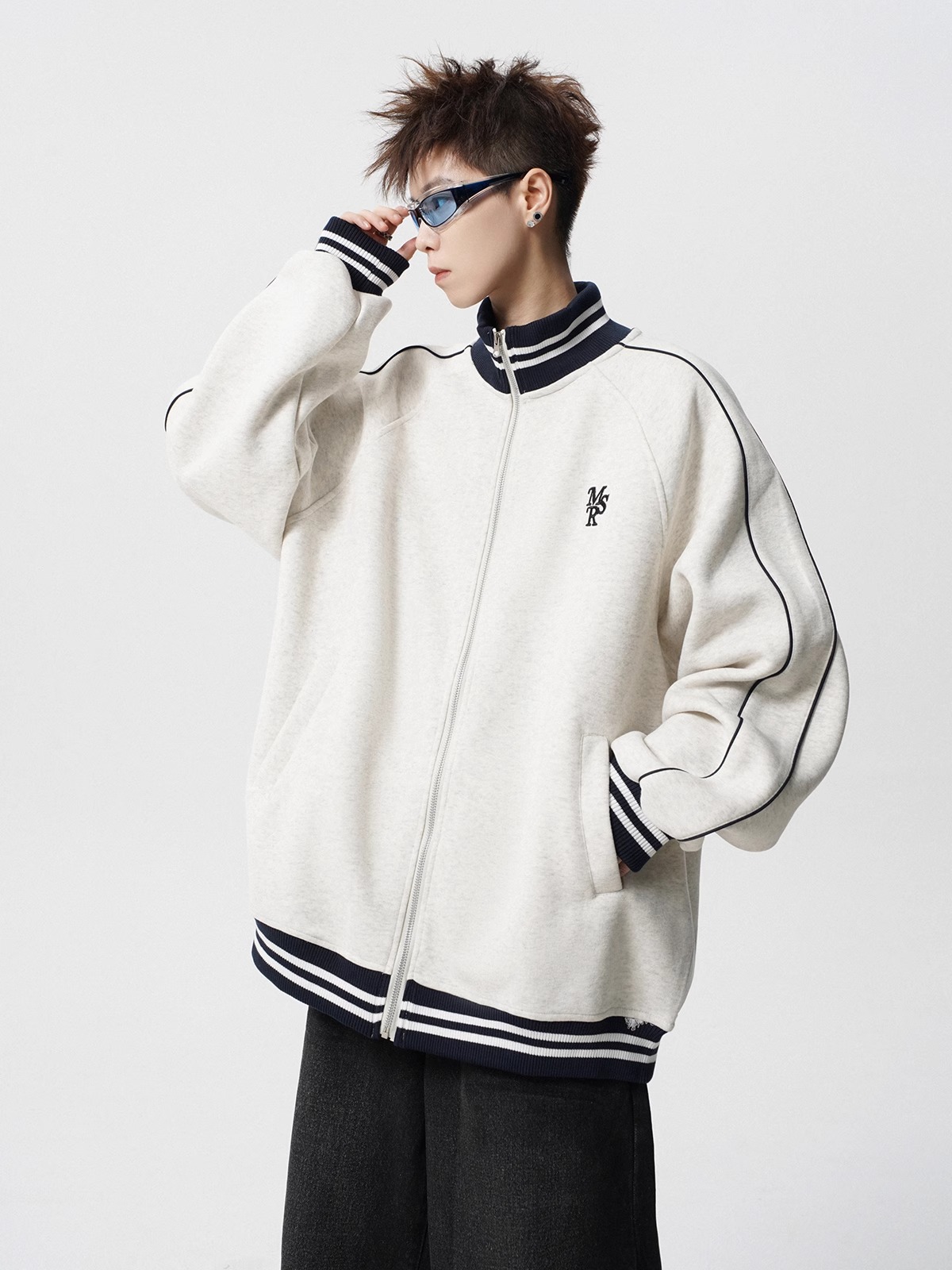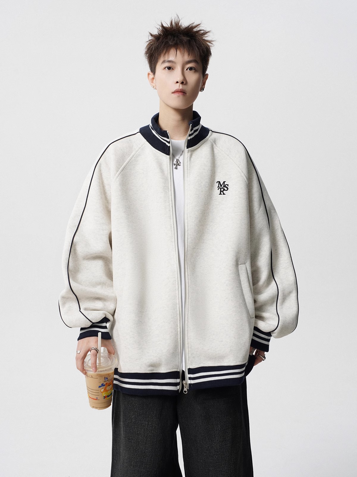 아메리칸 스타일 헤비 스트라이프 재킷 남자 겨울 하이 스트리트 트렌디 브랜드 자수 야구 세트 레트로 대학 스타일 기모 커플 재킷스토어 가기