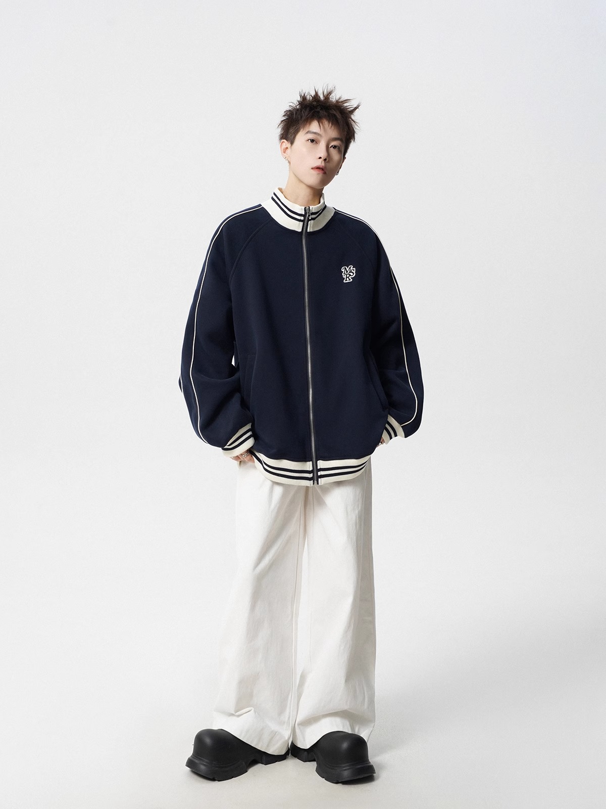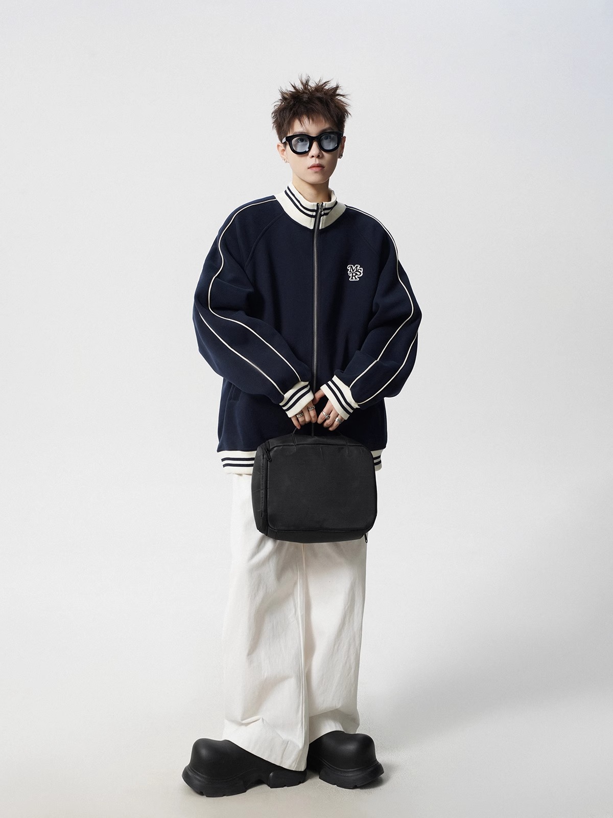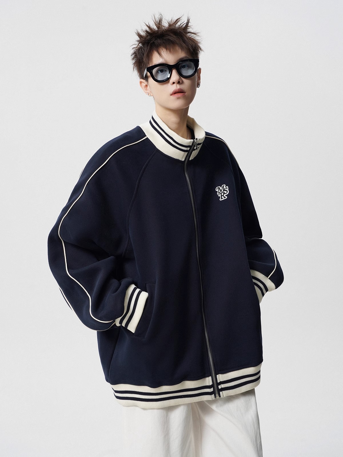 • 네이비 블루(벨벳 버전) [중국산 면 짧고 촘촘한 벨벳 자수 스탠드 칼라 재킷]