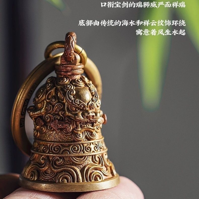 사자 물린 검의 종 | 레트로 스타일의 구리 벨 자동차 키 체인 자동차 펜던트 펜던트 큰 소리로 울리는 궁전 벨