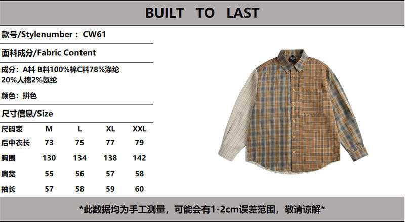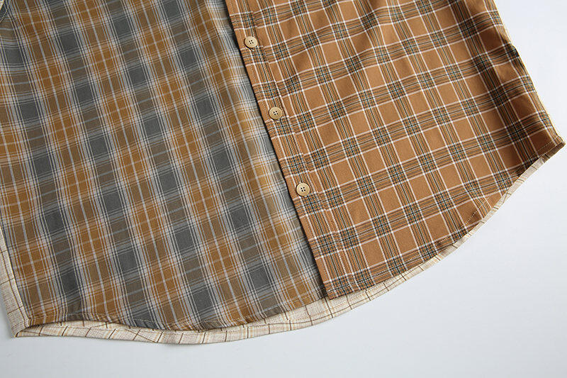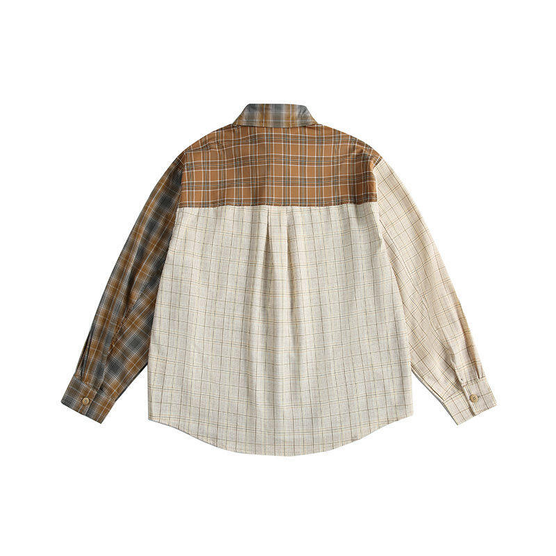 베이지에 남성복 아메리칸 스타일 패션 브랜드 2025 가을 신상 디자인 패치워크 셔츠 남녀공용 긴팔 셔츠