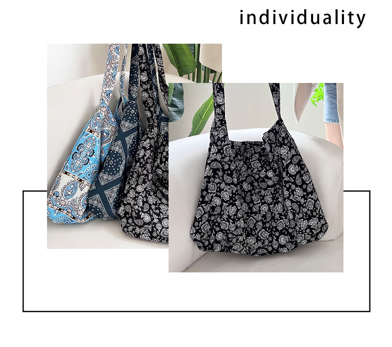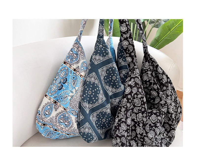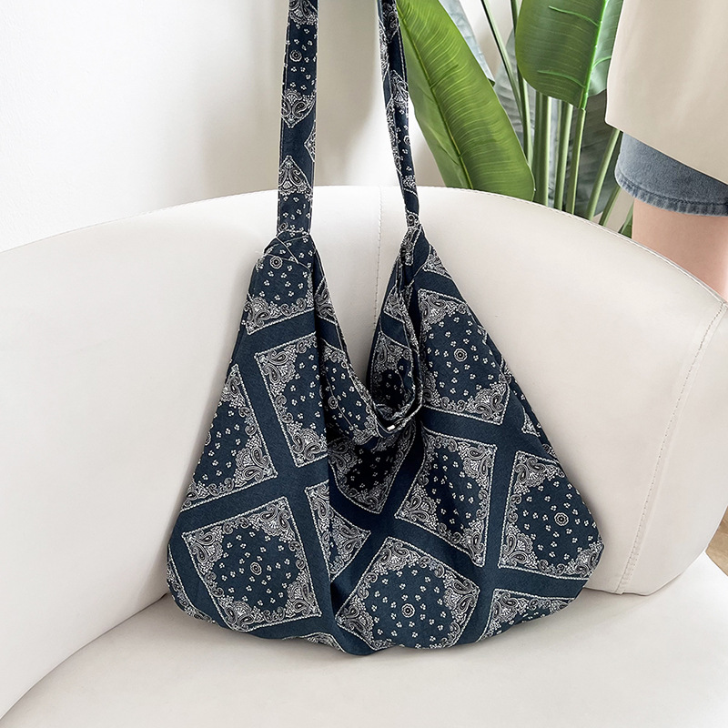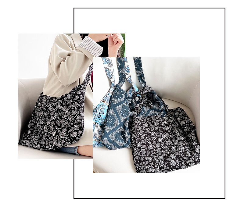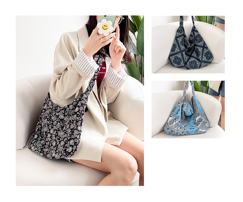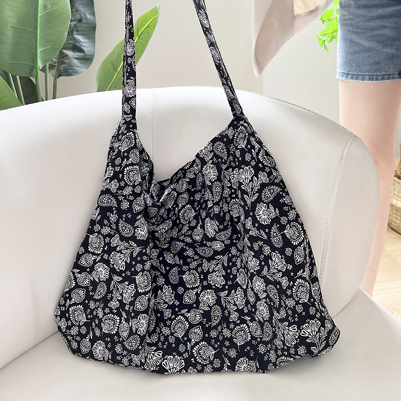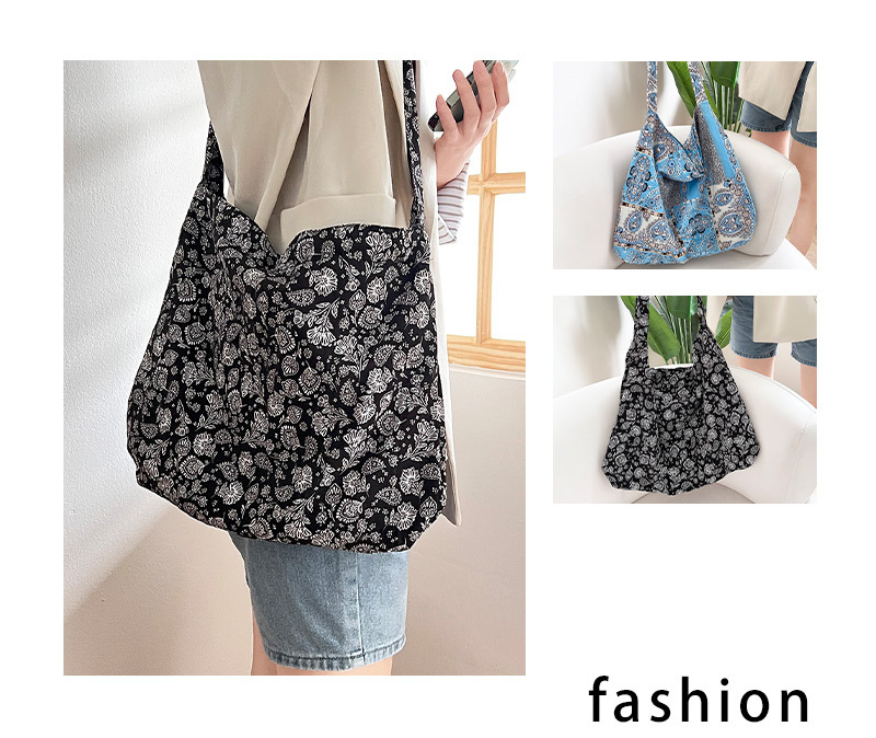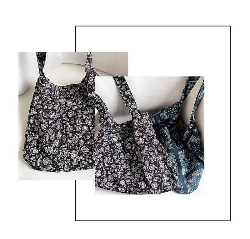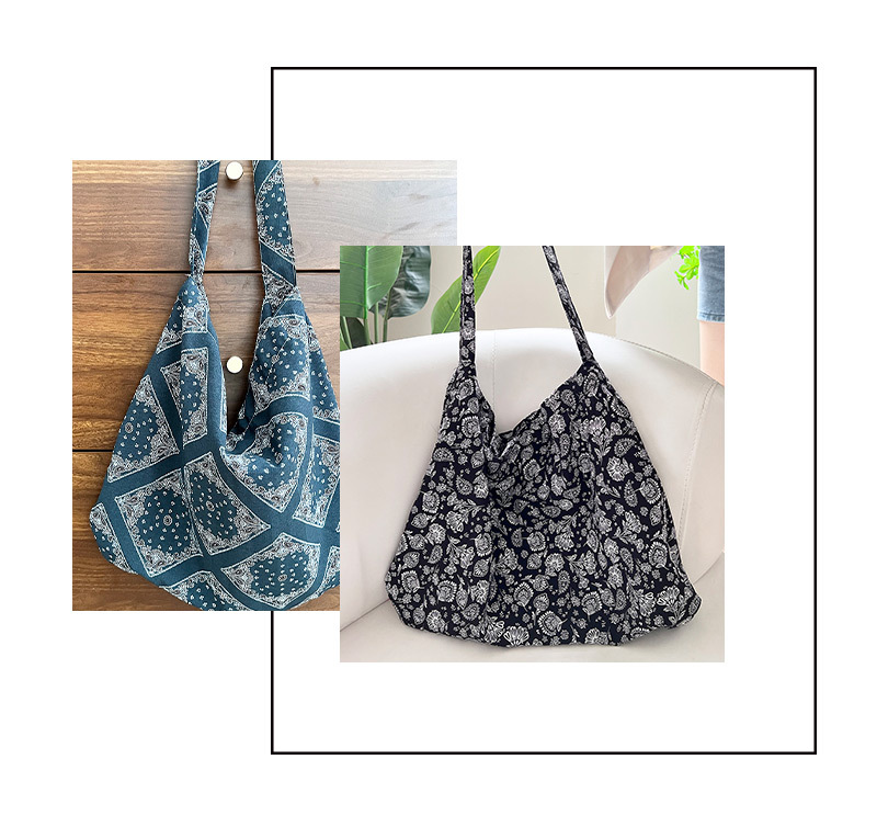 • 네이비 블루 꽃무늬 가방 [자석 버클 포함]