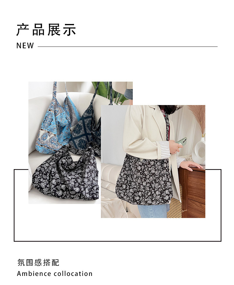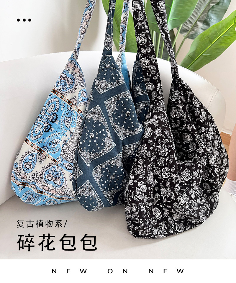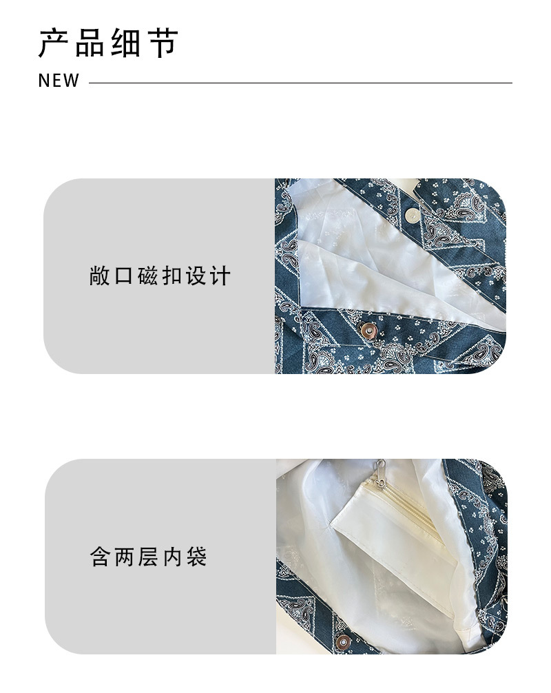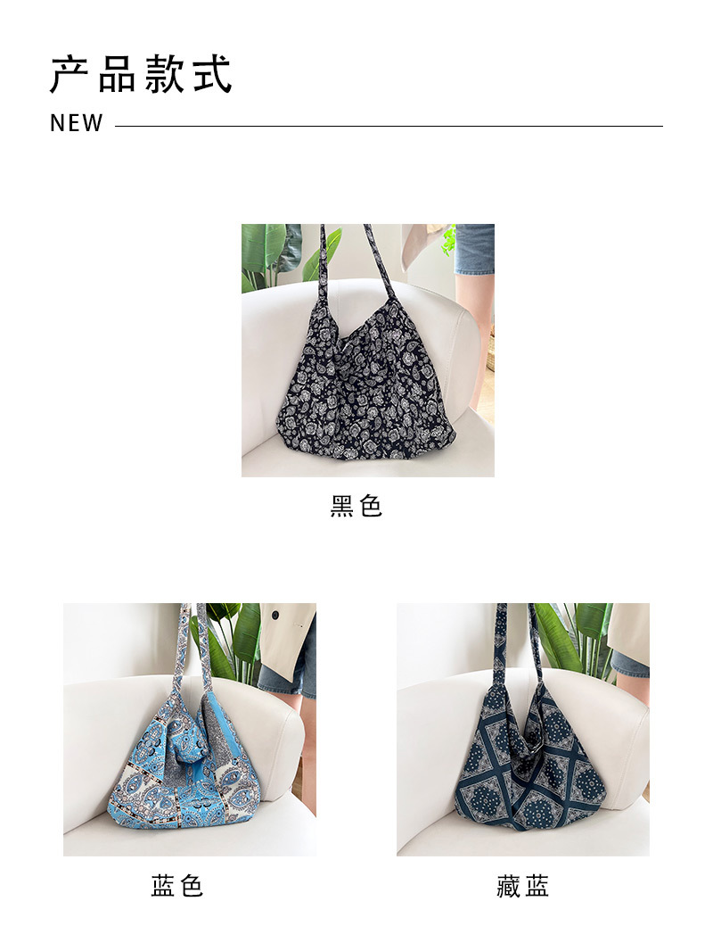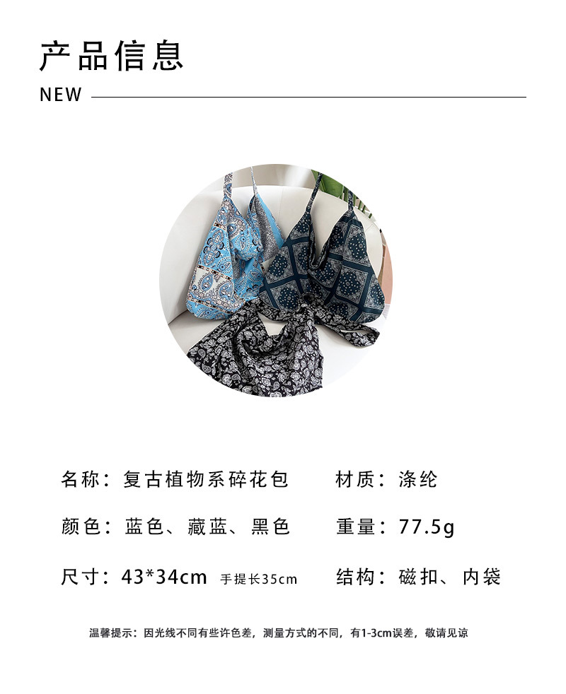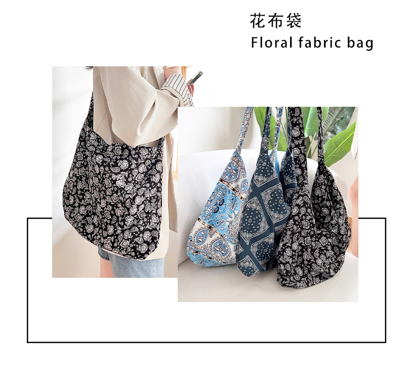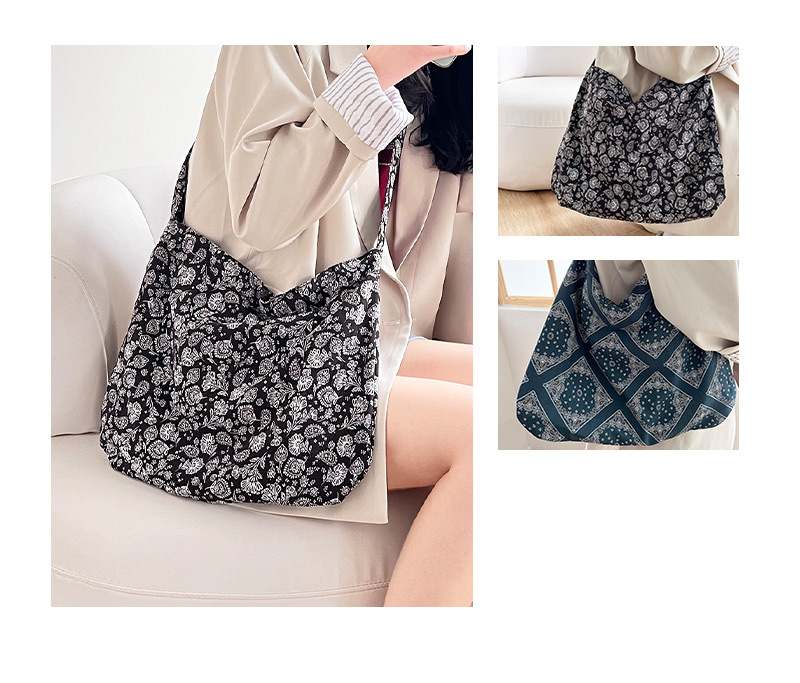 • 네이비 블루 꽃무늬 가방 [자석 버클 포함]