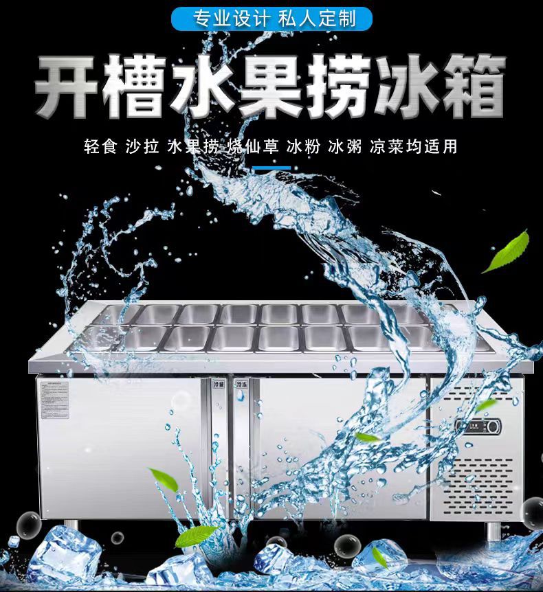 과일 낚시 디스플레이 냉장고 신선한 유지 테이블 작은 요리 냉장고 상업적인 스테인리스 슬롯 샐러드 테이블 샐러드 테이블