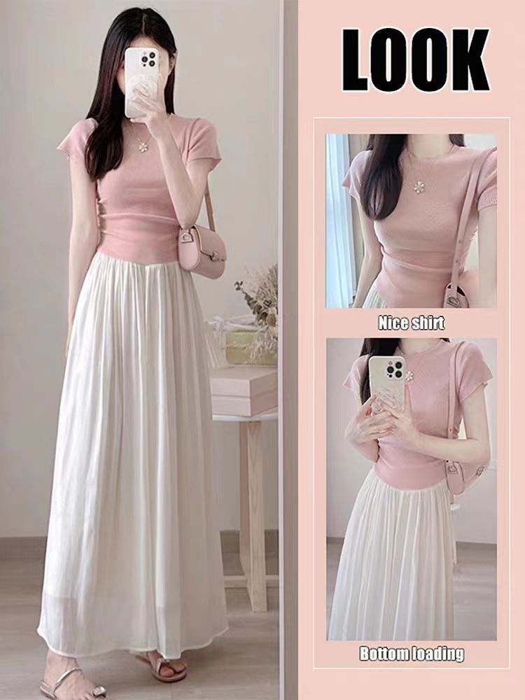 여름 작은 소금 착용 핑크 반팔 최고 치마 우아한 빛 성숙한 샤넬 스타일 여성용 투피스 세트스토어 가기