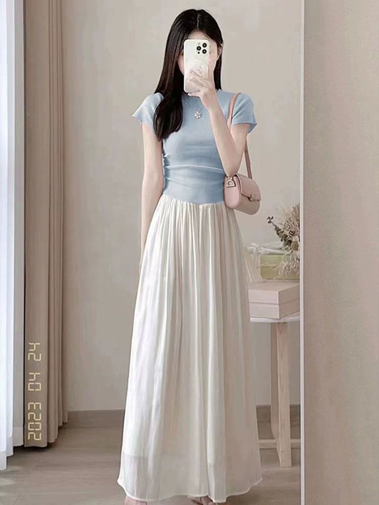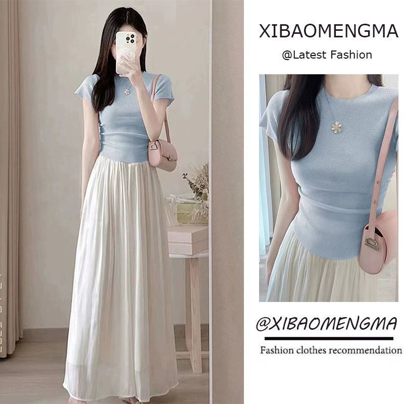 • 파란색 상의 + 흰색 스커트 [슈트]
