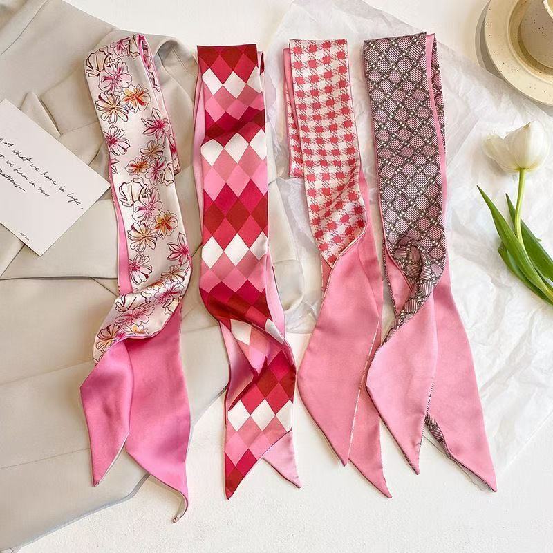베리 핑크 봄과 여름 리본 올 매치 헤어 타이 밴드 리본 헤어 밴드 고급 센스 타이 가방 장식 작은 스카프스토어 가기
