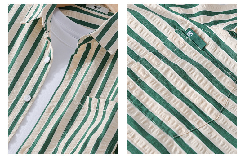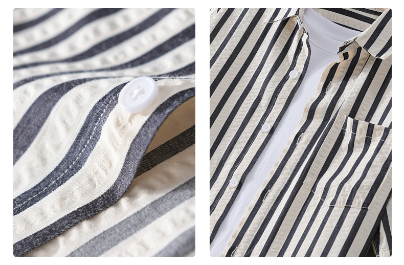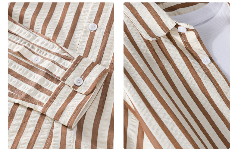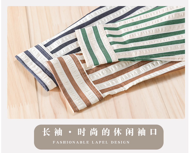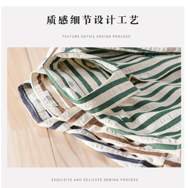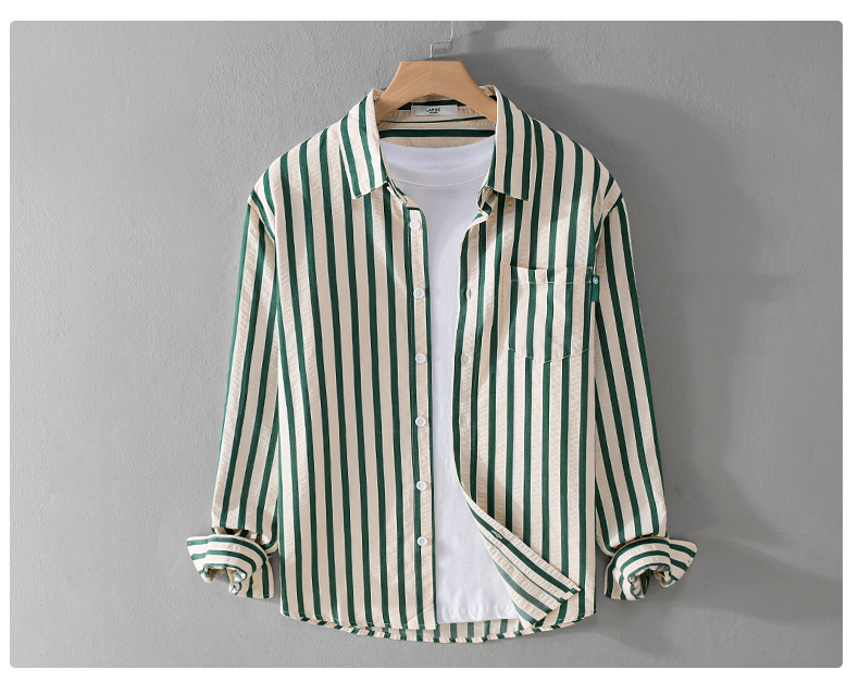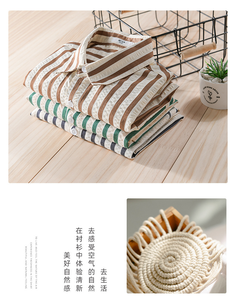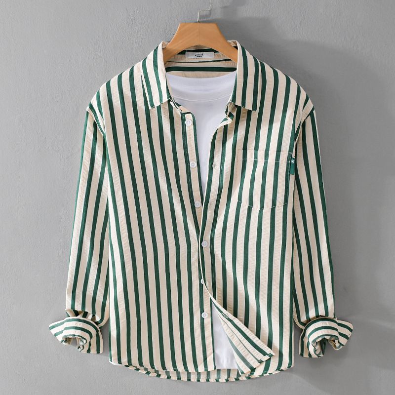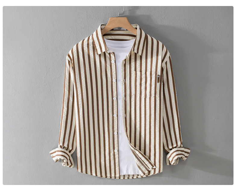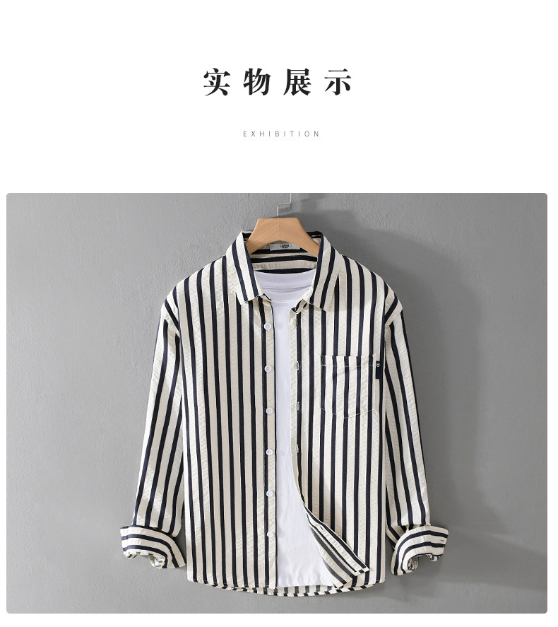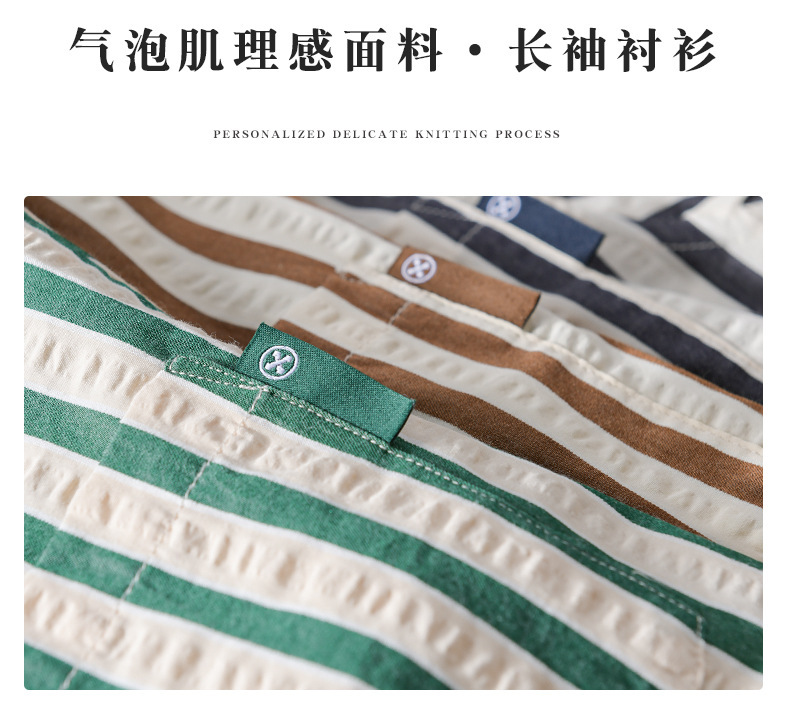 봄과 가을 남자 줄무늬 긴팔 셔츠 유행 거품 짜임새 편안한 모든 경기 간단한 청소년 남자 셔츠 9493