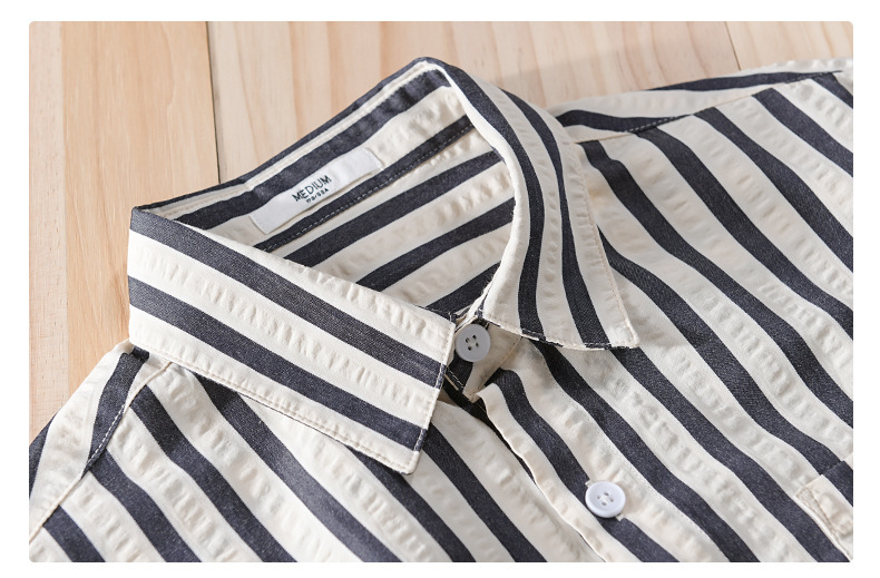봄과 가을 남자 줄무늬 긴팔 셔츠 유행 거품 짜임새 편안한 모든 경기 간단한 청소년 남자 셔츠 9493스토어 가기