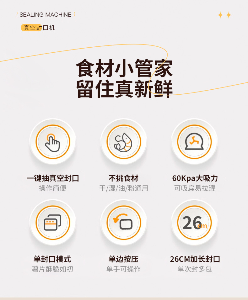 家用真空封口机不挑袋小型厨房食品包装全自动干湿两用压缩封口机