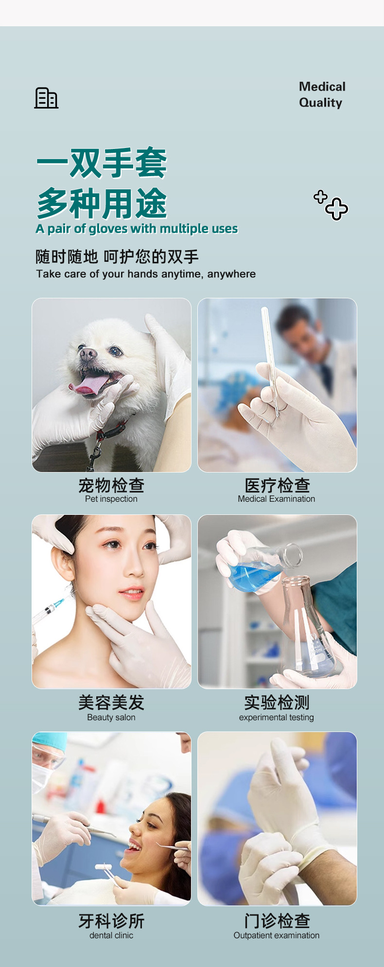 의료용 라텍스 검사 장갑 두꺼운 미끄럼 방지 내구성 침투 장갑 의료 건강 보호 안전 장갑